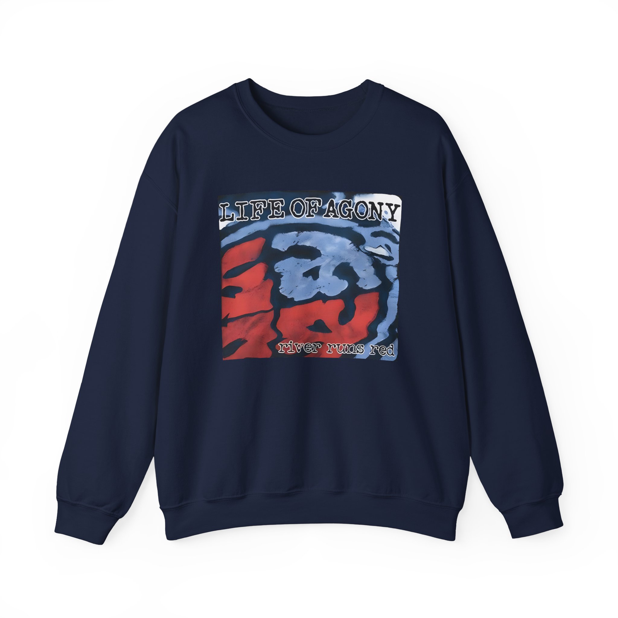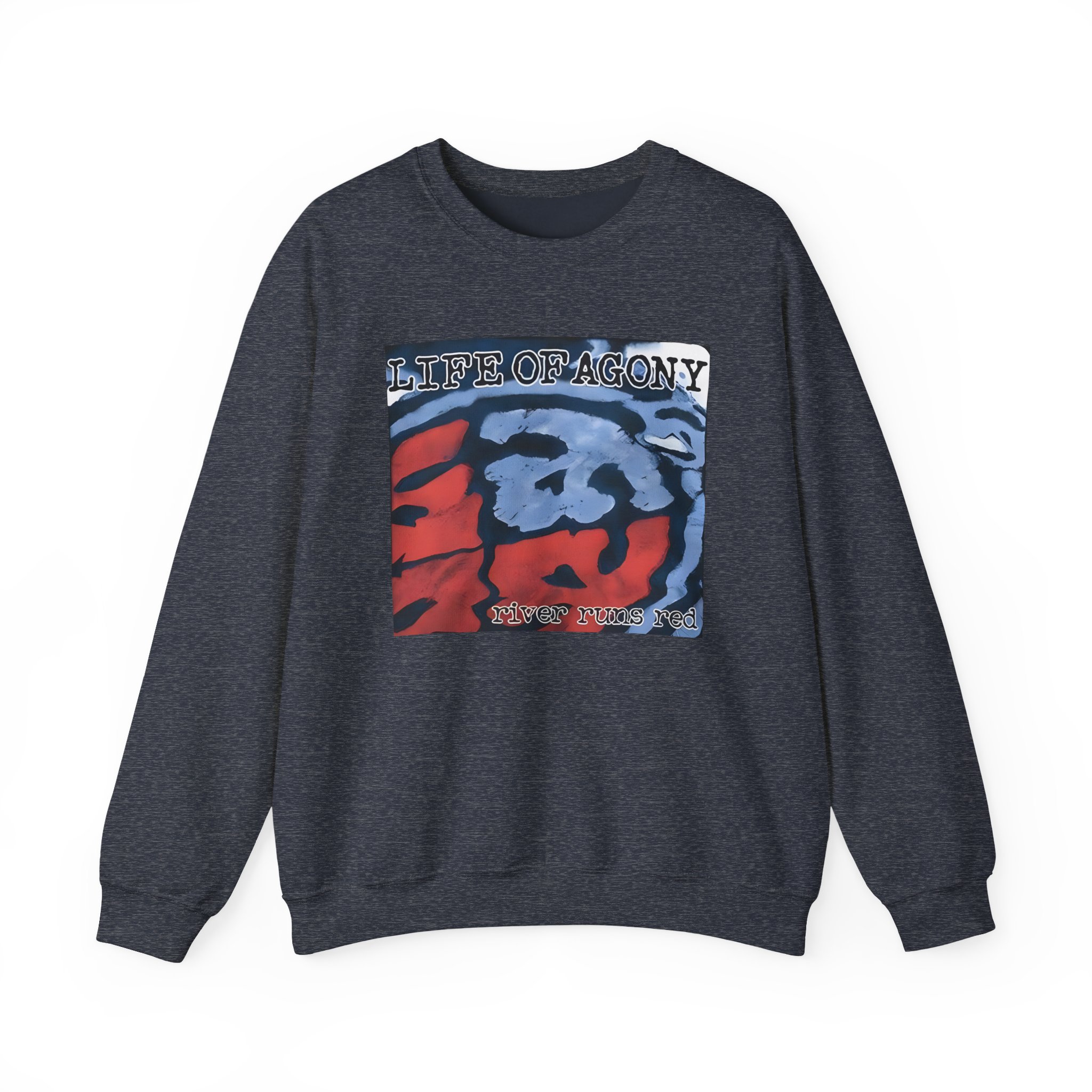 Ideal for any situation, a Life of Agony Through and Through unisex heavy blend crewneck sweatshirt is pure comfort. These garments are made from polyester and cotton. This combination helps designs come out looking fresh and beautiful. The collar is ribbed knit, so it retains its shape even after washing. There are no itchy side seams on these sweaters.