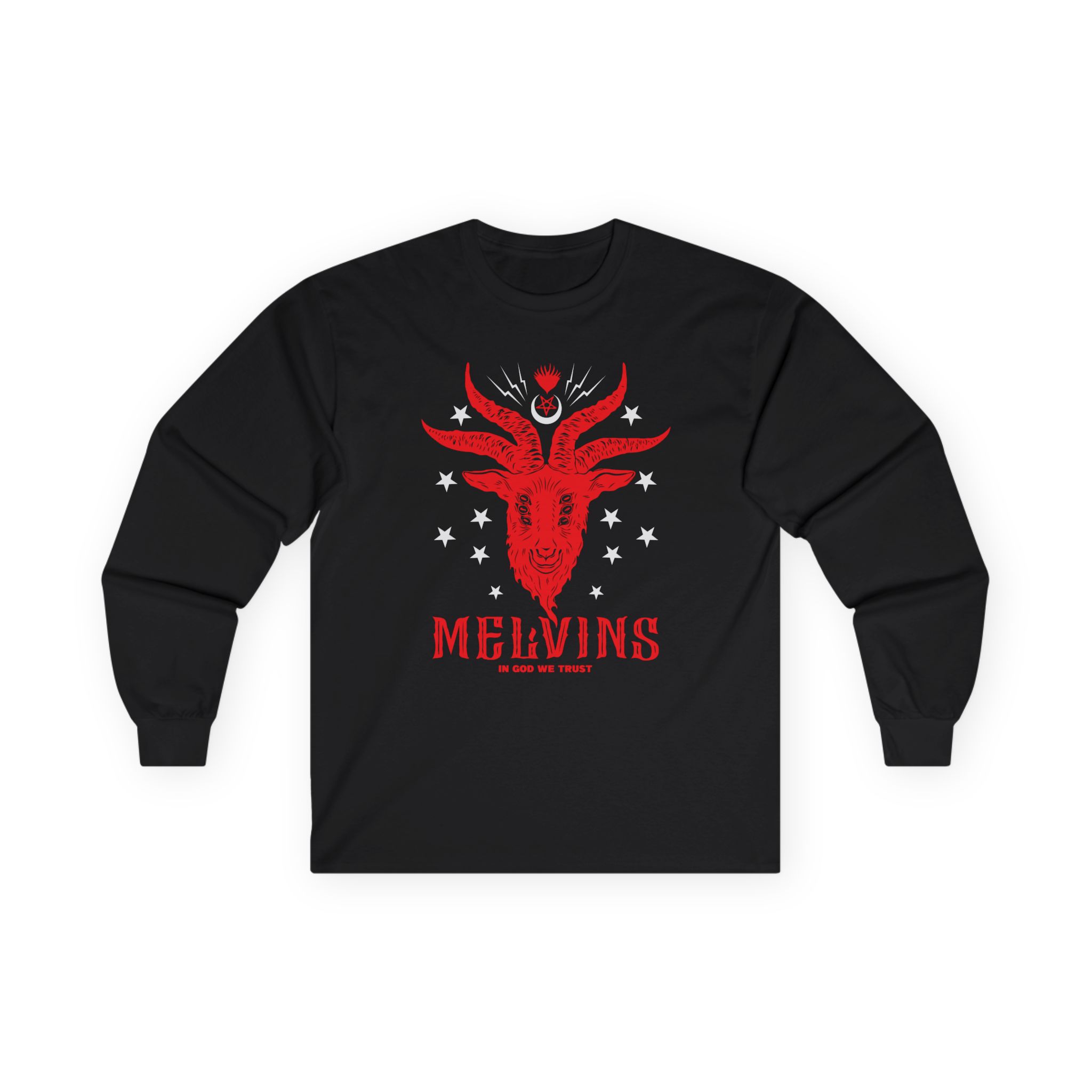 A bit more formal than a standard-issue t-shirt, the Melvins in God We Trust ultra cotton long sleeve tee is a clear comfort winner. The sleeves also act as a nice frame. There are no side seams. The shoulders are taped for improved durability. This makes for a good fitting around the shoulders and neck. The cotton used for these shirts is environmentally friendly.