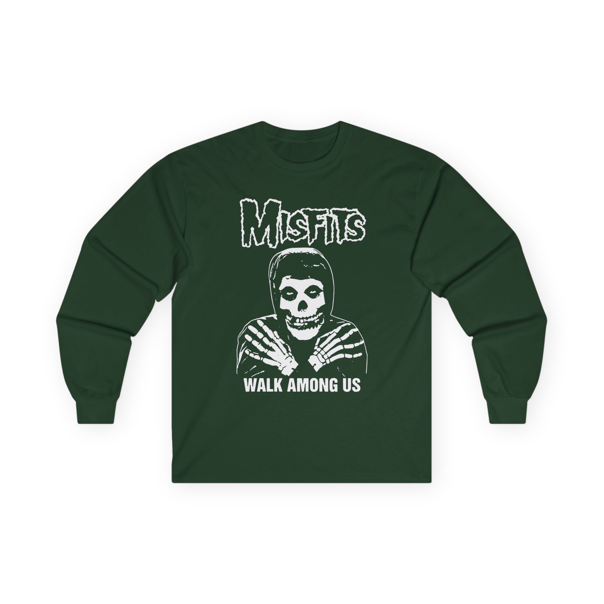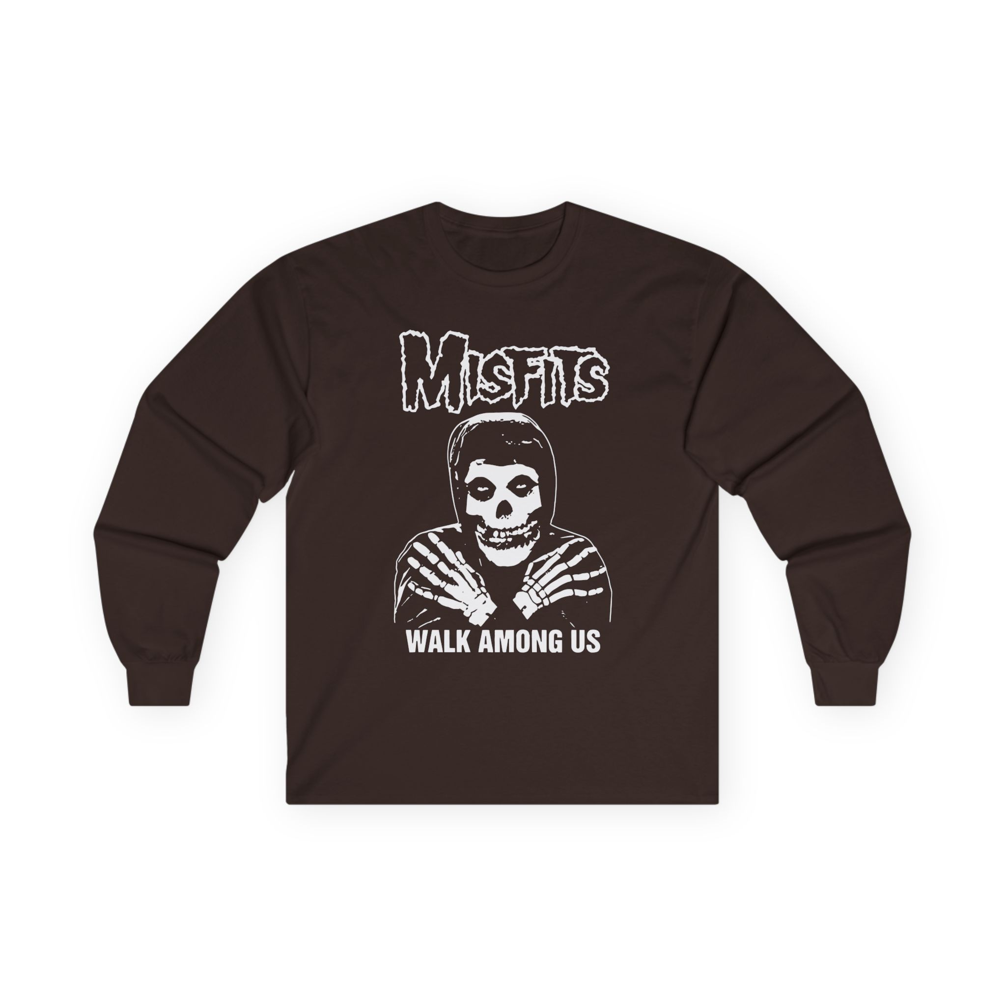 A bit more formal than a standard-issue t-shirt, the Misfits Walk Among Us ultra cotton long sleeve tee is a clear comfort winner. The sleeves also act as a nice frame. There are no side seams. The shoulders are taped for improved durability. This makes for a good fitting around the shoulders and neck. The cotton used for these shirts is environmentally friendly.