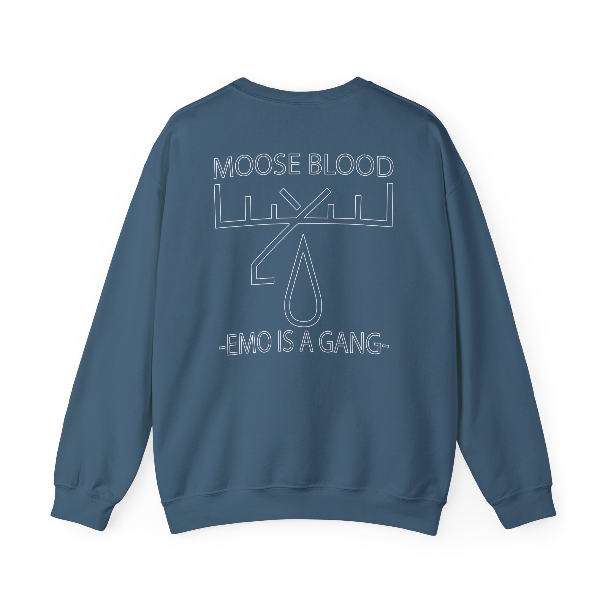 Ideal for any situation, a Moose Blood Emo is a Gang unisex heavy blend crewneck sweatshirt is pure comfort. These garments are made from polyester and cotton. This combination helps designs come out looking fresh and beautiful. The collar is ribbed knit, so it retains its shape even after washing. There are no itchy side seams on these sweaters.