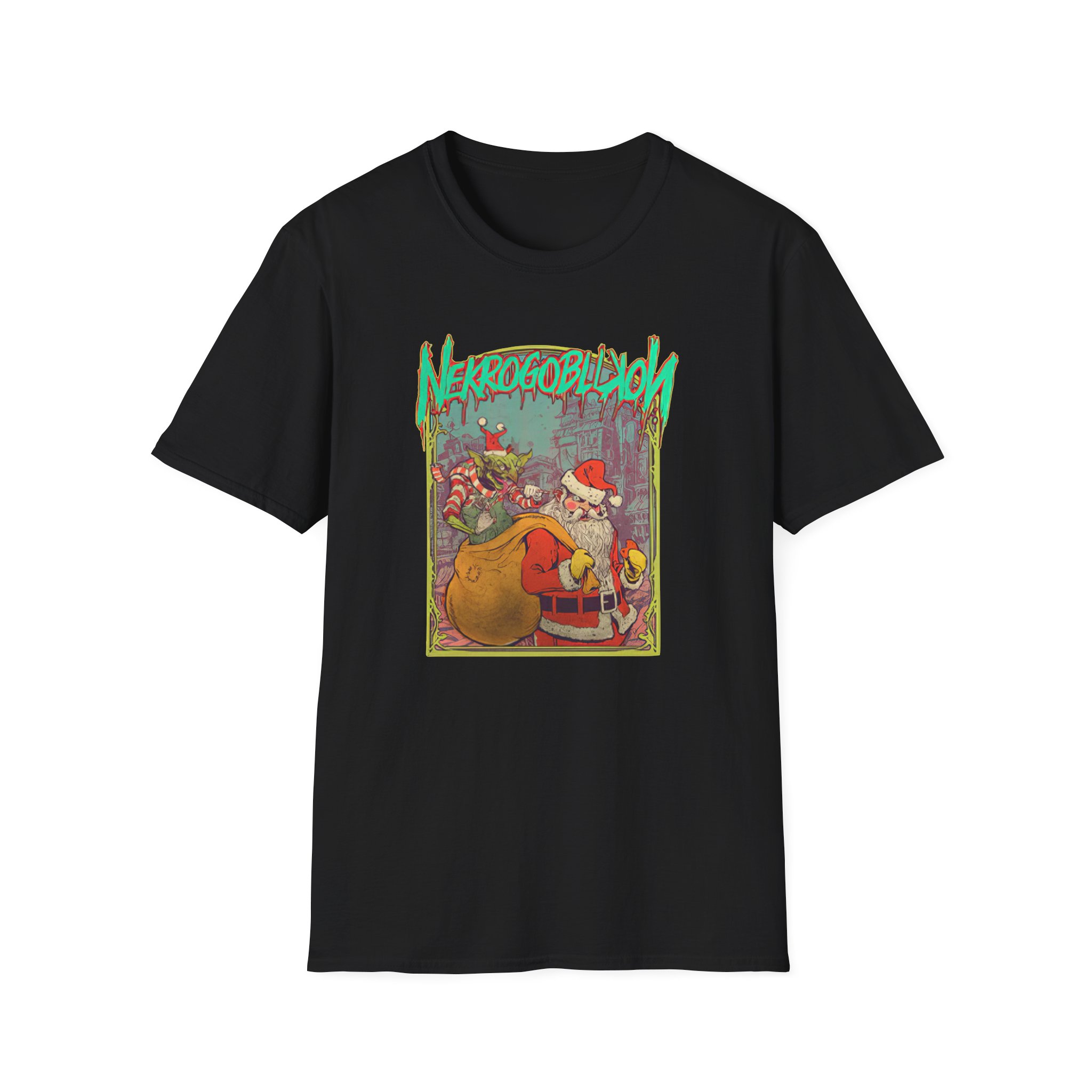 The Nekrogoblikon 2023 Xmas unisex soft-style t-shirt puts a new spin on casual comfort. Made from very soft materials, this tee is 100% cotton for solid colors. Heather colors and sports grey include polyester. The shoulders have twill tape for improved durability. There are no side seams. The collar is made with ribbed knitting to prevent curling damage.