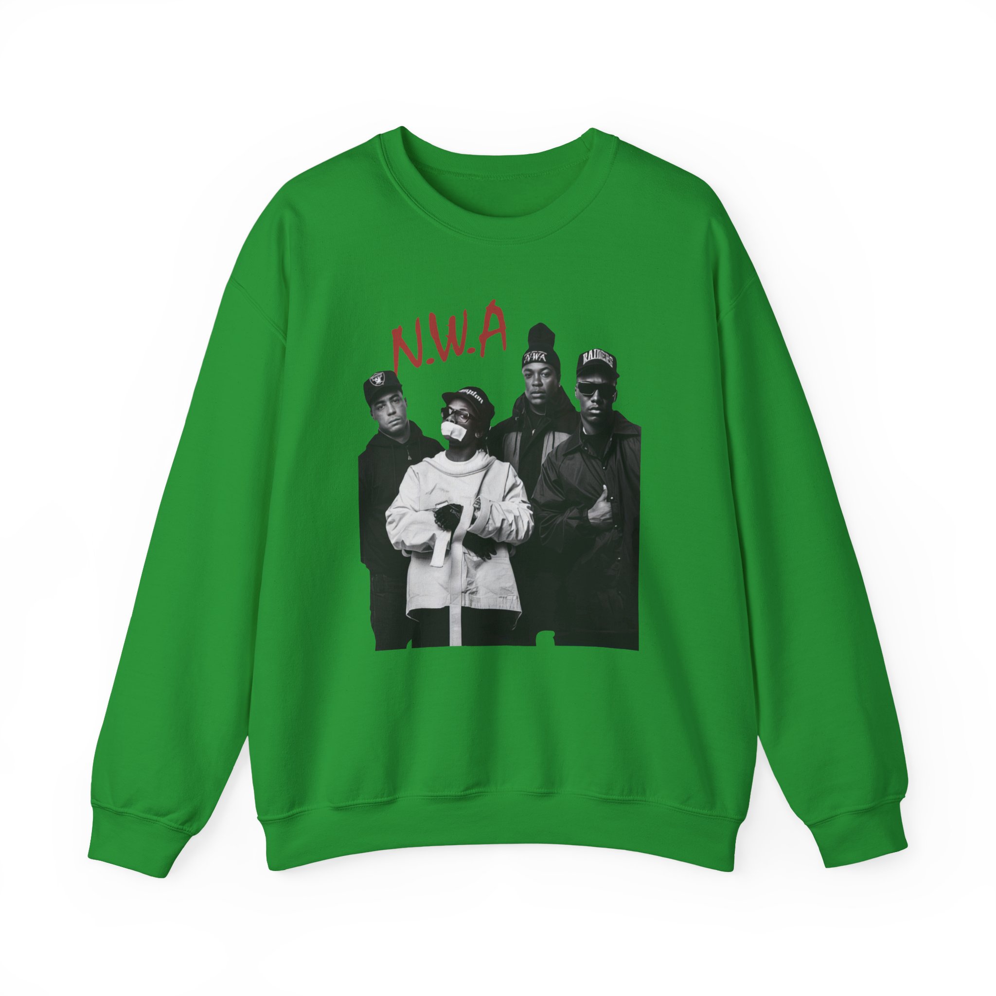 Ideal for any situation, a NWA Rap unisex heavy blend crewneck sweatshirt is pure comfort. These garments are made from polyester and cotton. This combination helps designs come out looking fresh and beautiful. The collar is ribbed knit, so it retains its shape even after washing. There are no itchy side seams on these sweaters.