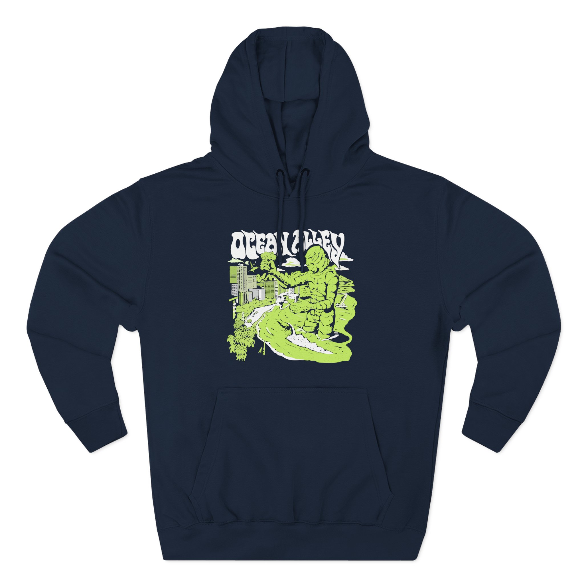 Beat the cold with this Ocean Alley Attack of the Ocean Man premium pullover hoodie that’s just the right layer of warm and cozy. Made with three-panel fleece lining, this pullover is double stitched for durability and roomy. Pick one in your favorite color to match your style.