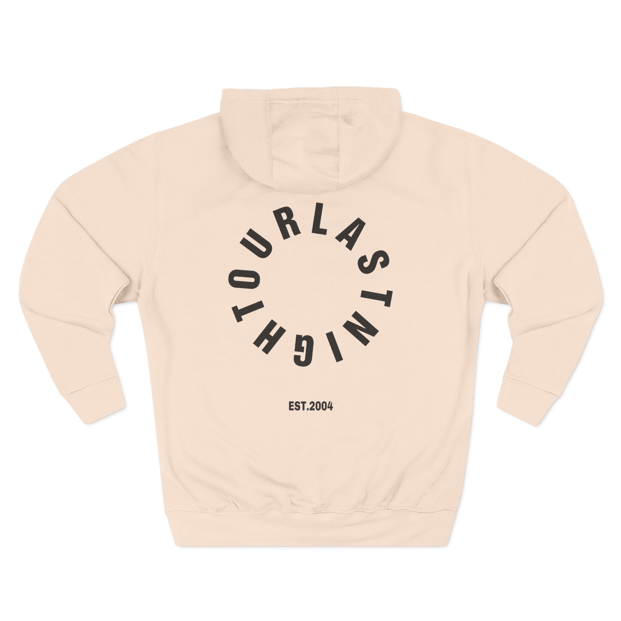 Beat the cold with this Our Last Night Circle premium pullover hoodie that’s just the right layer of warm and cozy. Made with three-panel fleece lining, this pullover is double stitched for durability and roomy. Pick one in your favorite color to match your style.