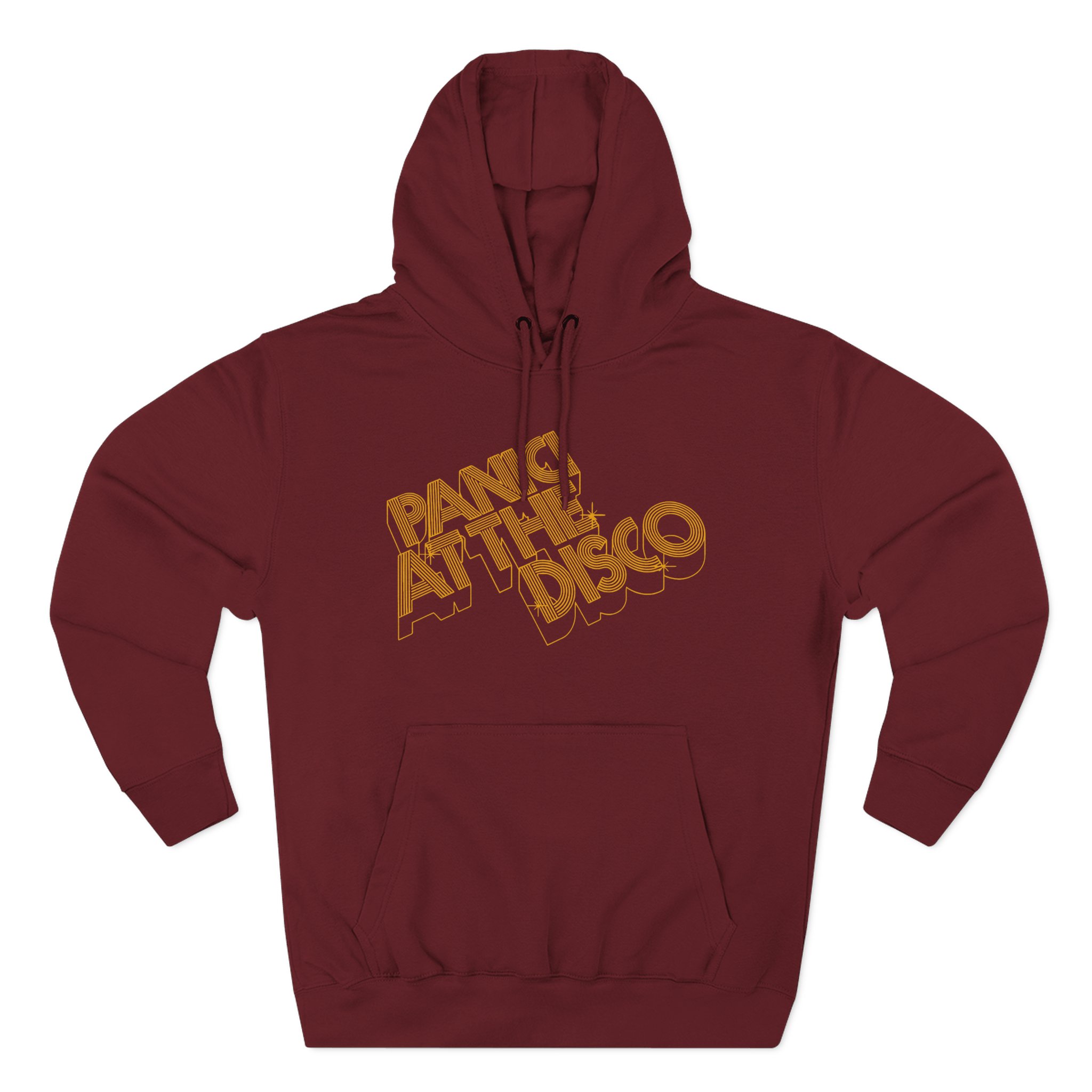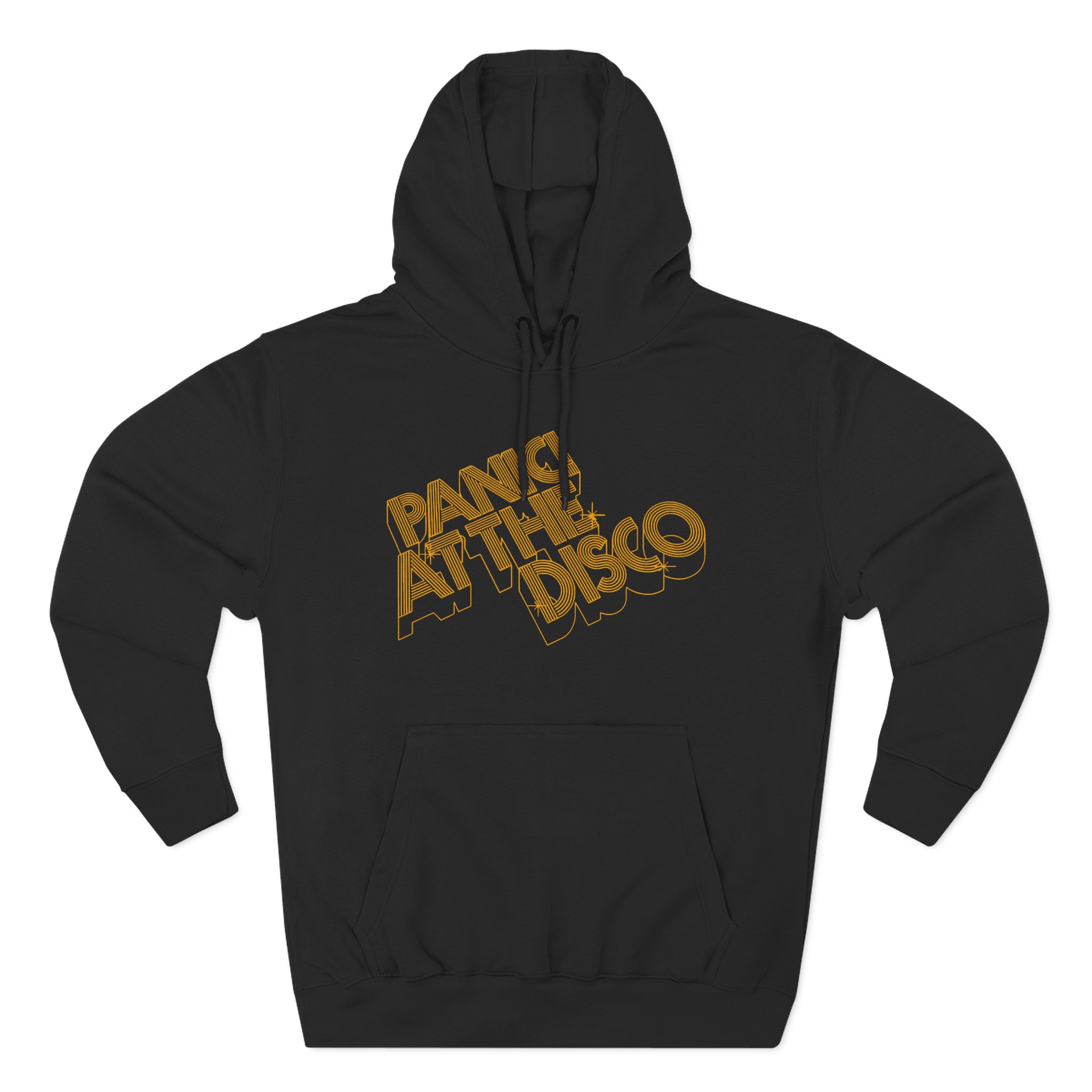 Beat the cold with this Panic at the Disco 3-d Gold Logo premium pullover hoodie that’s just the right layer of warm and cozy. Made with three-panel fleece lining, this pullover is double stitched for durability and roomy. Pick one in your favorite color to match your style.