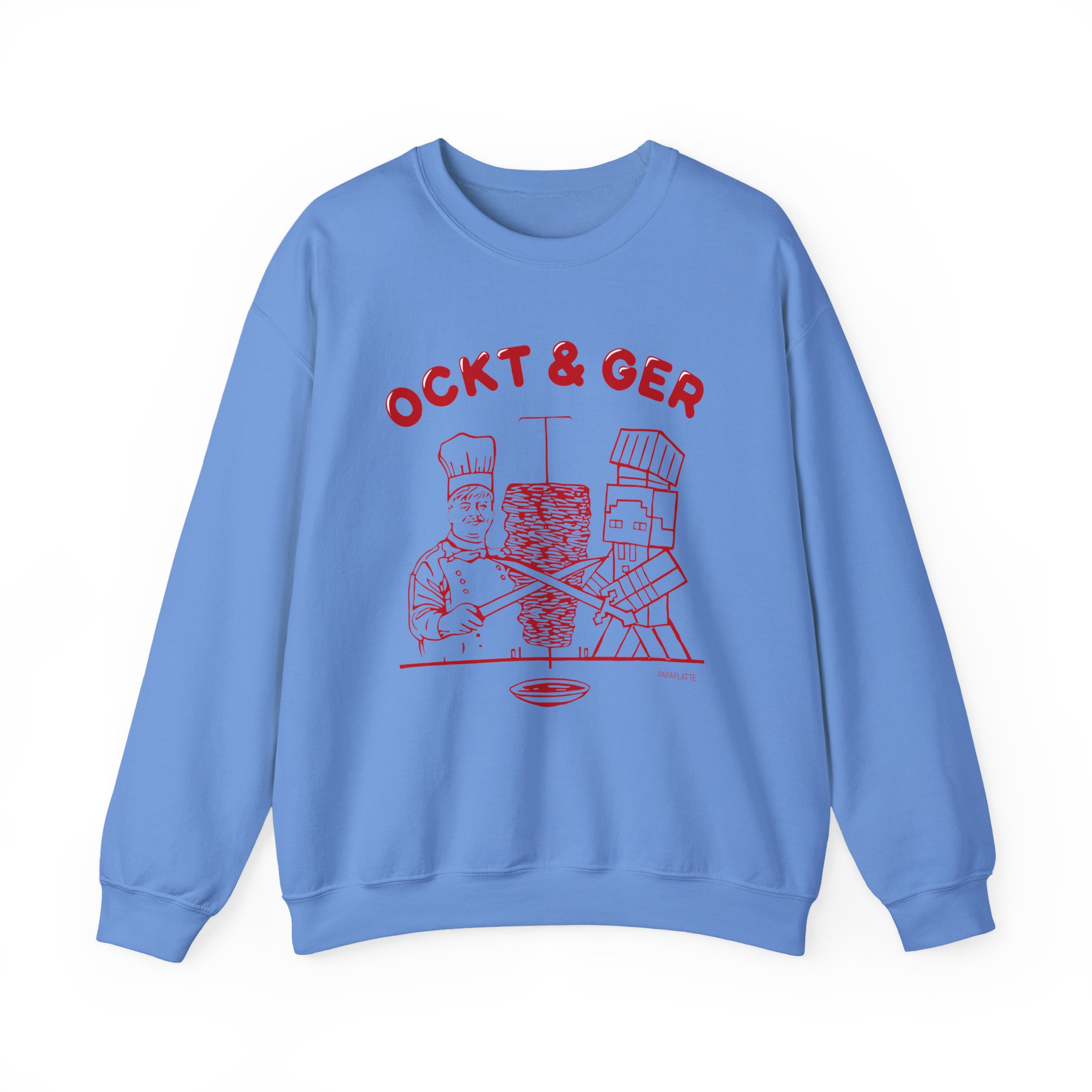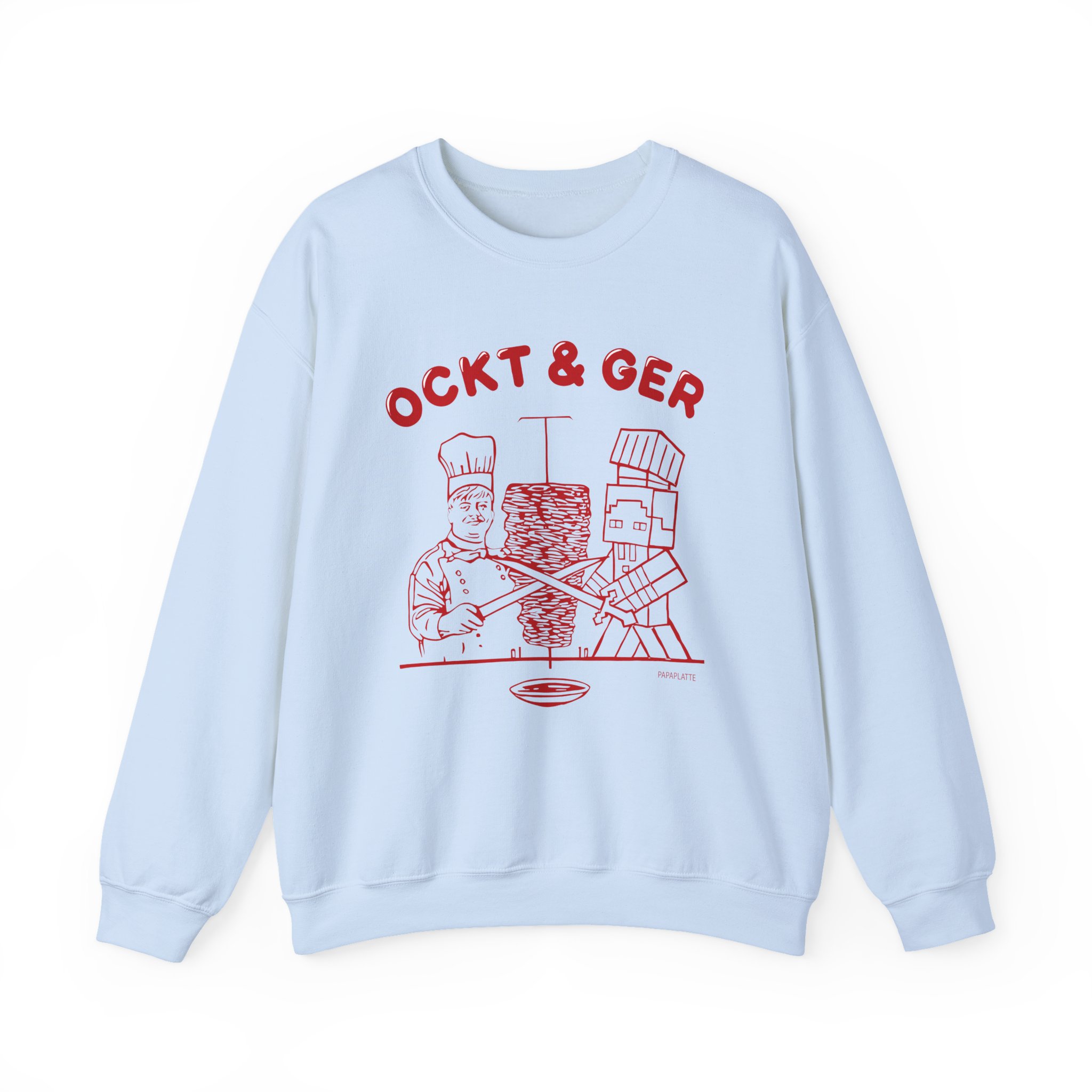 Ideal for any situation, a Papaplatte OCKT & GER unisex heavy blend crewneck sweatshirt is pure comfort. These garments are made from polyester and cotton. This combination helps designs come out looking fresh and beautiful. The collar is ribbed knit, so it retains its shape even after washing. There are no itchy side seams on these sweaters.