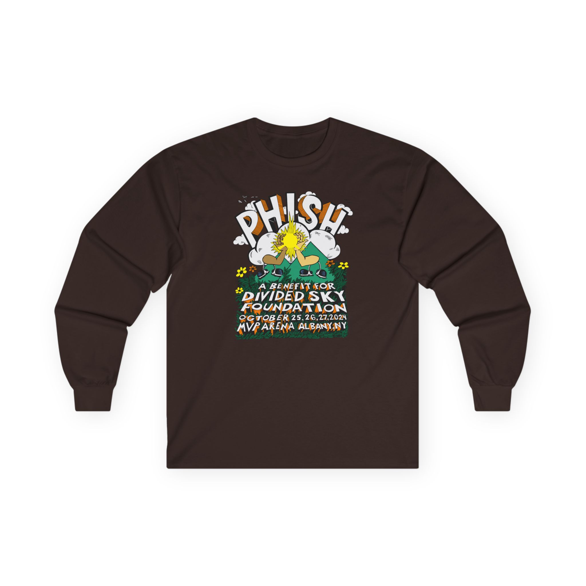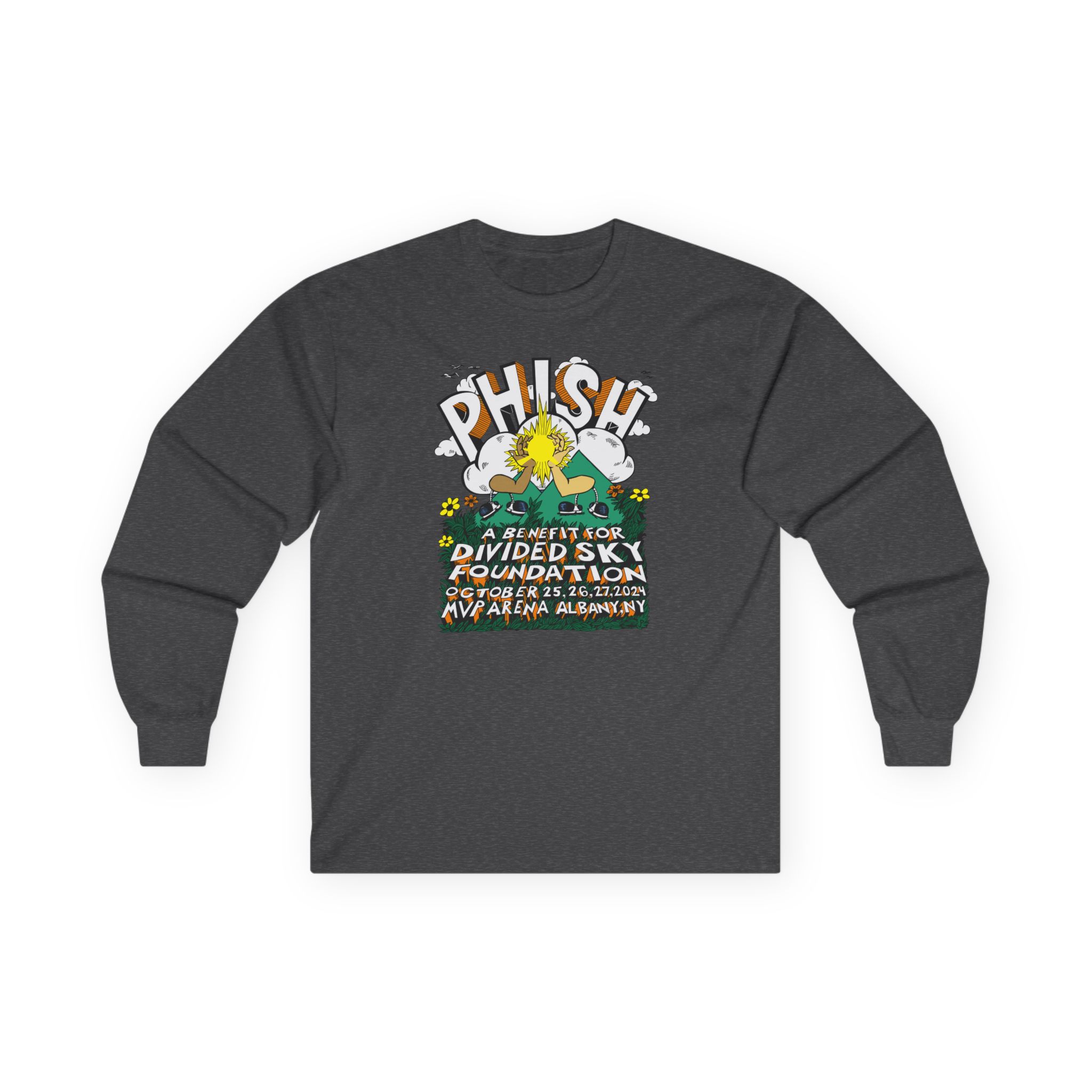 A bit more formal than a standard-issue t-shirt, the Phish Pollock Arm in Arm ultra cotton long sleeve tee is a clear comfort winner. The sleeves also act as a nice frame. There are no side seams. The shoulders are taped for improved durability. This makes for a good fitting around the shoulders and neck. The cotton used for these shirts is environmentally friendly.