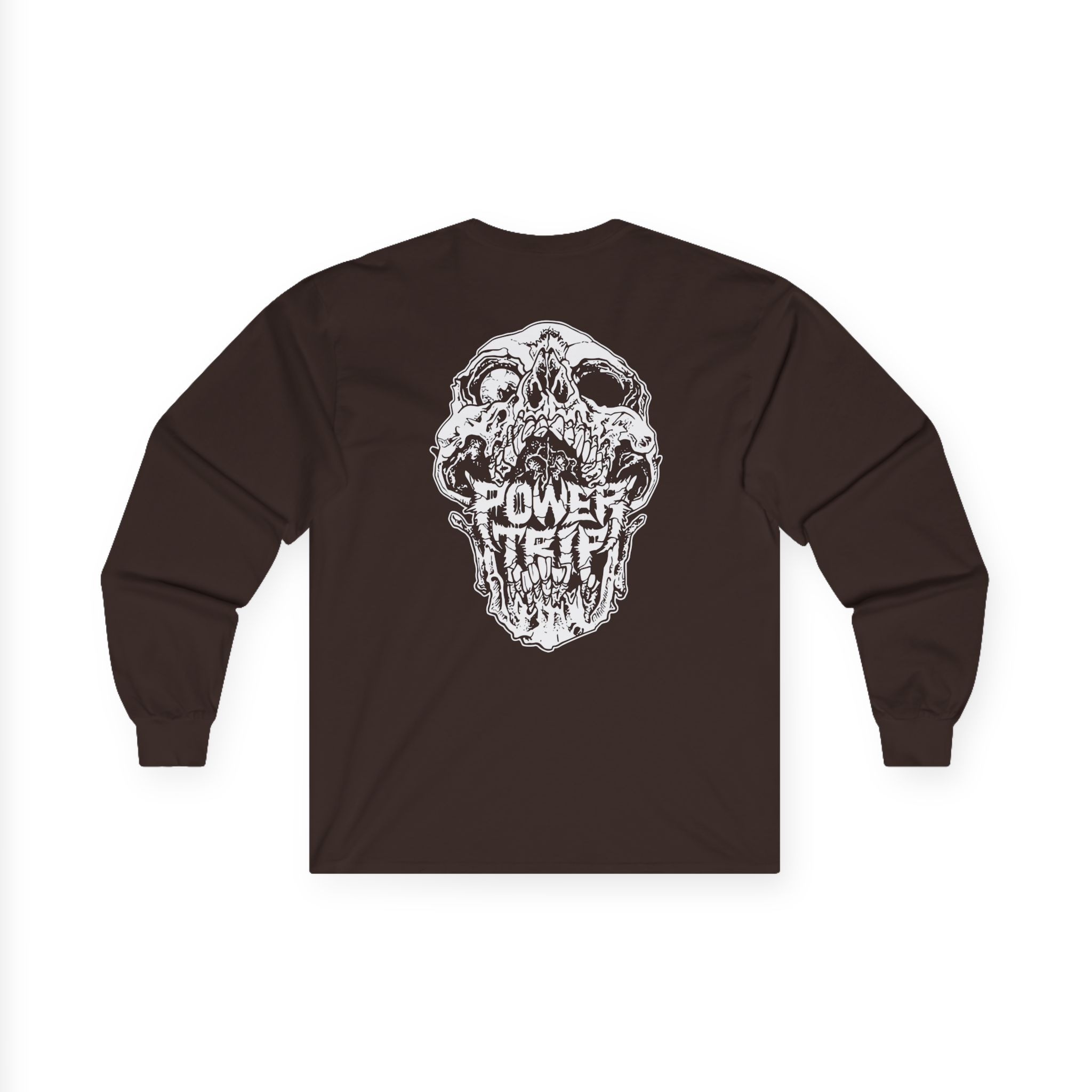 A bit more formal than a standard-issue t-shirt, the Power Trip Skull ultra cotton long sleeve tee is a clear comfort winner. The sleeves also act as a nice frame. There are no side seams. The shoulders are taped for improved durability. This makes for a good fitting around the shoulders and neck. The cotton used for these shirts is environmentally friendly.