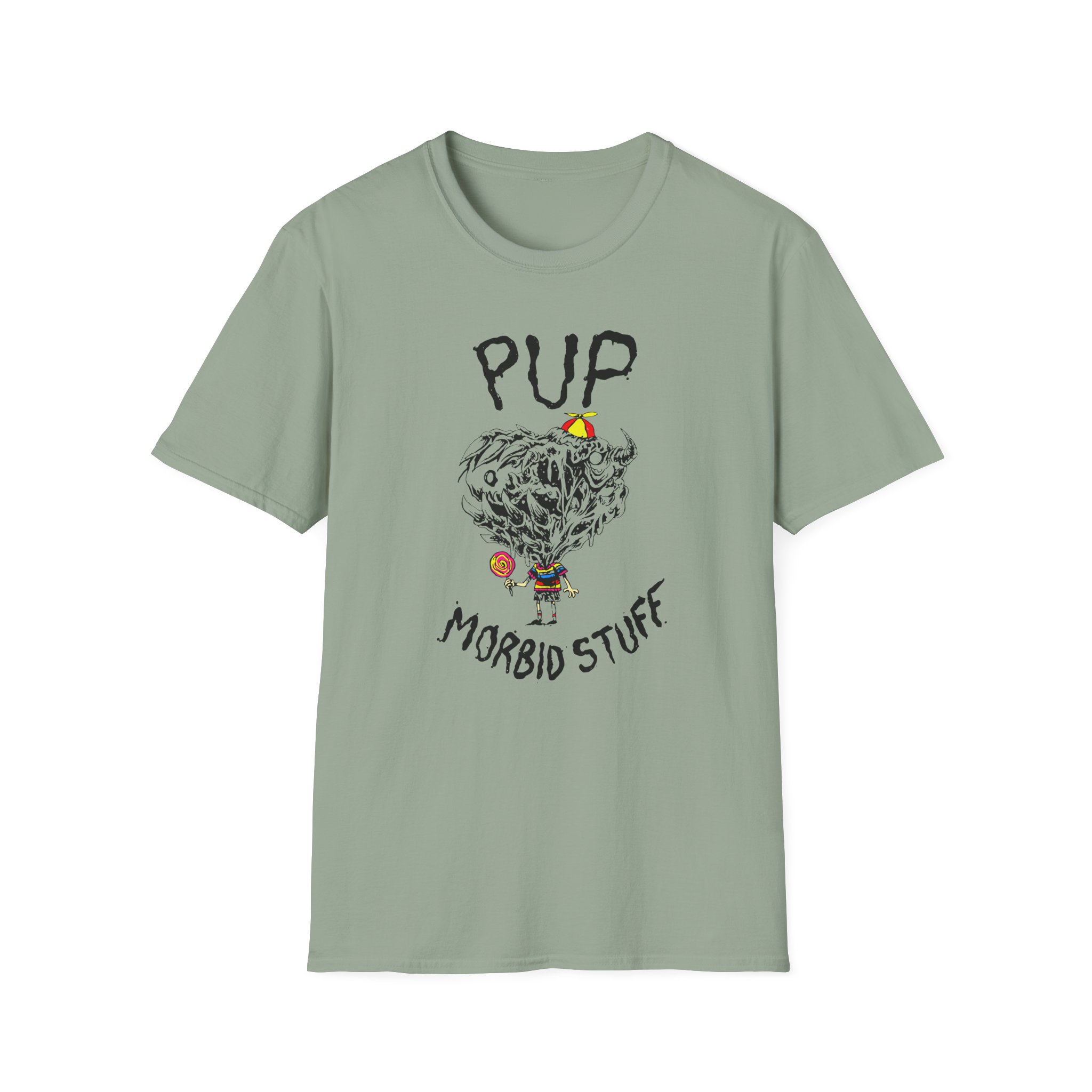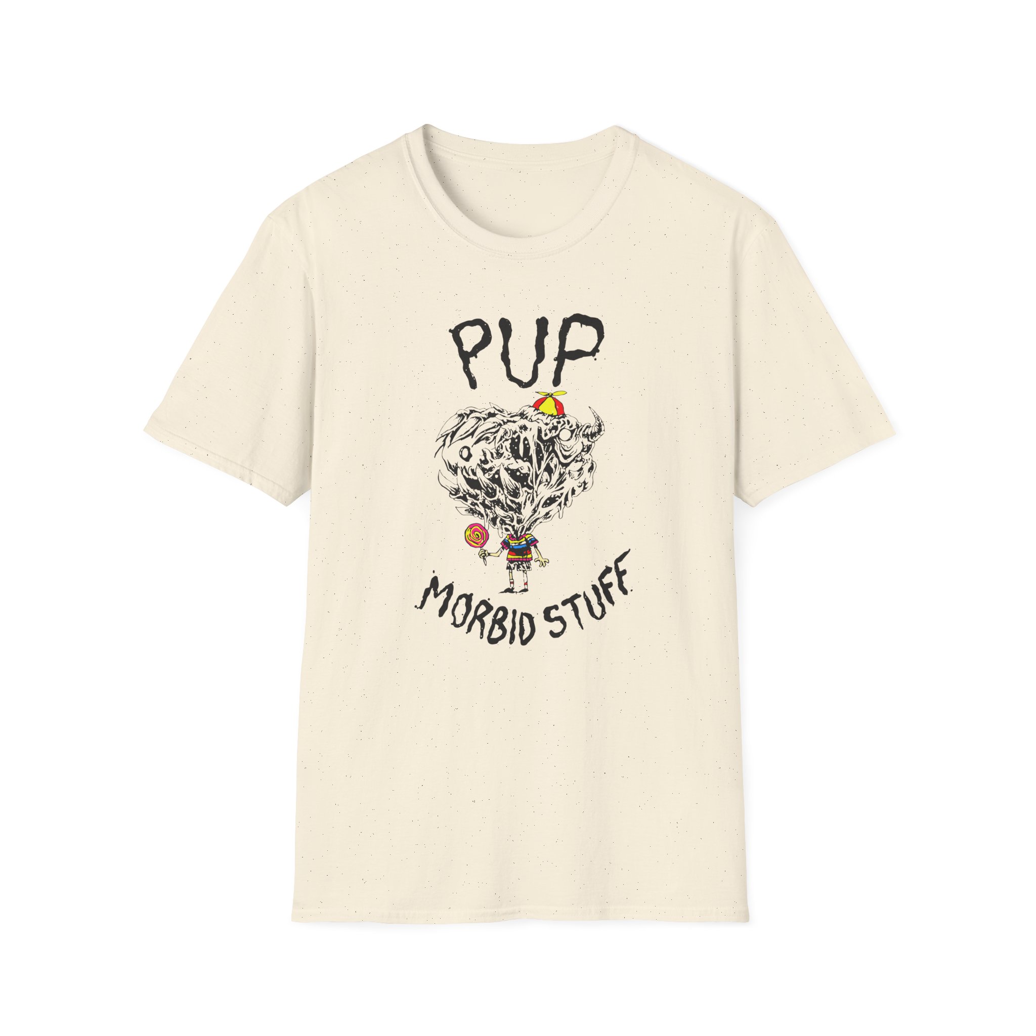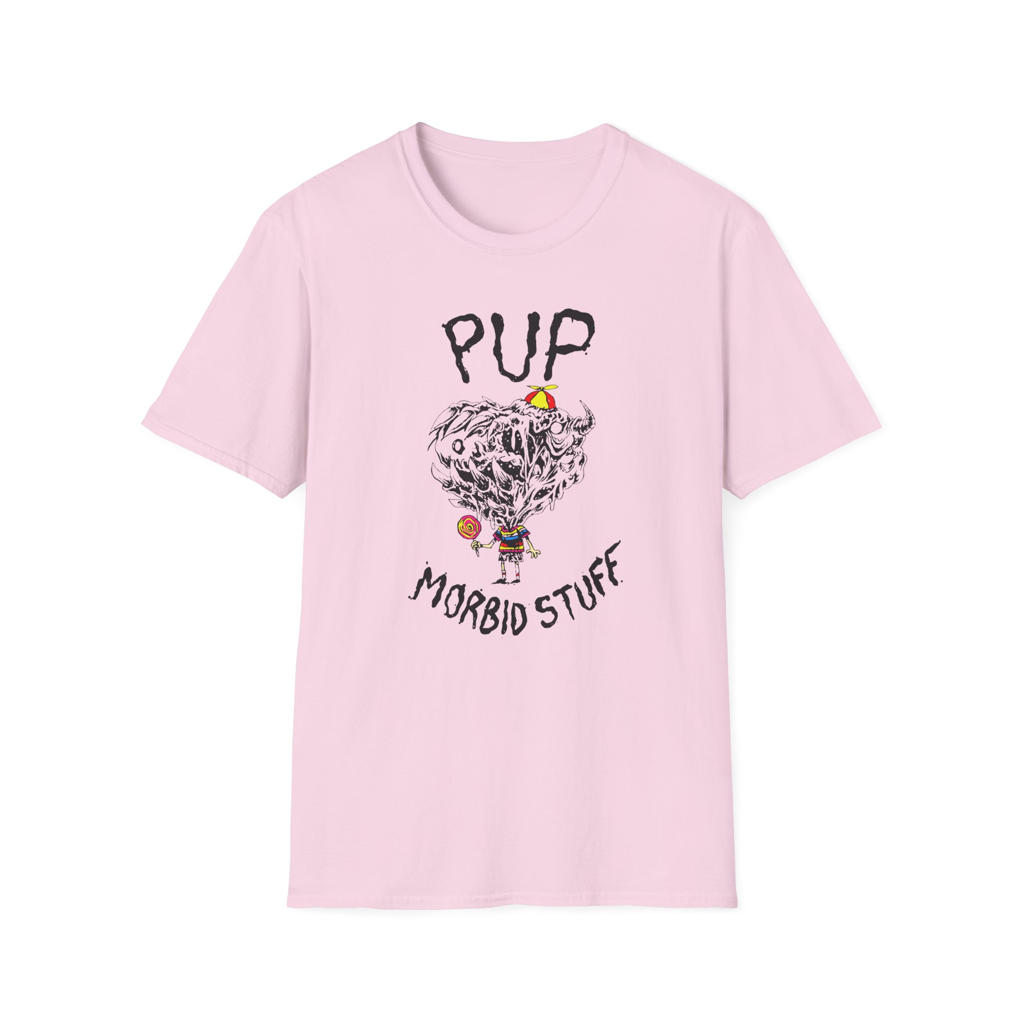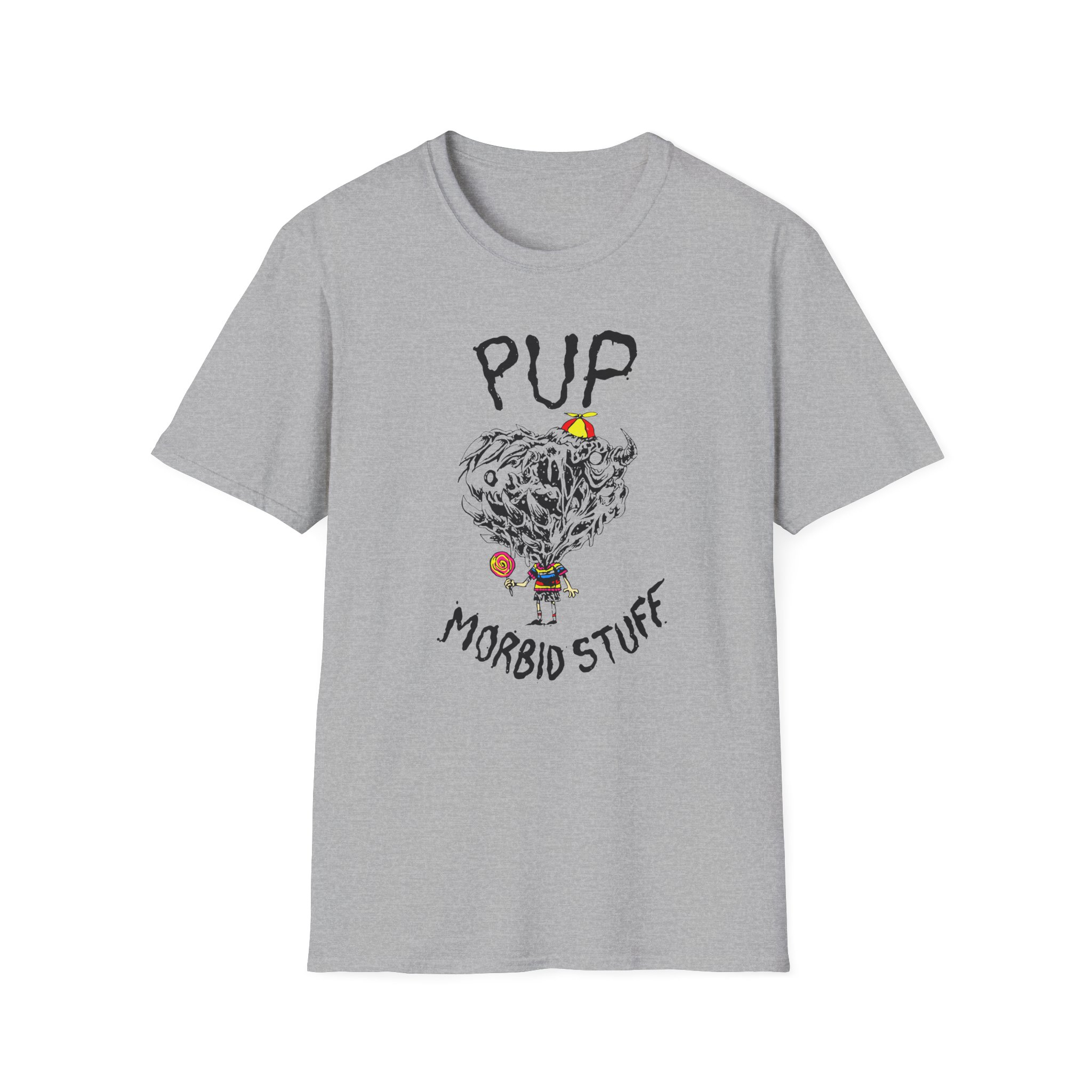 The Pup Morbid Stuff Lollipop unisex soft-style t-shirt puts a new spin on casual comfort. Made from very soft materials, this tee is 100% cotton for solid colors. Heather colors and sports grey include polyester. The shoulders have twill tape for improved durability. There are no side seams. The collar is made with ribbed knitting to prevent curling damage.