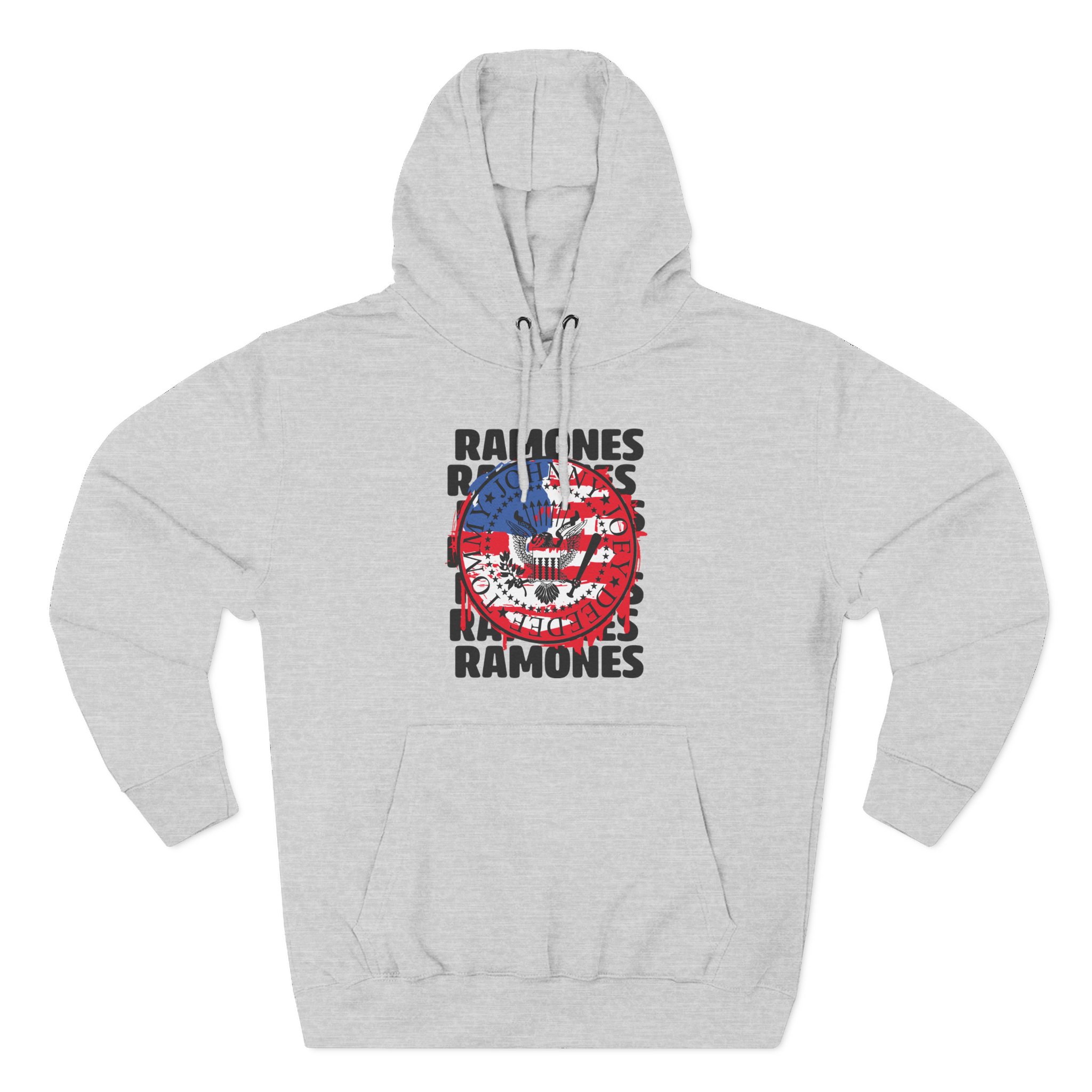 Beat the cold with this Ramones US Flag premium pullover hoodie that’s just the right layer of warm and cozy. Made with three-panel fleece lining, this pullover is double stitched for durability and roomy. Pick one in your favorite color to match your style.