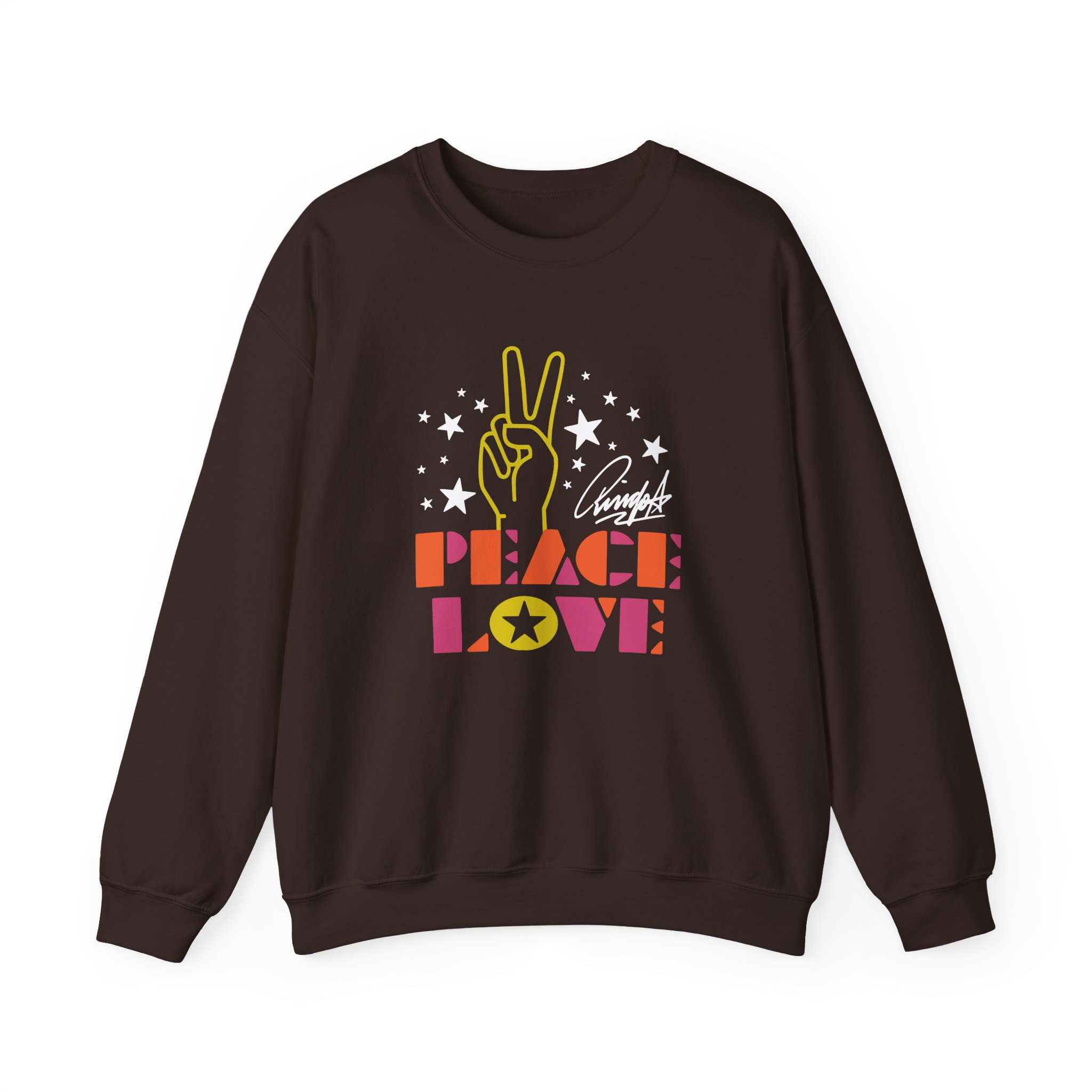 Ideal for any situation, a Ringo Starr Peace & Love Peace Sign unisex heavy blend crewneck sweatshirt is pure comfort. These garments are made from polyester and cotton. This combination helps designs come out looking fresh and beautiful. The collar is ribbed knit, so it retains its shape even after washing. There are no itchy side seams on these sweaters.