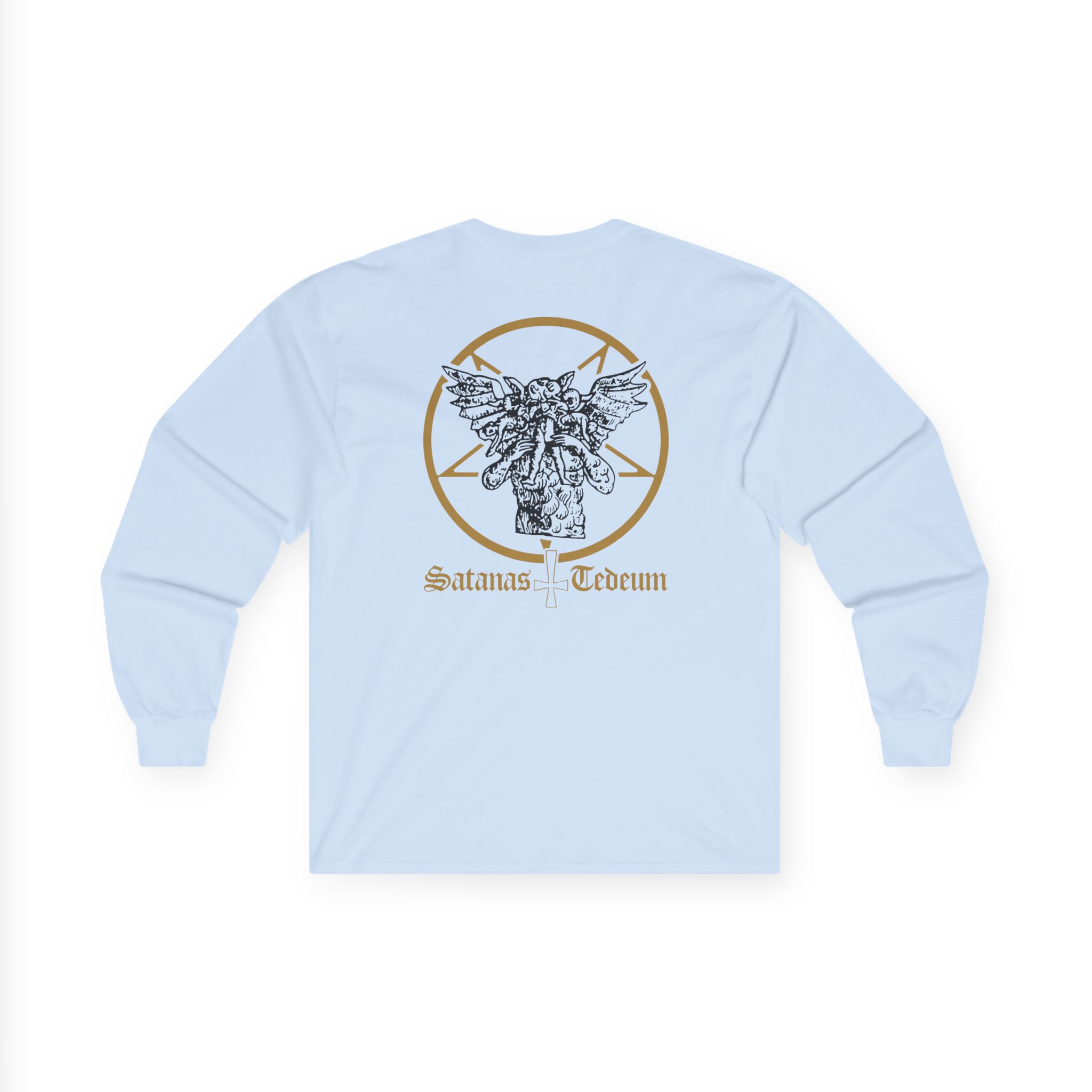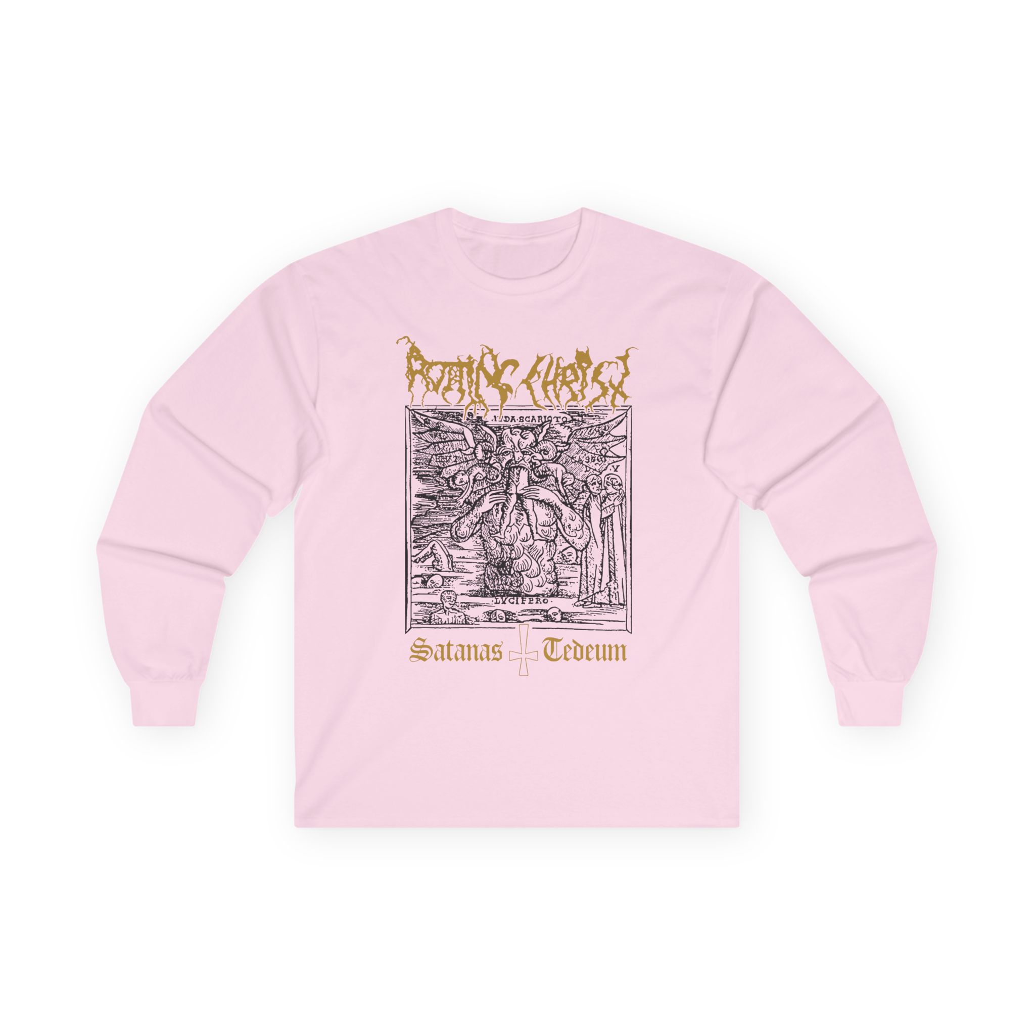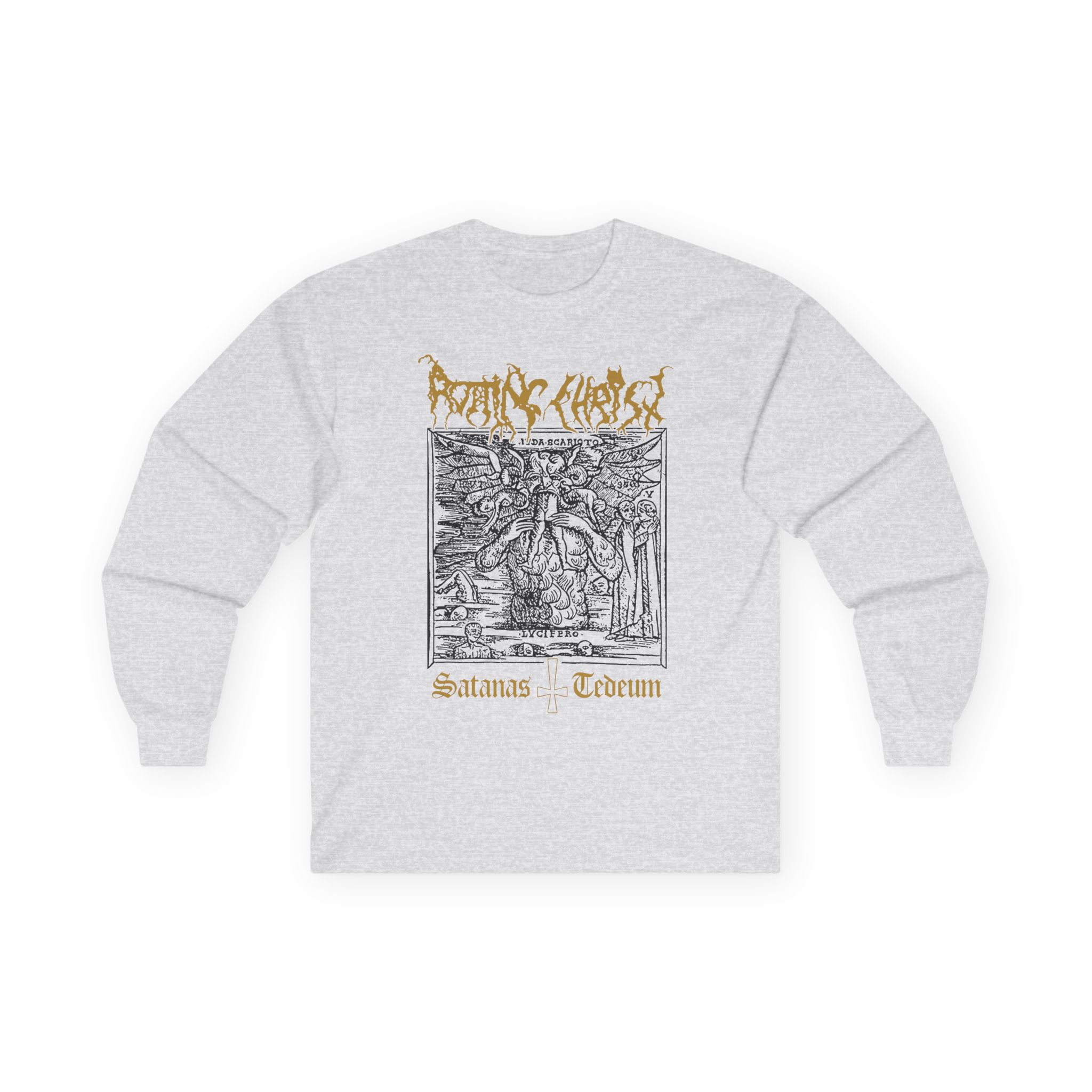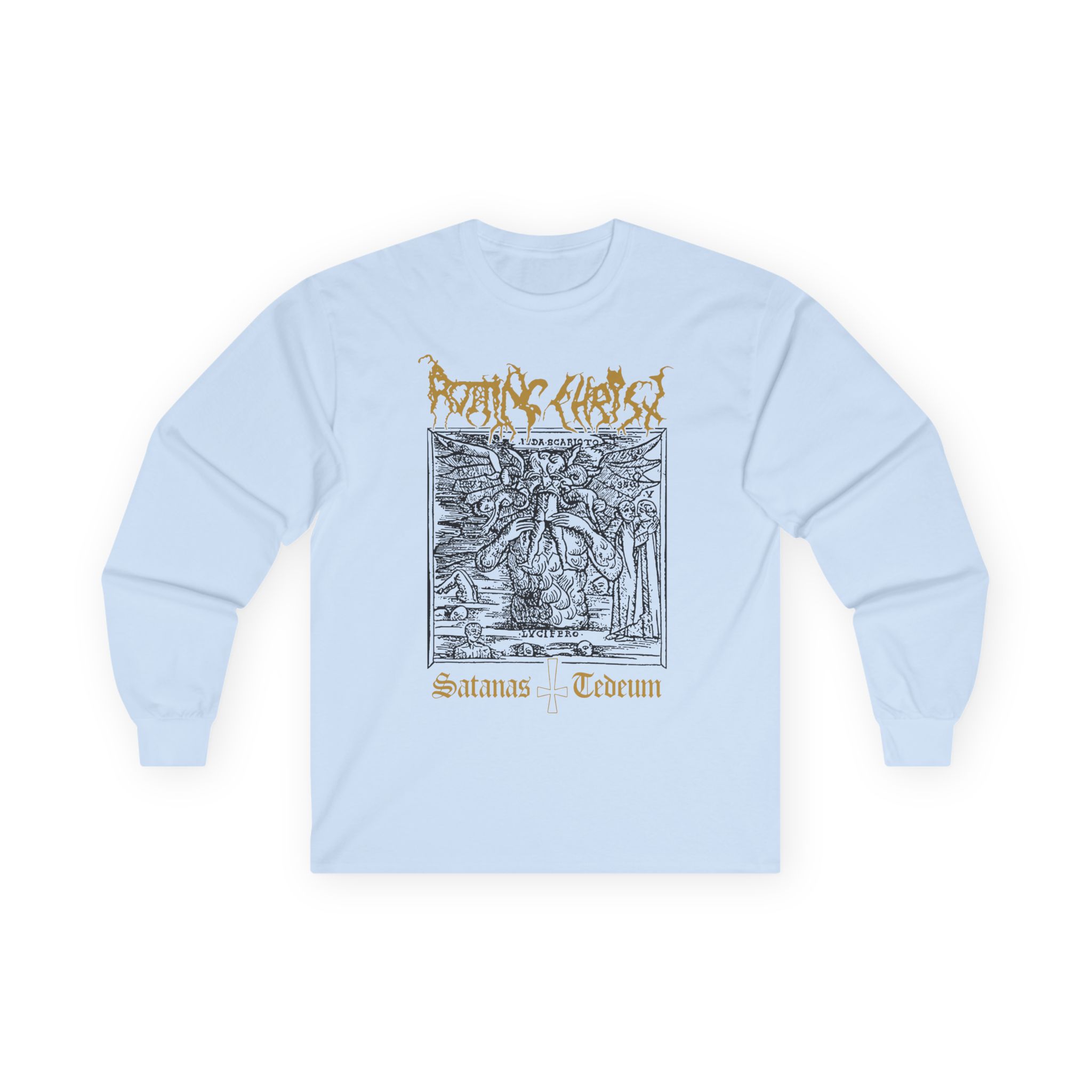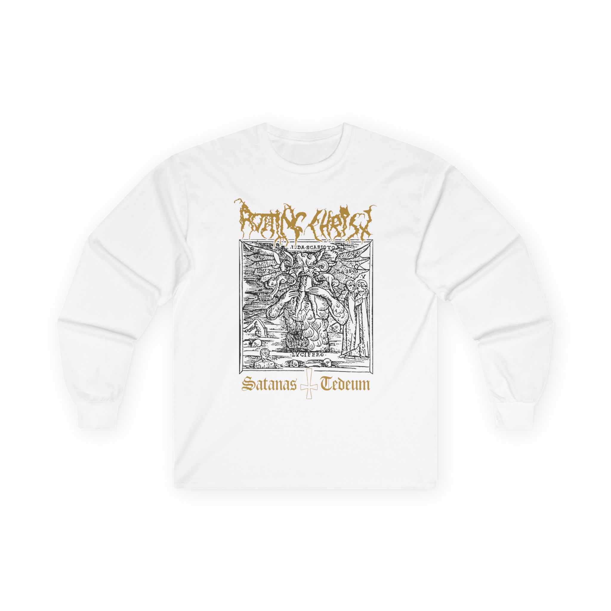A bit more formal than a standard-issue t-shirt, the Rotting Christ Satanas Tedeum ultra cotton long sleeve tee is a clear comfort winner. The sleeves also act as a nice frame. There are no side seams. The shoulders are taped for improved durability. This makes for a good fitting around the shoulders and neck. The cotton used for these shirts is environmentally friendly.