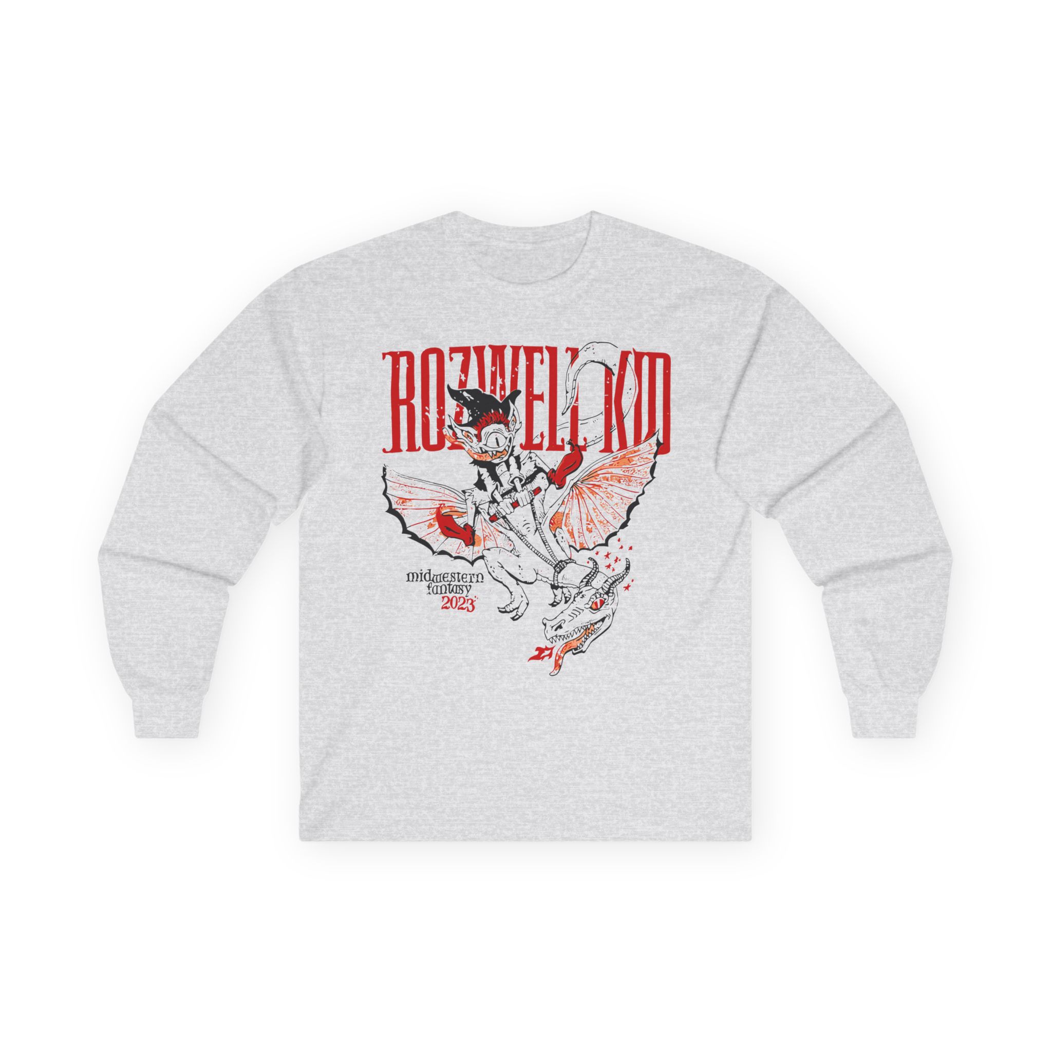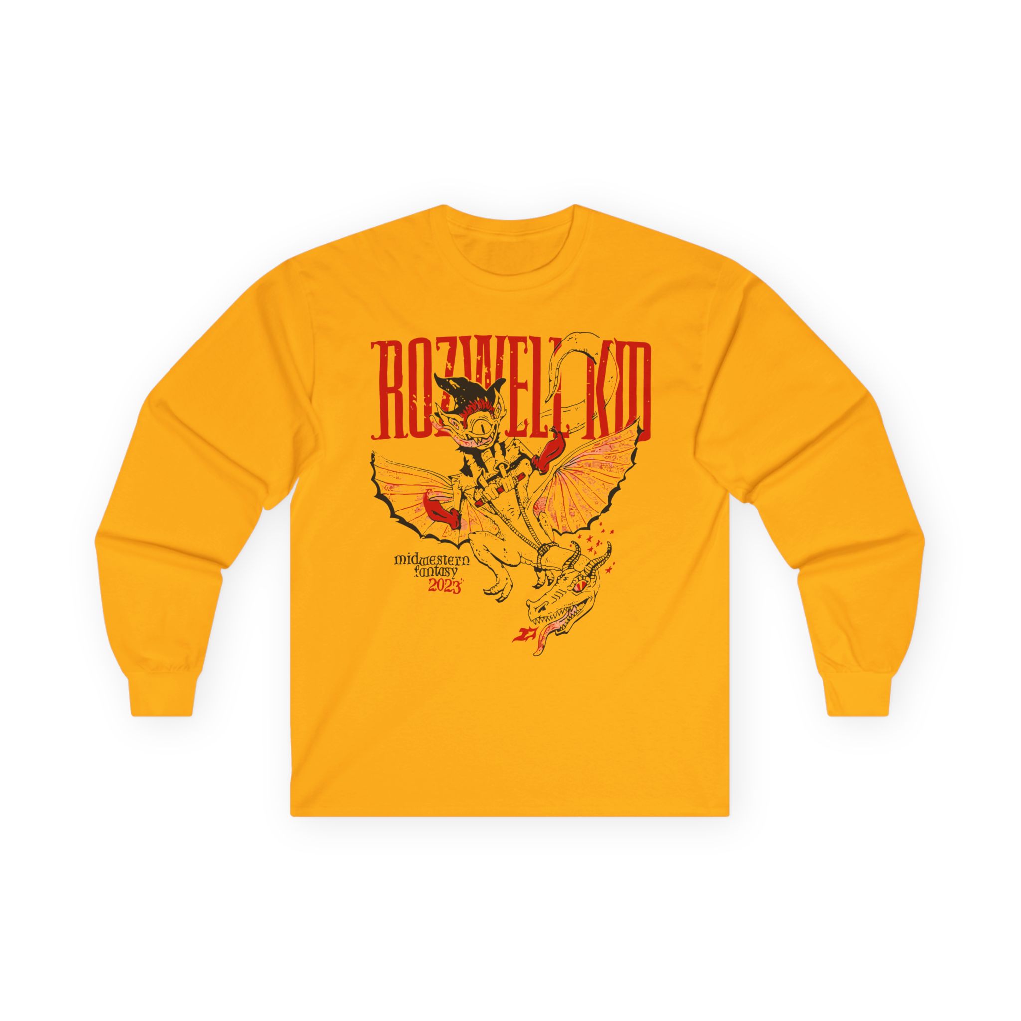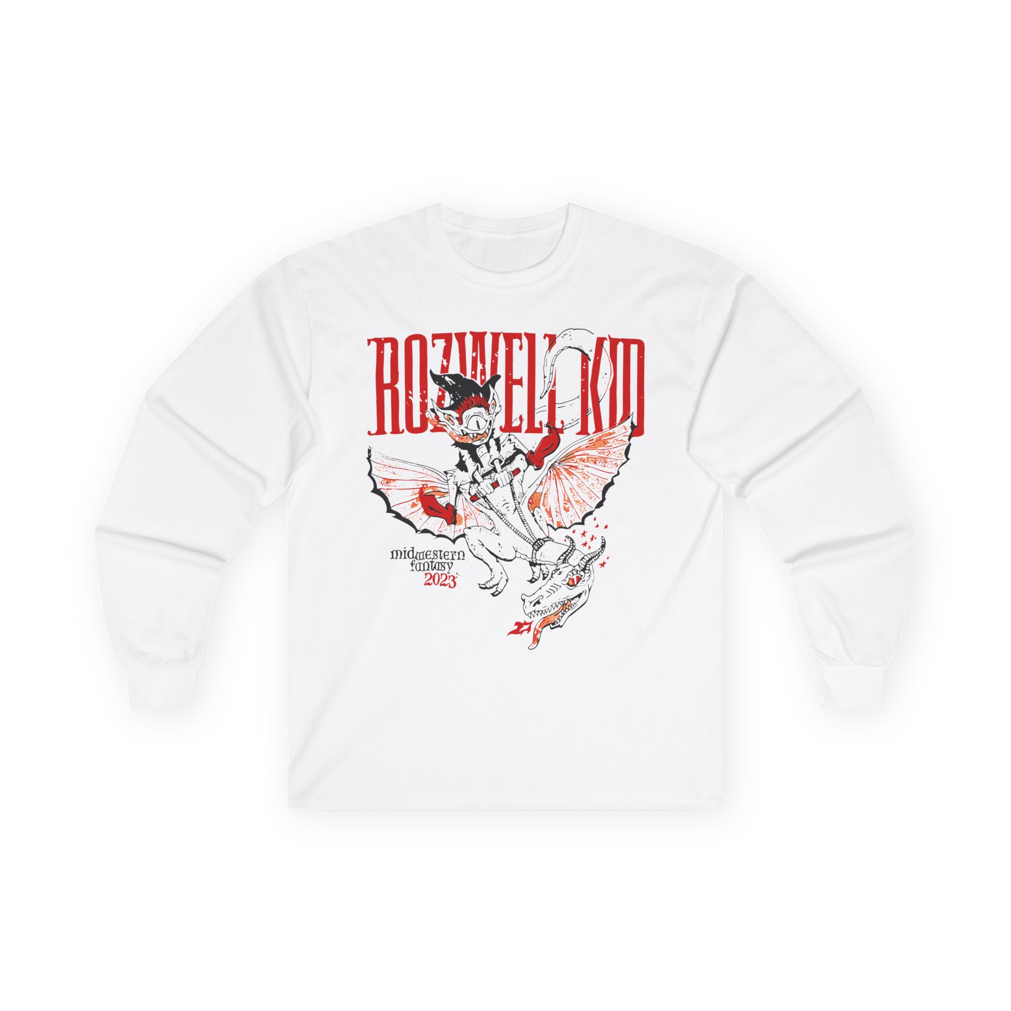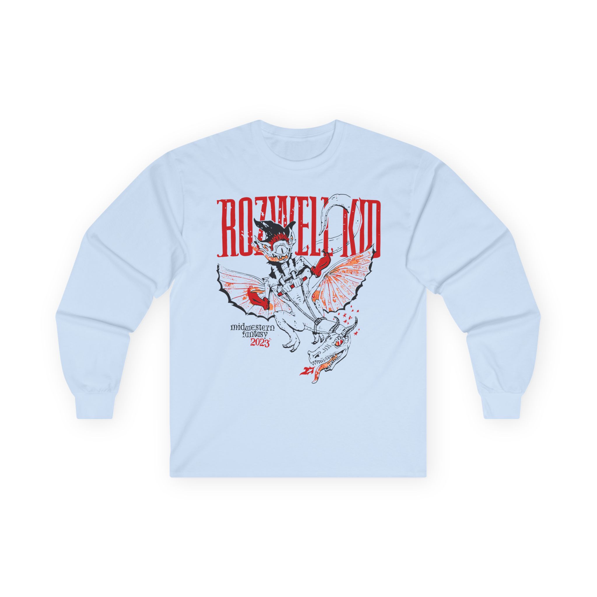 A bit more formal than a standard-issue t-shirt, the Rozwell Kid 2023 Midwestern Fantasy Tour ultra cotton long sleeve tee is a clear comfort winner. The sleeves also act as a nice frame. There are no side seams. The shoulders are taped for improved durability. This makes for a good fitting around the shoulders and neck. The cotton used for these shirts is environmentally friendly.