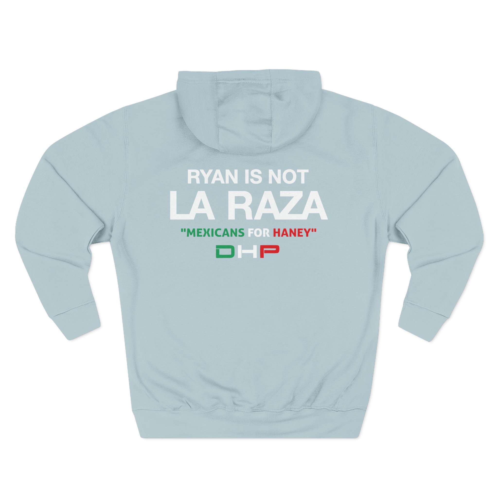 Beat the cold with this Ryan is Not a La Raza premium pullover hoodie that’s just the right layer of warm and cozy. Made with three-panel fleece lining, this pullover is double stitched for durability and roomy. Pick one in your favorite color to match your style.