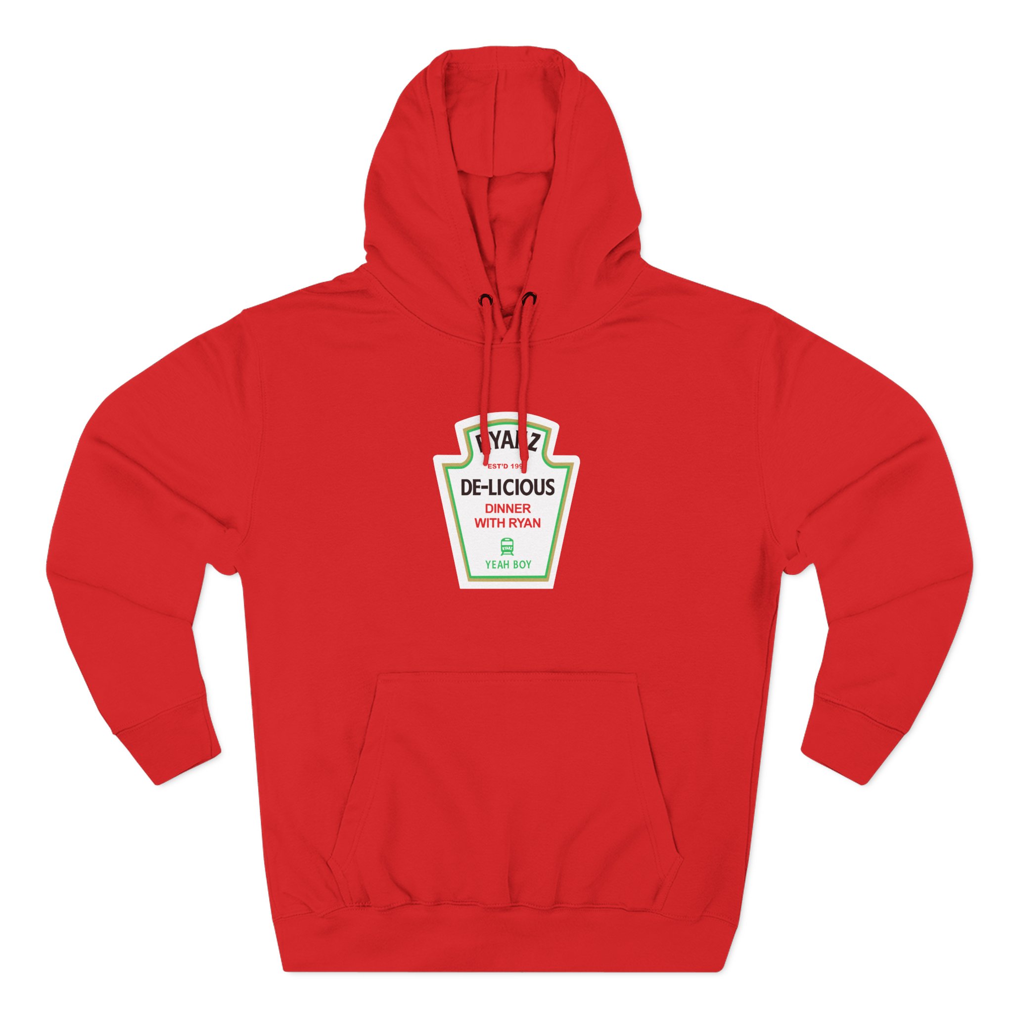 Beat the cold with this Ryan Windridge De-lecious Dinner premium pullover hoodie that’s just the right layer of warm and cozy. Made with three-panel fleece lining, this pullover is double stitched for durability and roomy. Pick one in your favorite color to match your style.