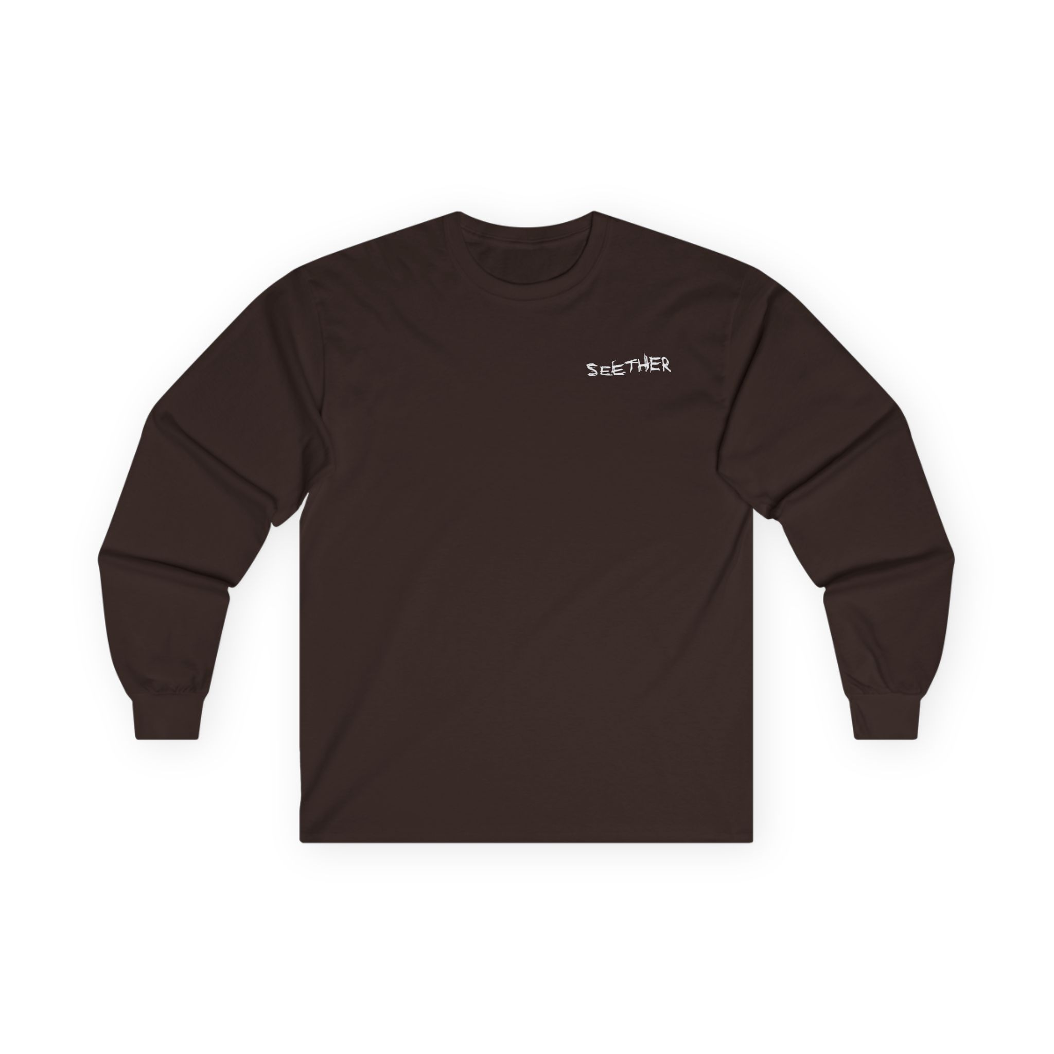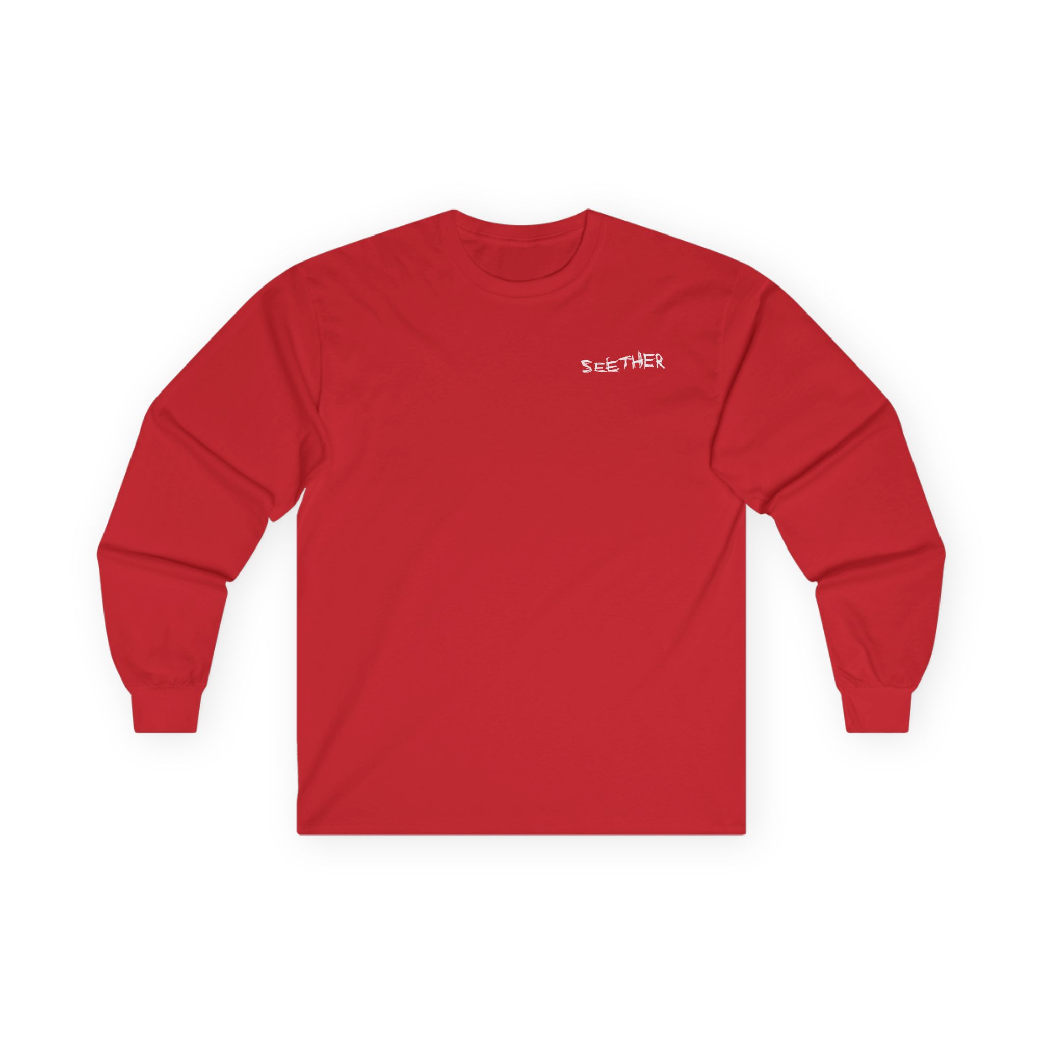 A bit more formal than a standard-issue t-shirt, the Seether Judas Scratch Logo ultra cotton long sleeve tee is a clear comfort winner. The sleeves also act as a nice frame. There are no side seams. The shoulders are taped for improved durability. This makes for a good fitting around the shoulders and neck. The cotton used for these shirts is environmentally friendly.