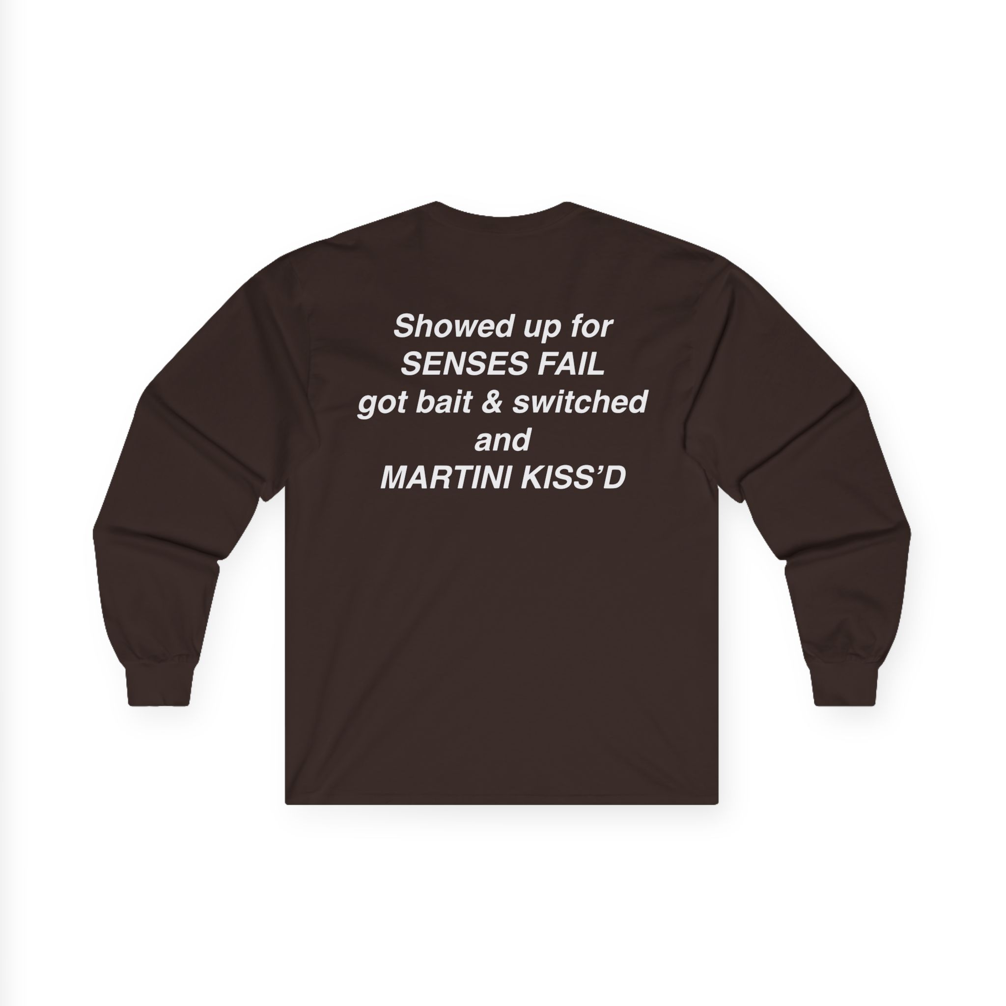A bit more formal than a standard-issue t-shirt, the Senses Fail Martini Kiss Tux ultra cotton long sleeve tee is a clear comfort winner. The sleeves also act as a nice frame. There are no side seams. The shoulders are taped for improved durability. This makes for a good fitting around the shoulders and neck. The cotton used for these shirts is environmentally friendly.
