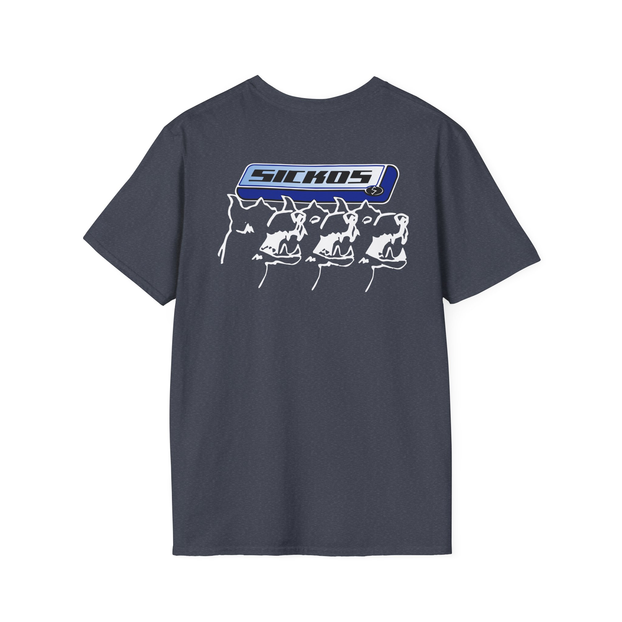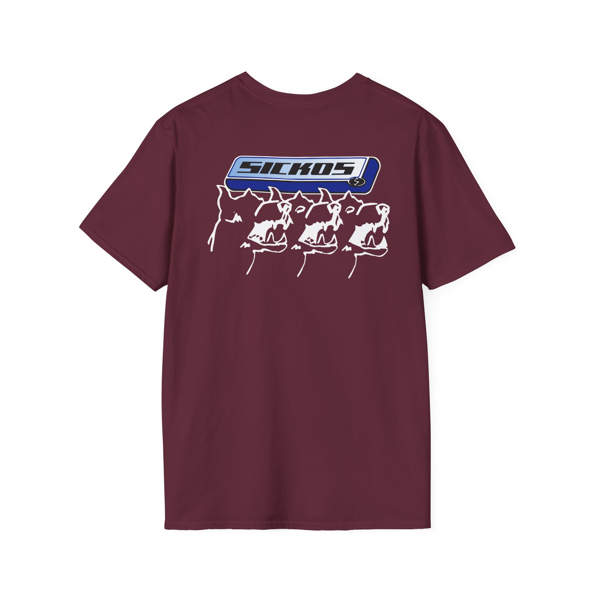 The Sickos unisex soft-style t-shirt puts a new spin on casual comfort. Made from very soft materials, this tee is 100% cotton for solid colors. Heather colors and sports grey include polyester. The shoulders have twill tape for improved durability. There are no side seams. The collar is made with ribbed knitting to prevent curling damage.