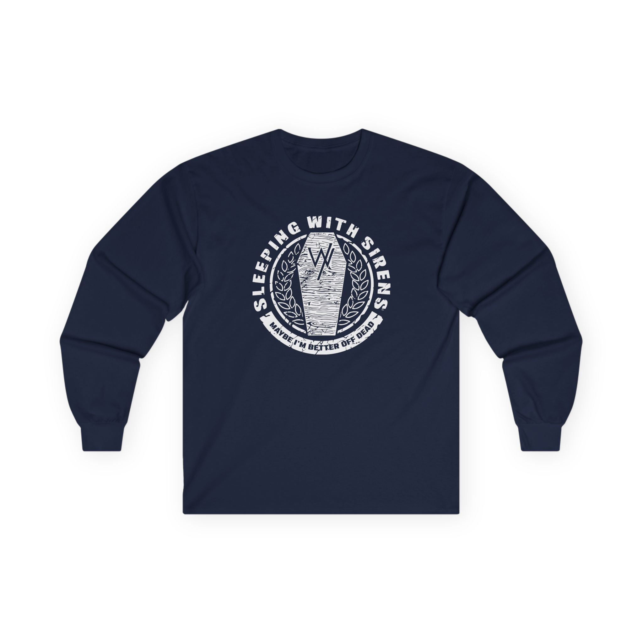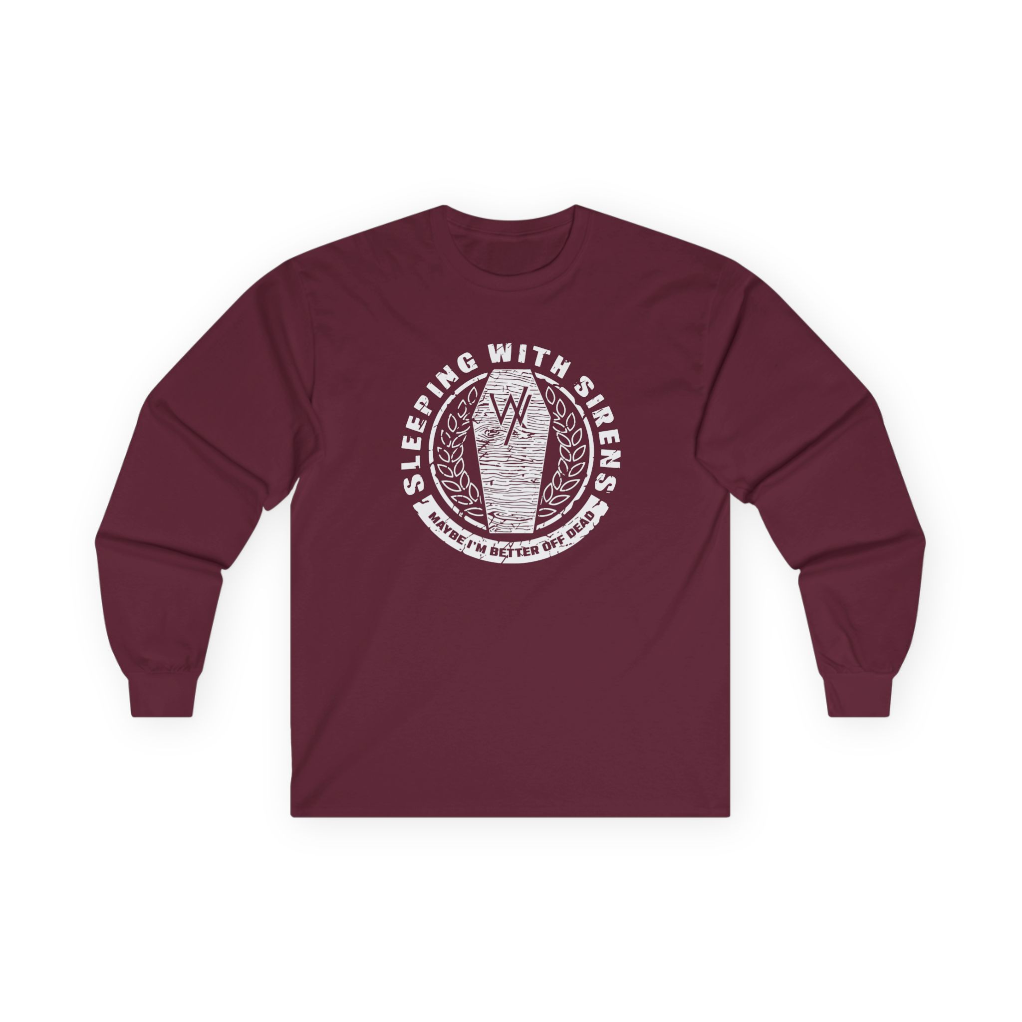 A bit more formal than a standard-issue t-shirt, the Sleeping With Sirens Coffin ultra cotton long sleeve tee is a clear comfort winner. The sleeves also act as a nice frame. There are no side seams. The shoulders are taped for improved durability. This makes for a good fitting around the shoulders and neck. The cotton used for these shirts is environmentally friendly.