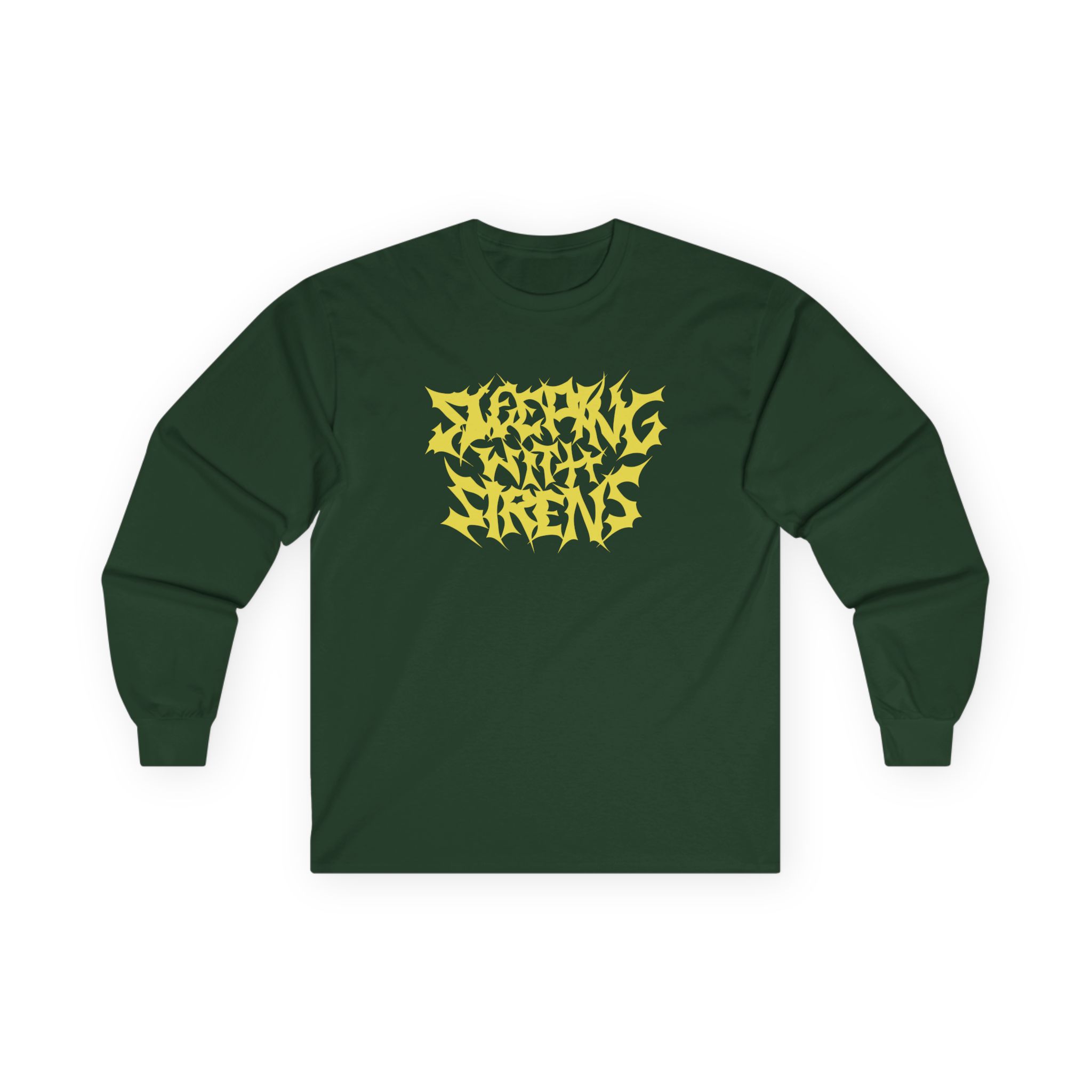 A bit more formal than a standard-issue t-shirt, the Sleeping With Sirens Metal Logo ultra cotton long sleeve tee is a clear comfort winner. The sleeves also act as a nice frame. There are no side seams. The shoulders are taped for improved durability. This makes for a good fitting around the shoulders and neck. The cotton used for these shirts is environmentally friendly.