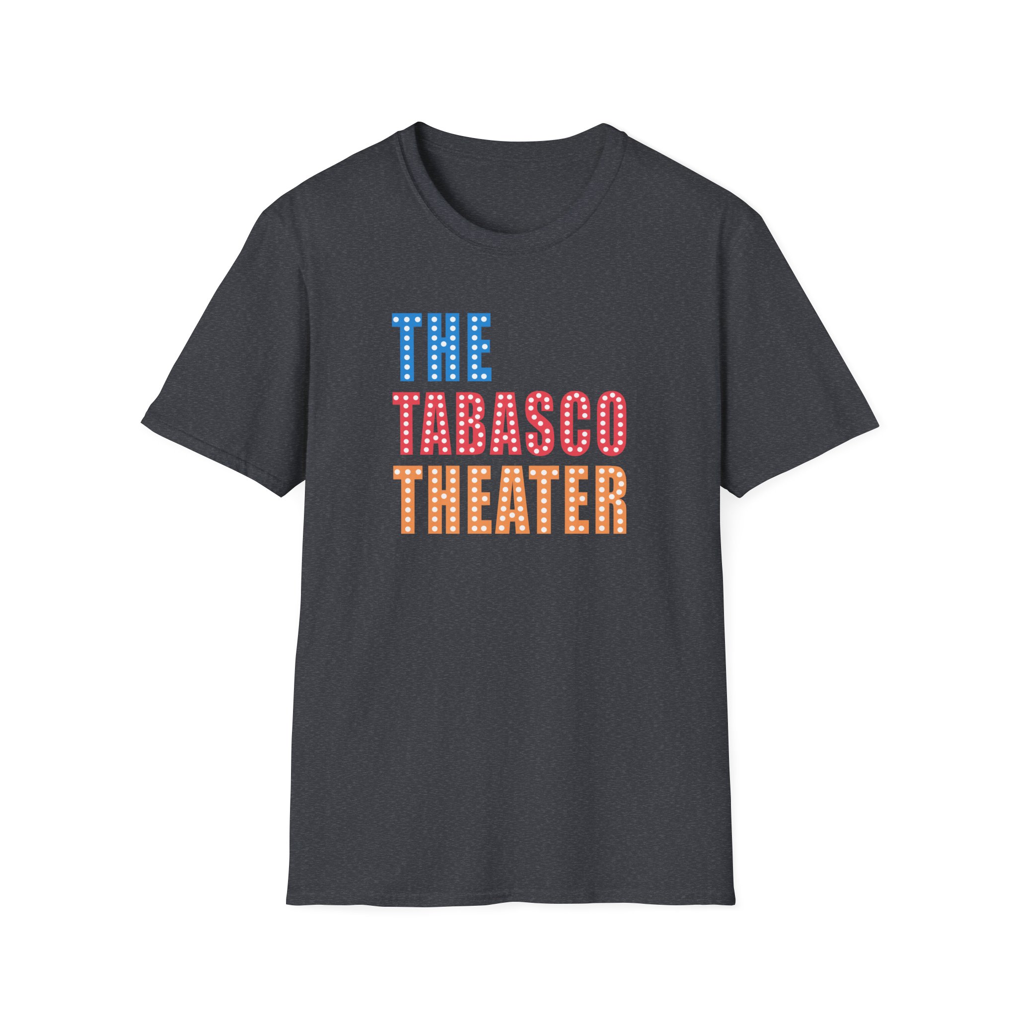 The Smartless Tabasco Theater Marquee unisex soft-style t-shirt puts a new spin on casual comfort. Made from very soft materials, this tee is 100% cotton for solid colors. Heather colors and sports grey include polyester. The shoulders have twill tape for improved durability. There are no side seams. The collar is made with ribbed knitting to prevent curling damage.