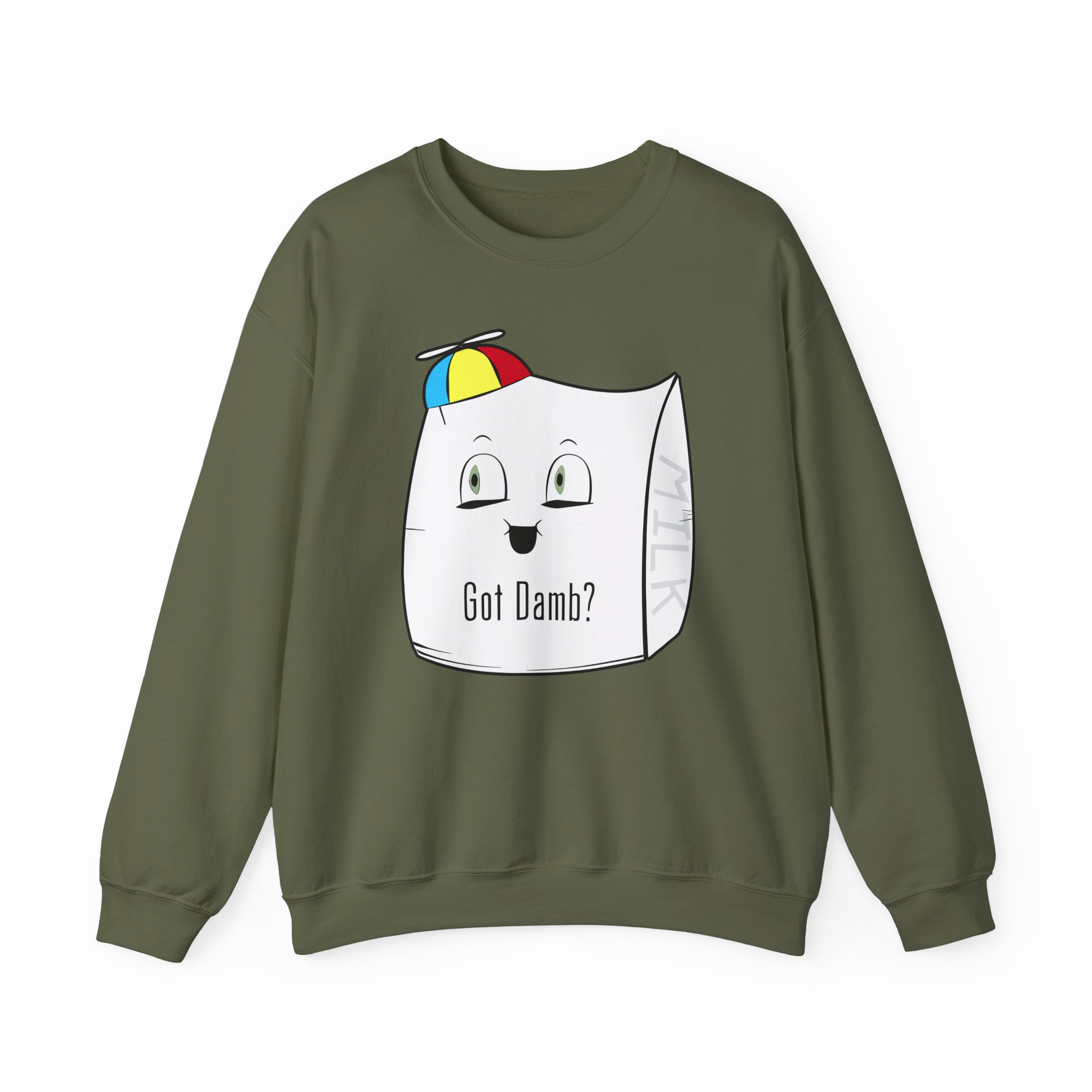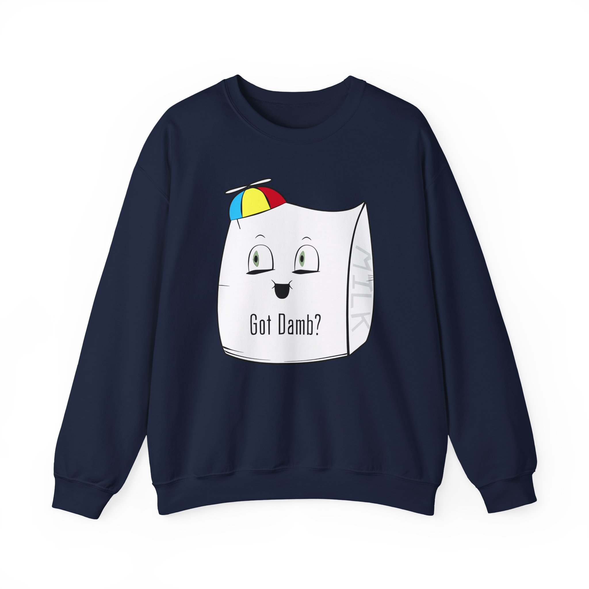 Ideal for any situation, a Smii7y Milk Bag unisex heavy blend crewneck sweatshirt is pure comfort. These garments are made from polyester and cotton. This combination helps designs come out looking fresh and beautiful. The collar is ribbed knit, so it retains its shape even after washing. There are no itchy side seams on these sweaters.