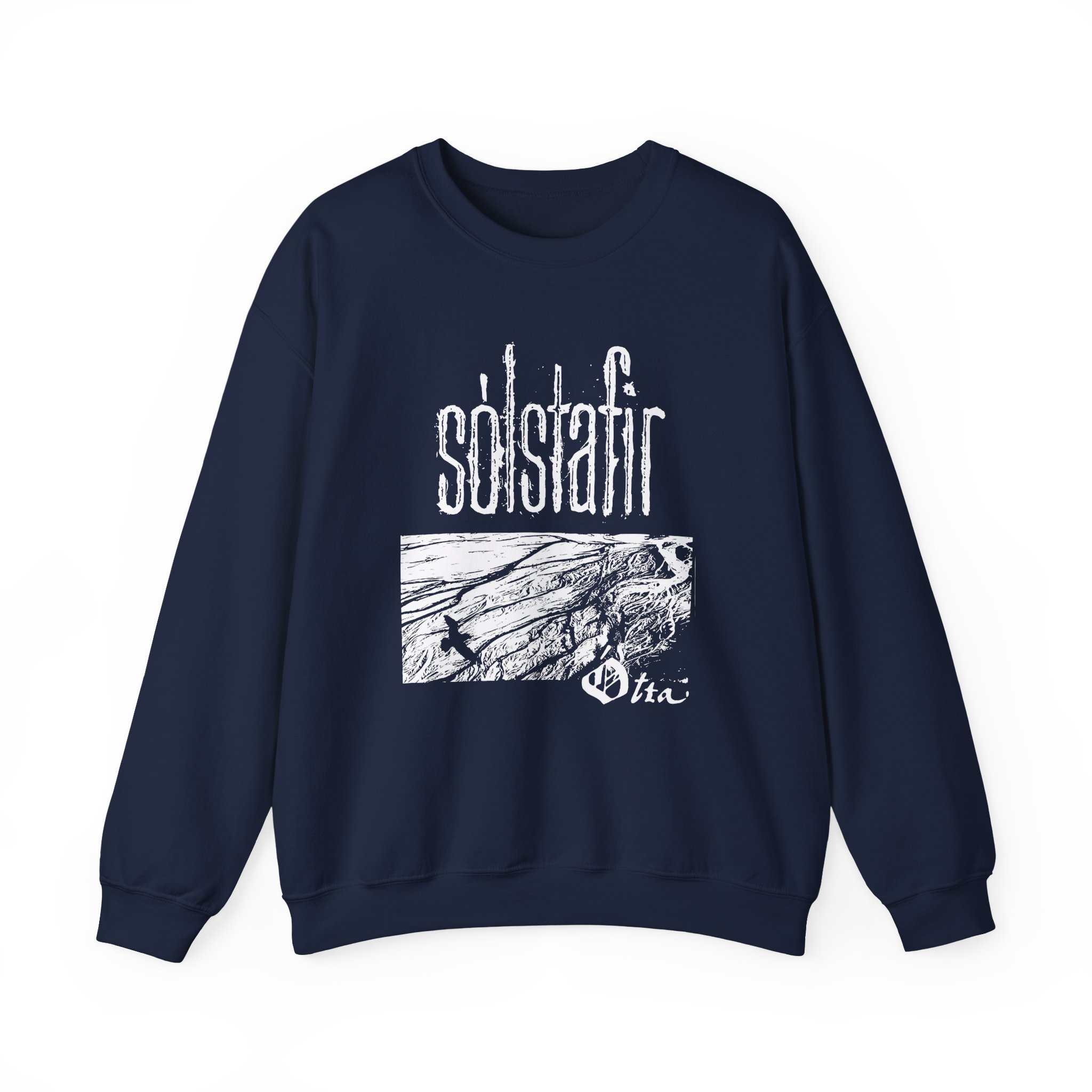 Ideal for any situation, a Solstafir Ótta Raven unisex heavy blend crewneck sweatshirt is pure comfort. These garments are made from polyester and cotton. This combination helps designs come out looking fresh and beautiful. The collar is ribbed knit, so it retains its shape even after washing. There are no itchy side seams on these sweaters.