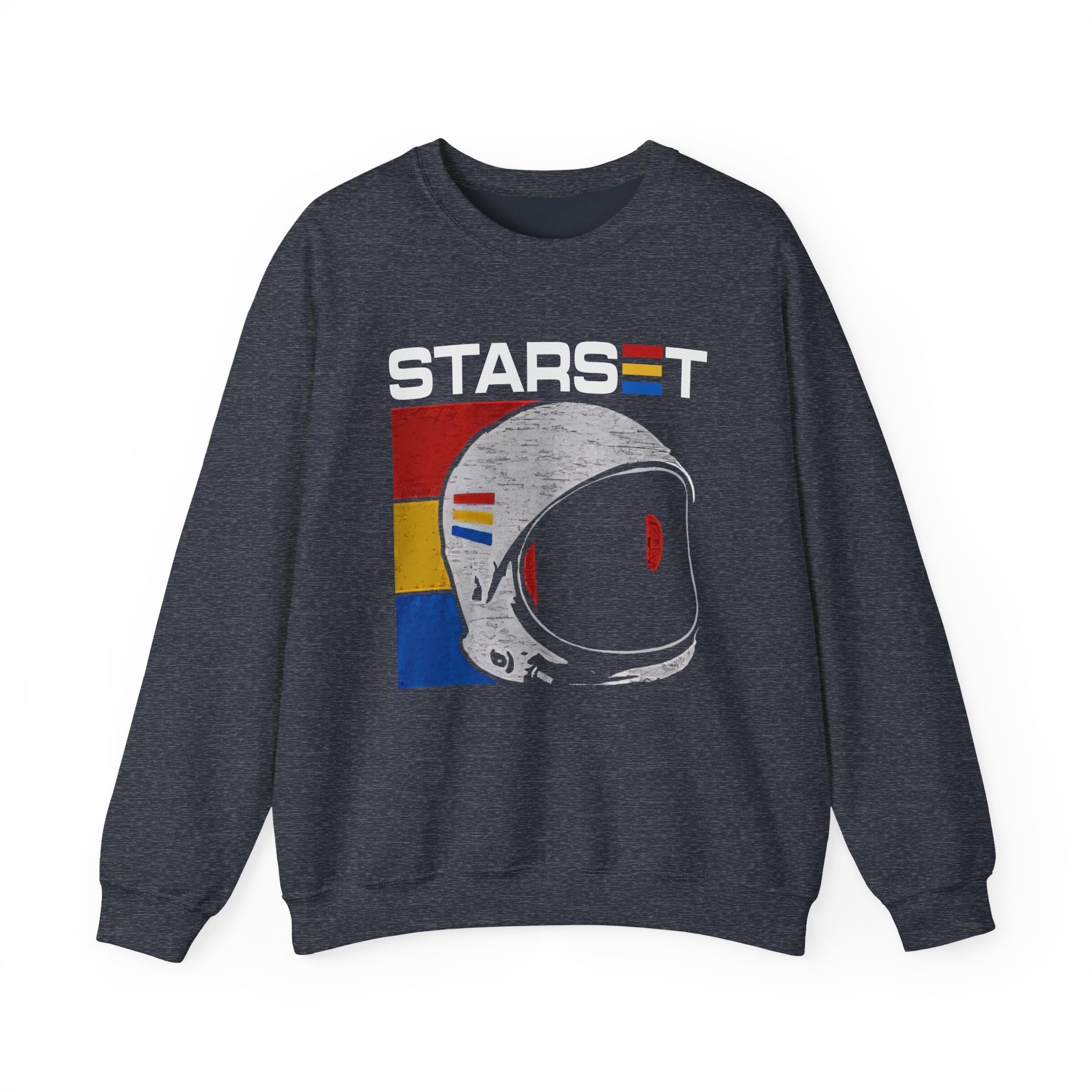Ideal for any situation, a Starset Helmet T unisex heavy blend crewneck sweatshirt is pure comfort. These garments are made from polyester and cotton. This combination helps designs come out looking fresh and beautiful. The collar is ribbed knit, so it retains its shape even after washing. There are no itchy side seams on these sweaters.