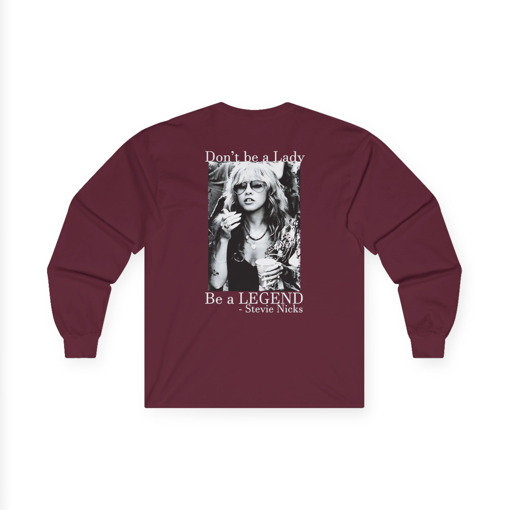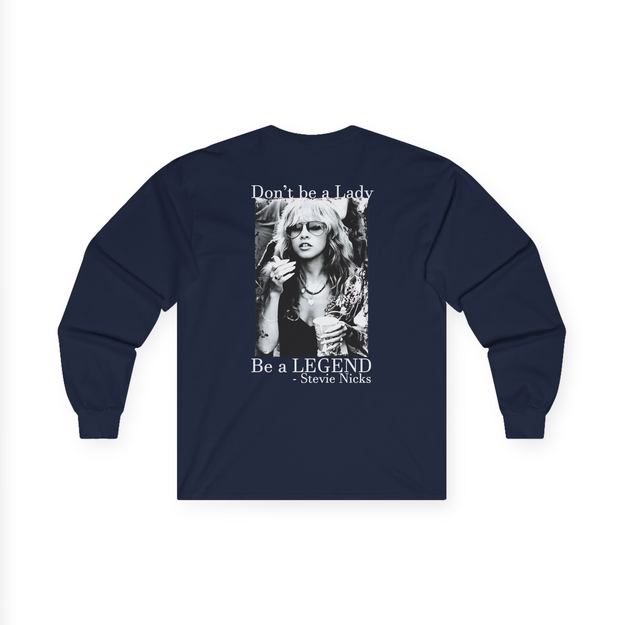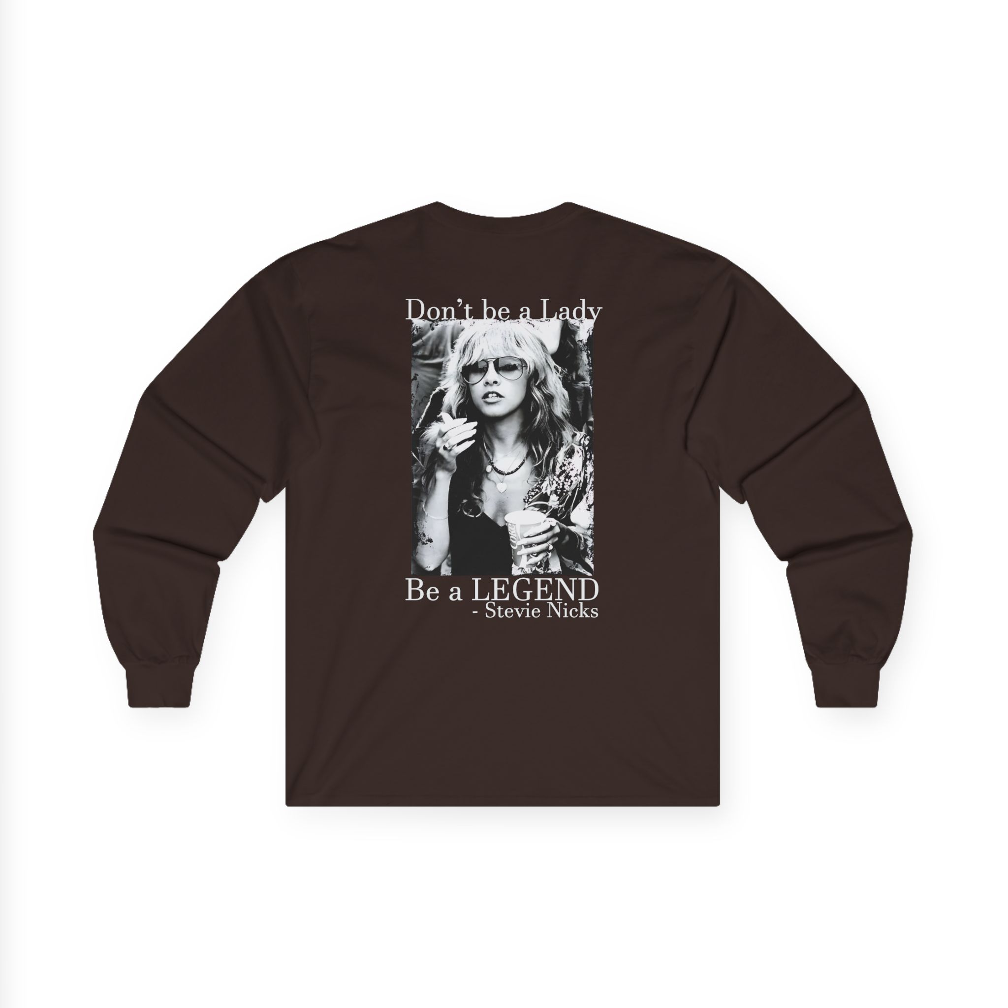A bit more formal than a standard-issue t-shirt, the Stevie Nicks Don’t Be A Lady, Be A Legend ultra cotton long sleeve tee is a clear comfort winner. The sleeves also act as a nice frame. There are no side seams. The shoulders are taped for improved durability. This makes for a good fitting around the shoulders and neck. The cotton used for these shirts is environmentally friendly.