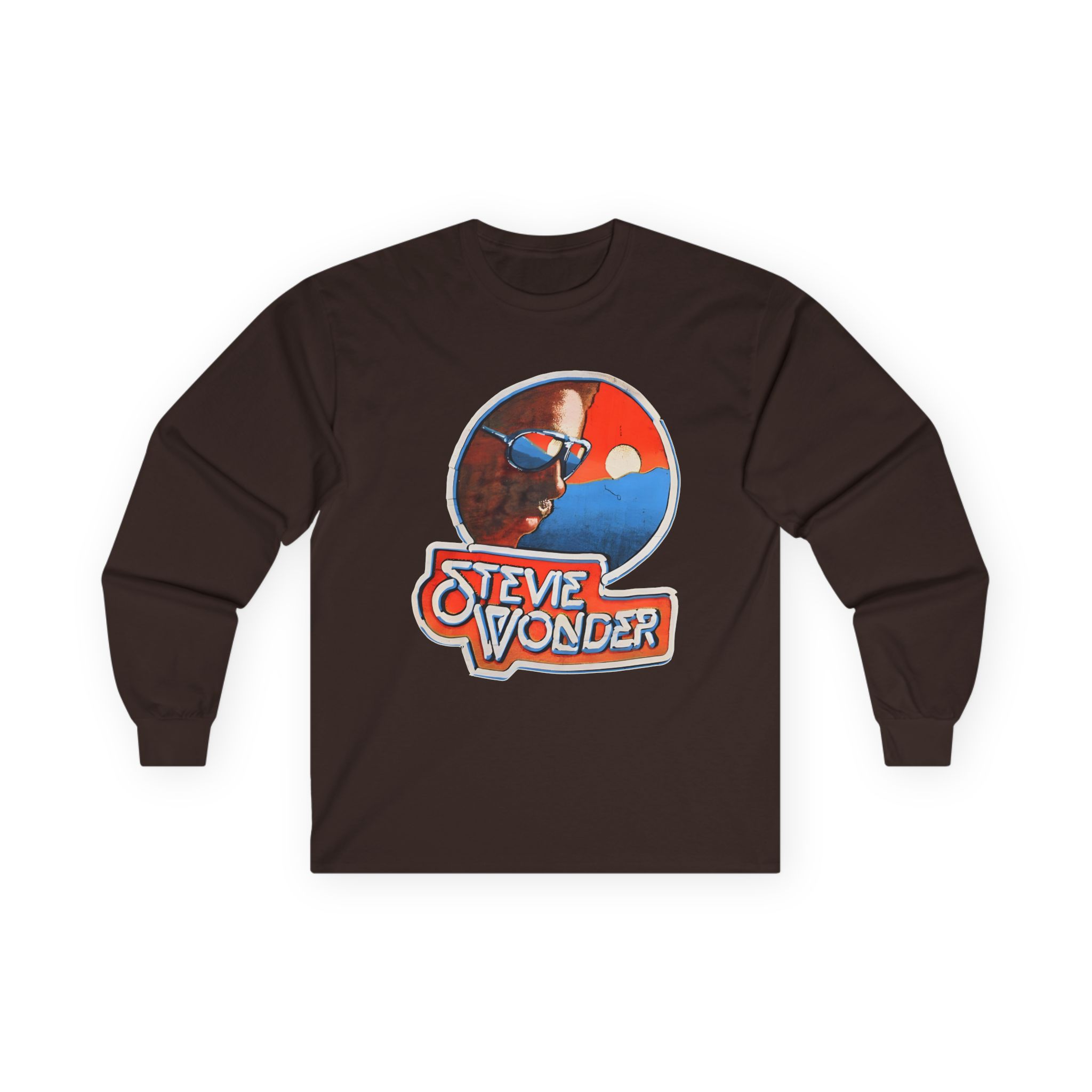 A bit more formal than a standard-issue t-shirt, the Stevie Wonder Music of My Mind ultra cotton long sleeve tee is a clear comfort winner. The sleeves also act as a nice frame. There are no side seams. The shoulders are taped for improved durability. This makes for a good fitting around the shoulders and neck. The cotton used for these shirts is environmentally friendly.