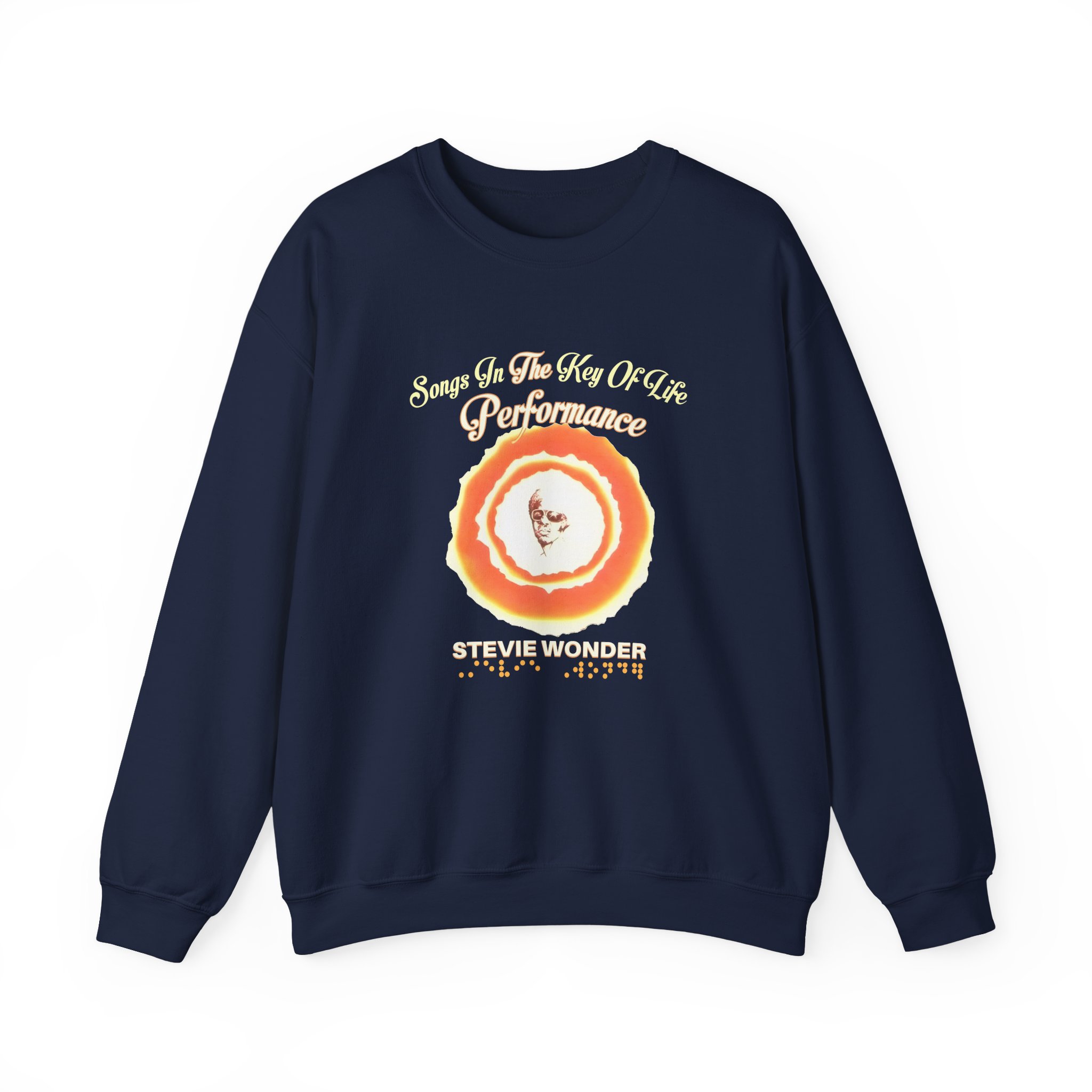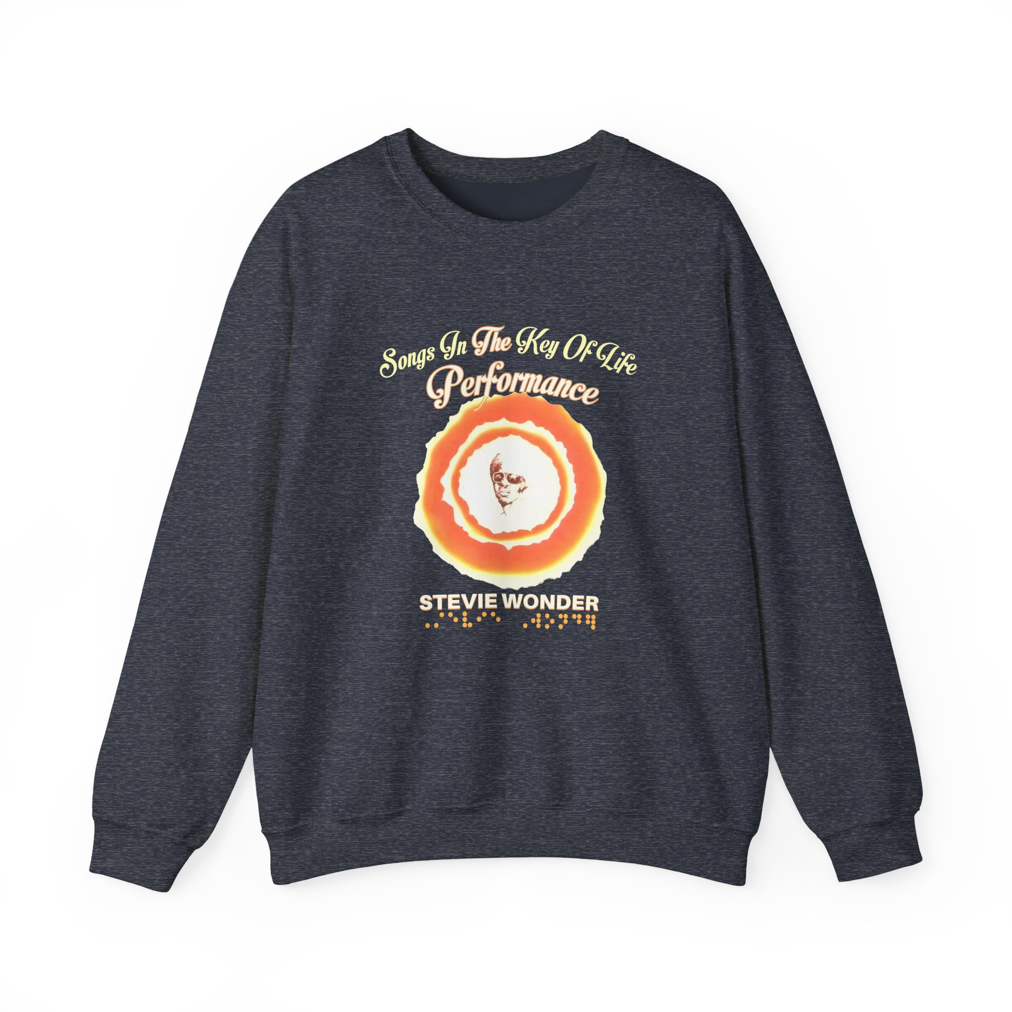 Ideal for any situation, a Stevie Wonder Songs in the Key of Life unisex heavy blend crewneck sweatshirt is pure comfort. These garments are made from polyester and cotton. This combination helps designs come out looking fresh and beautiful. The collar is ribbed knit, so it retains its shape even after washing. There are no itchy side seams on these sweaters.