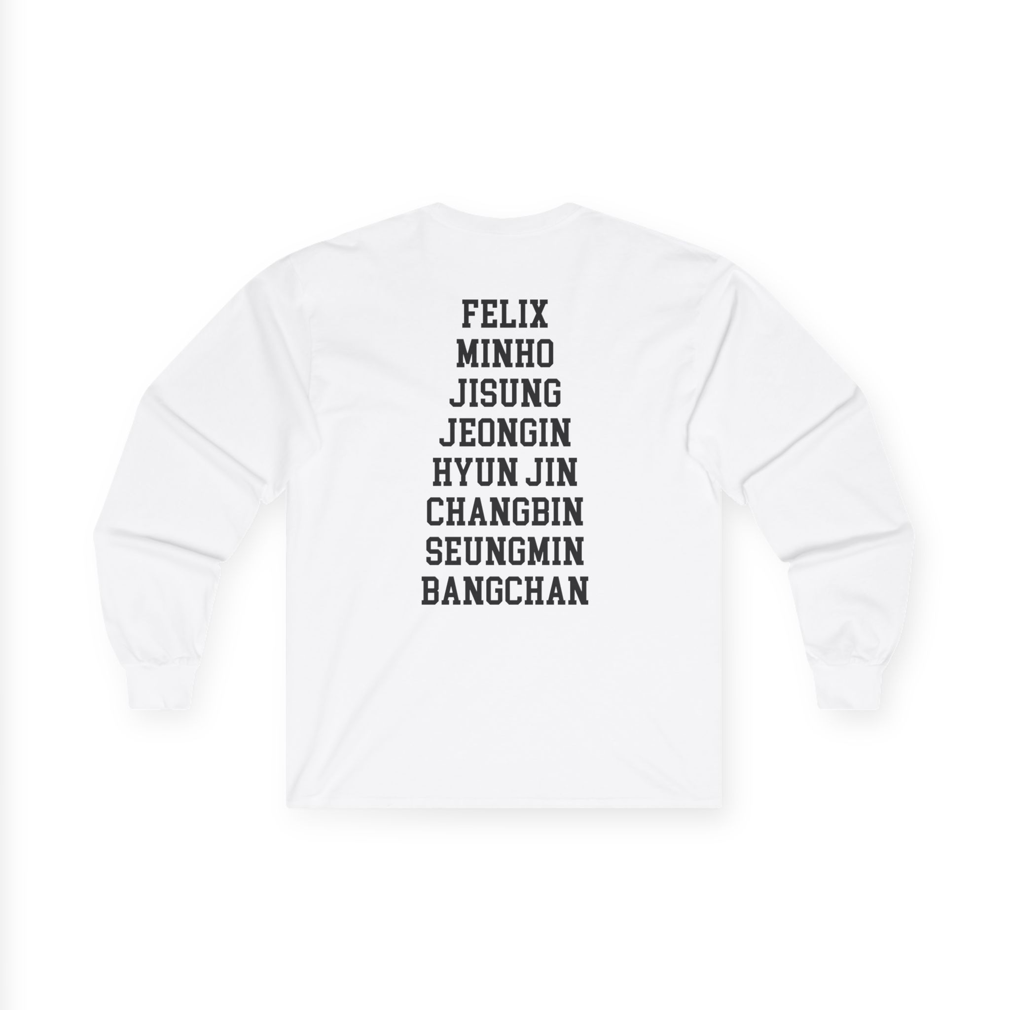 A bit more formal than a standard-issue t-shirt, the Stray Kids ultra cotton long sleeve tee is a clear comfort winner. The sleeves also act as a nice frame. There are no side seams. The shoulders are taped for improved durability. This makes for a good fitting around the shoulders and neck. The cotton used for these shirts is environmentally friendly.