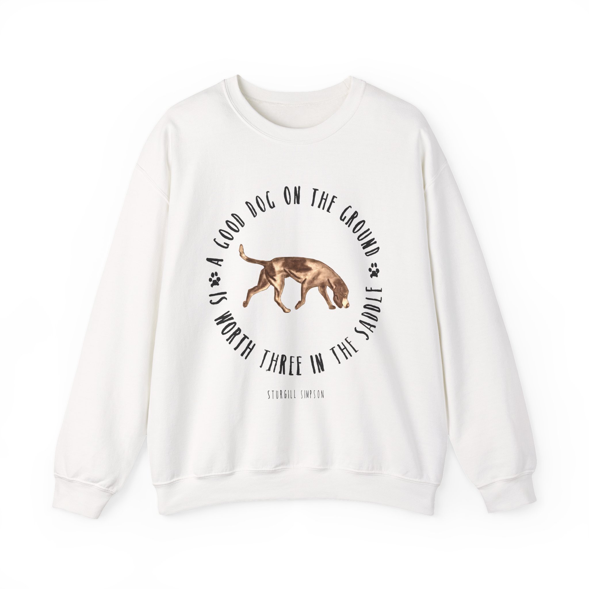 Ideal for any situation, a Sturgill Simpson Good Dog unisex heavy blend crewneck sweatshirt is pure comfort. These garments are made from polyester and cotton. This combination helps designs come out looking fresh and beautiful. The collar is ribbed knit, so it retains its shape even after washing. There are no itchy side seams on these sweaters.