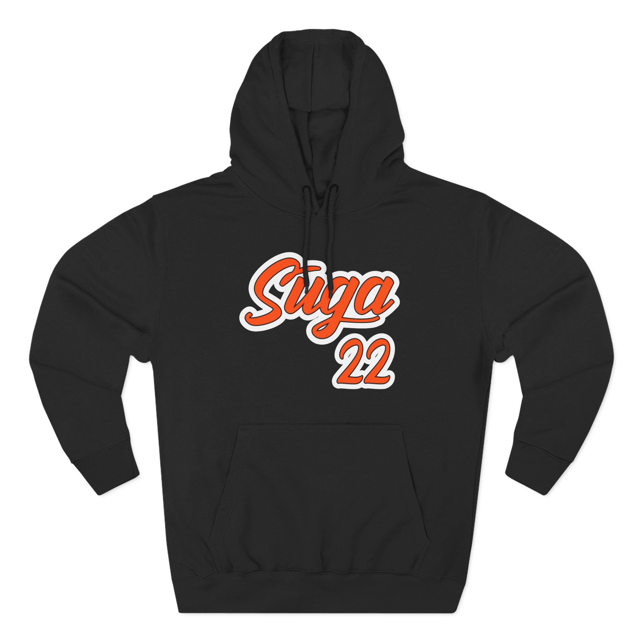 Beat the cold with this Suga Sean Suga 22 premium pullover hoodie that’s just the right layer of warm and cozy. Made with three-panel fleece lining, this pullover is double stitched for durability and roomy. Pick one in your favorite color to match your style.