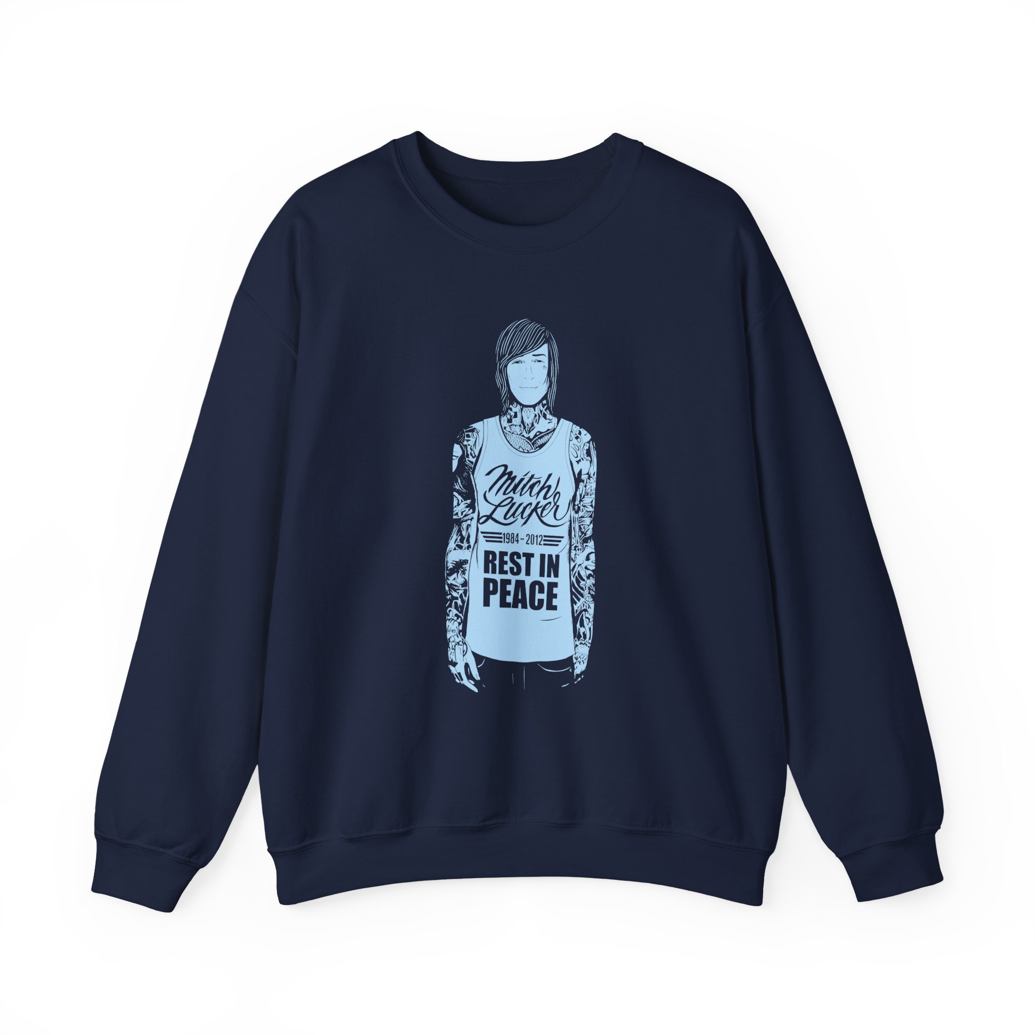 Ideal for any situation, a Suicide Silence Mitch Lucker unisex heavy blend crewneck sweatshirt is pure comfort. These garments are made from polyester and cotton. This combination helps designs come out looking fresh and beautiful. The collar is ribbed knit, so it retains its shape even after washing. There are no itchy side seams on these sweaters.