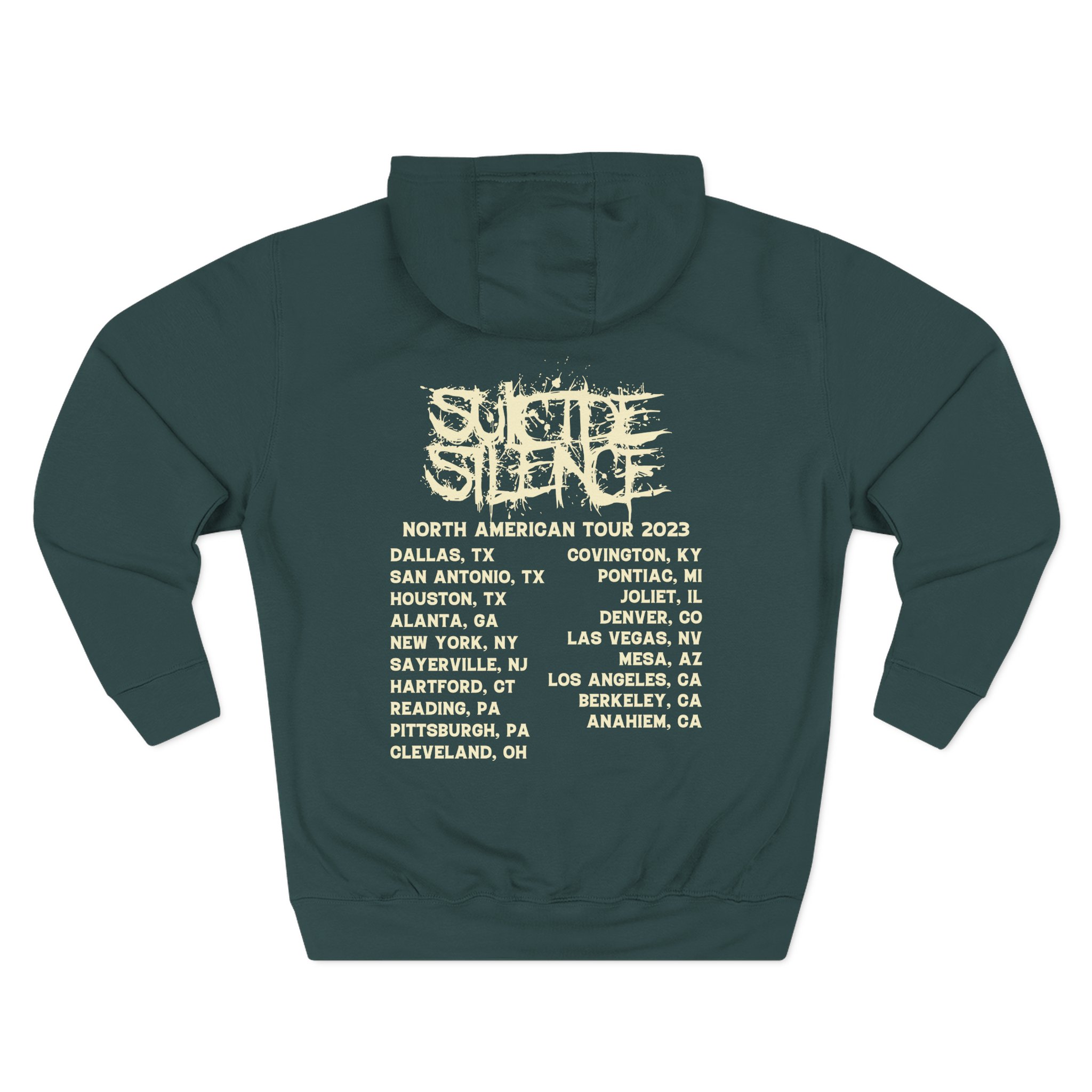 Beat the cold with this Suicide Silence Rymd Cover Tour 2023 premium pullover hoodie that’s just the right layer of warm and cozy. Made with three-panel fleece lining, this pullover is double stitched for durability and roomy. Pick one in your favorite color to match your style.