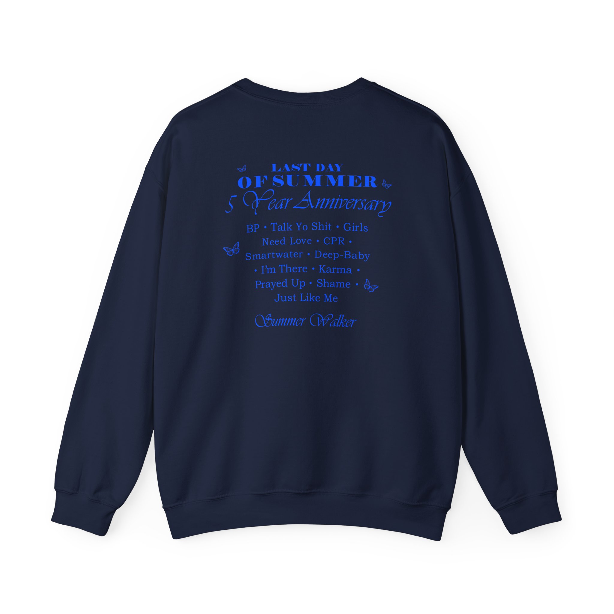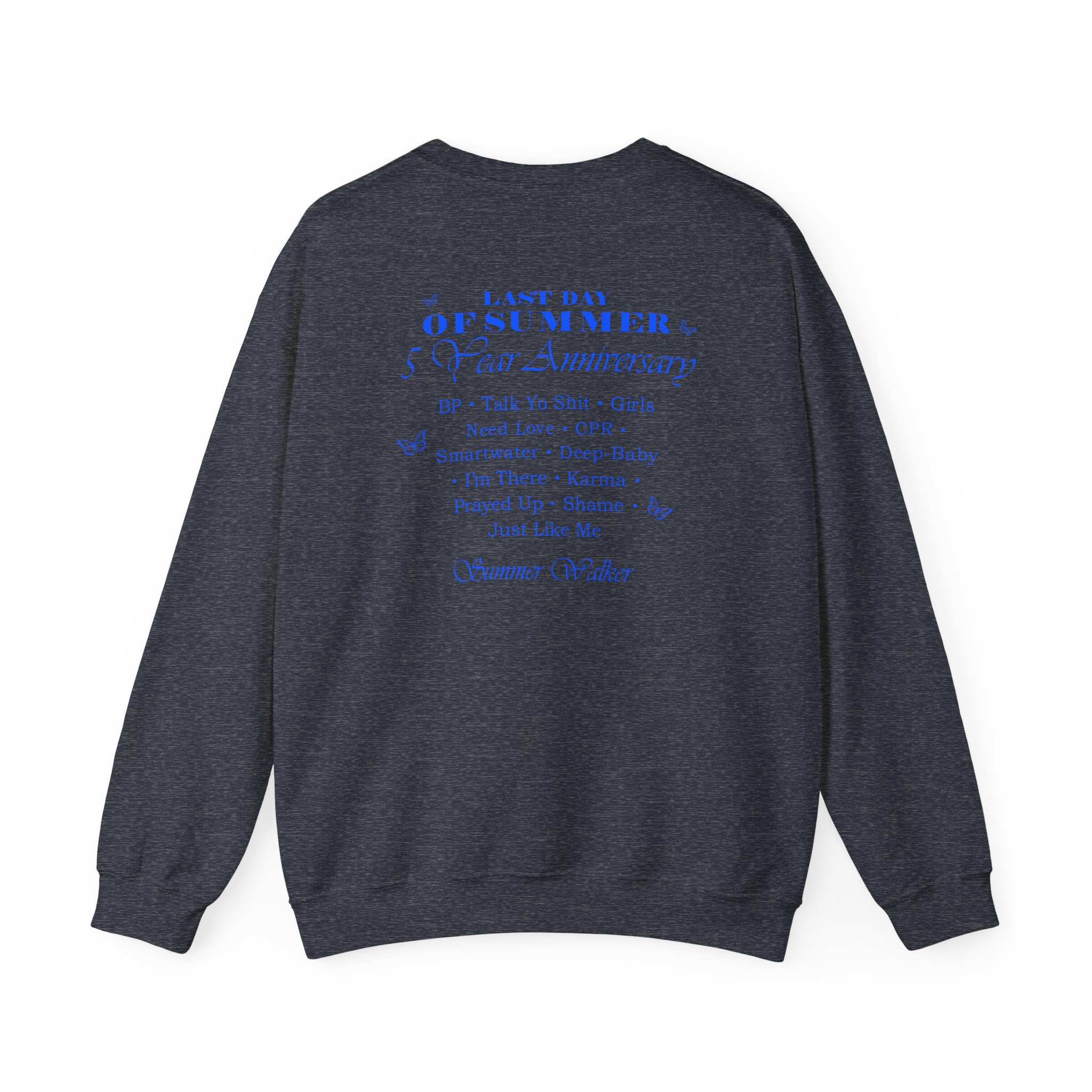 Ideal for any situation, a Summer Walker LDOS 5-Year unisex heavy blend crewneck sweatshirt is pure comfort. These garments are made from polyester and cotton. This combination helps designs come out looking fresh and beautiful. The collar is ribbed knit, so it retains its shape even after washing. There are no itchy side seams on these sweaters.