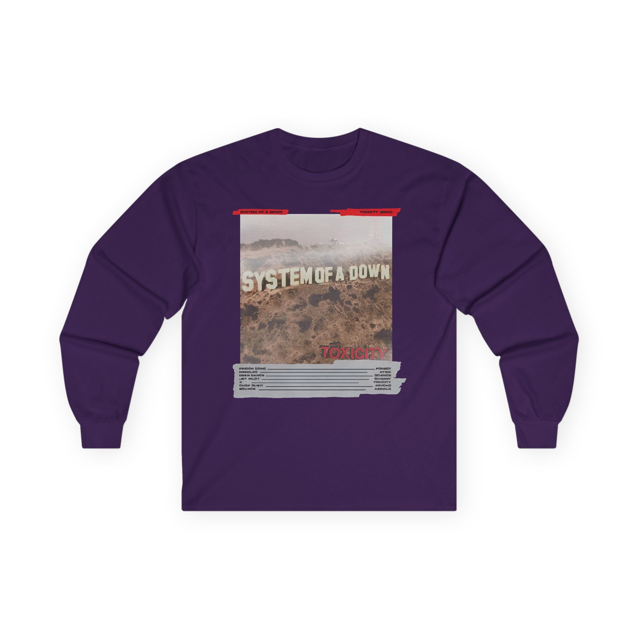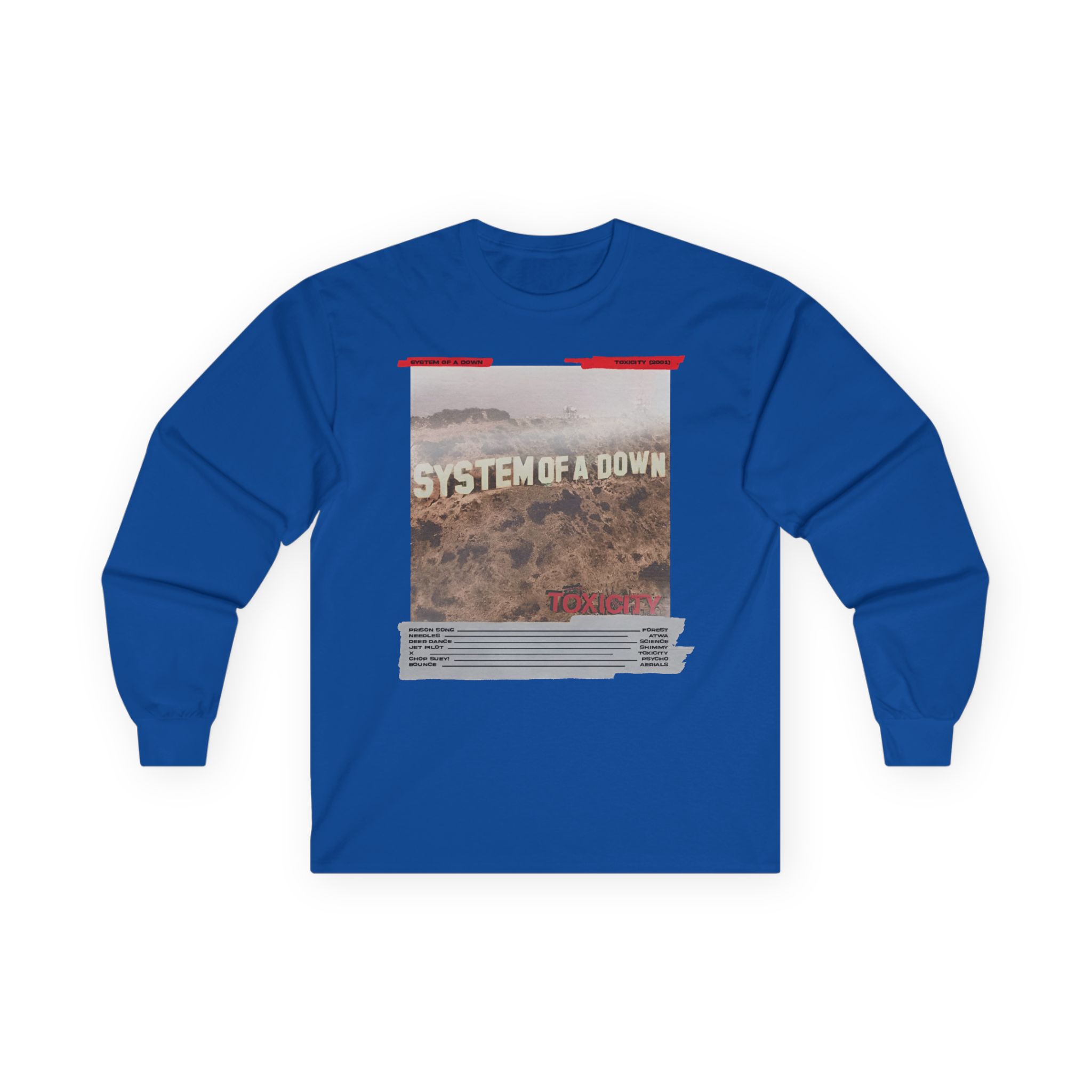 A bit more formal than a standard-issue t-shirt, the System of a Down Mixing Board ultra cotton long sleeve tee is a clear comfort winner. The sleeves also act as a nice frame. There are no side seams. The shoulders are taped for improved durability. This makes for a good fitting around the shoulders and neck. The cotton used for these shirts is environmentally friendly.