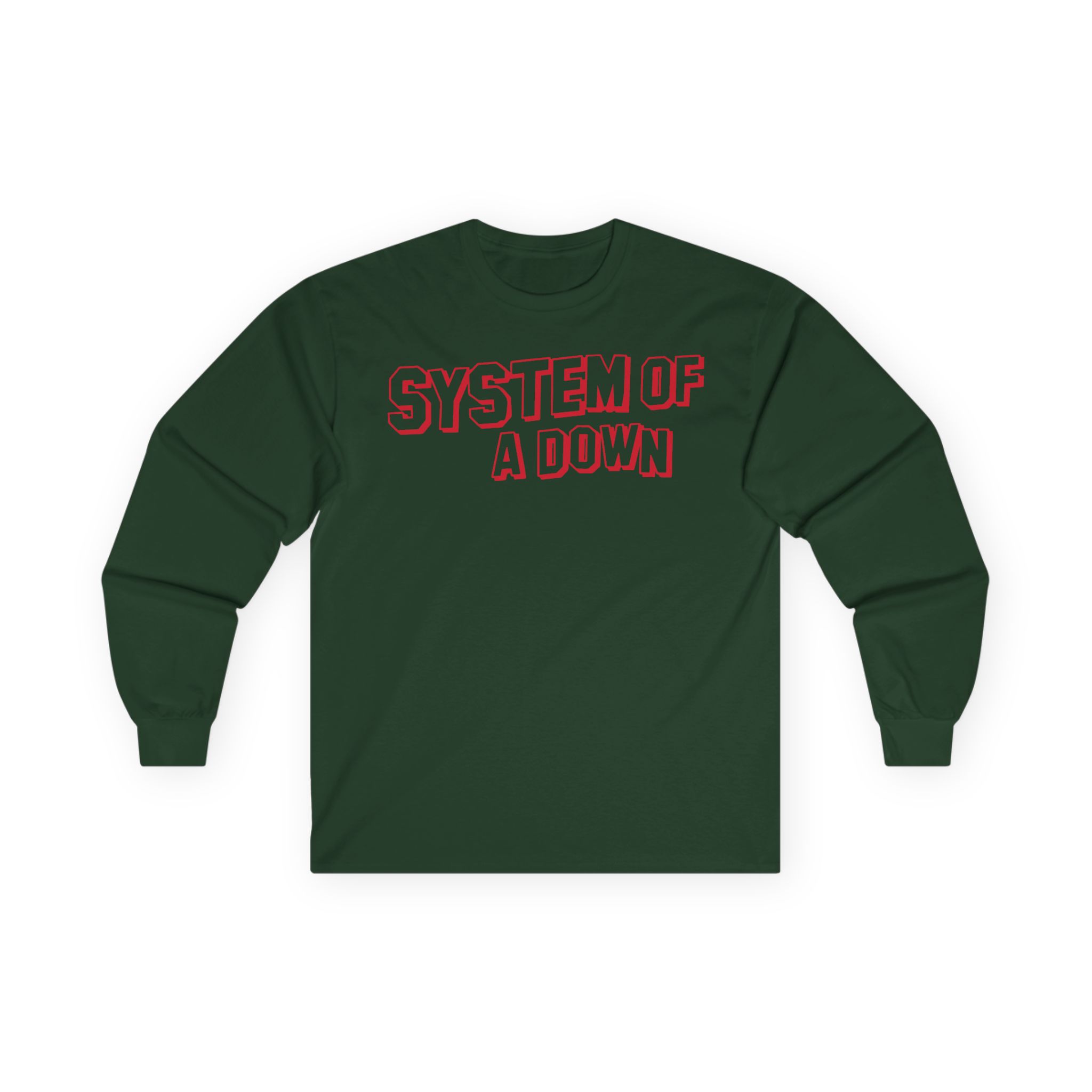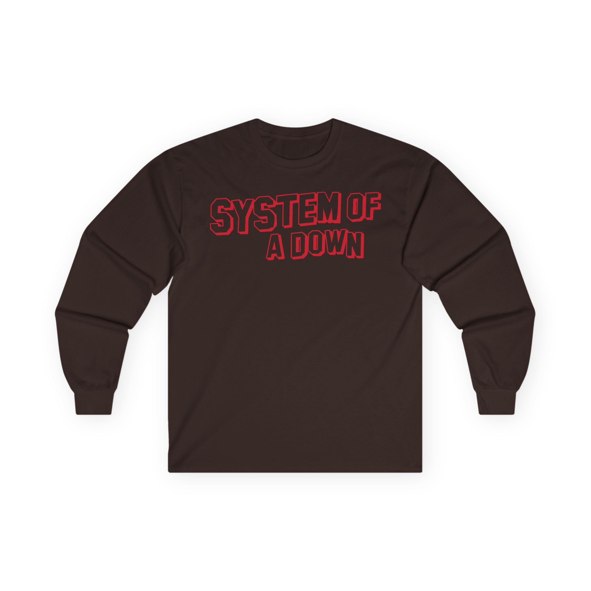 A bit more formal than a standard-issue t-shirt, the System of a Down Soad Hollywood ultra cotton long sleeve tee is a clear comfort winner. The sleeves also act as a nice frame. There are no side seams. The shoulders are taped for improved durability. This makes for a good fitting around the shoulders and neck. The cotton used for these shirts is environmentally friendly.