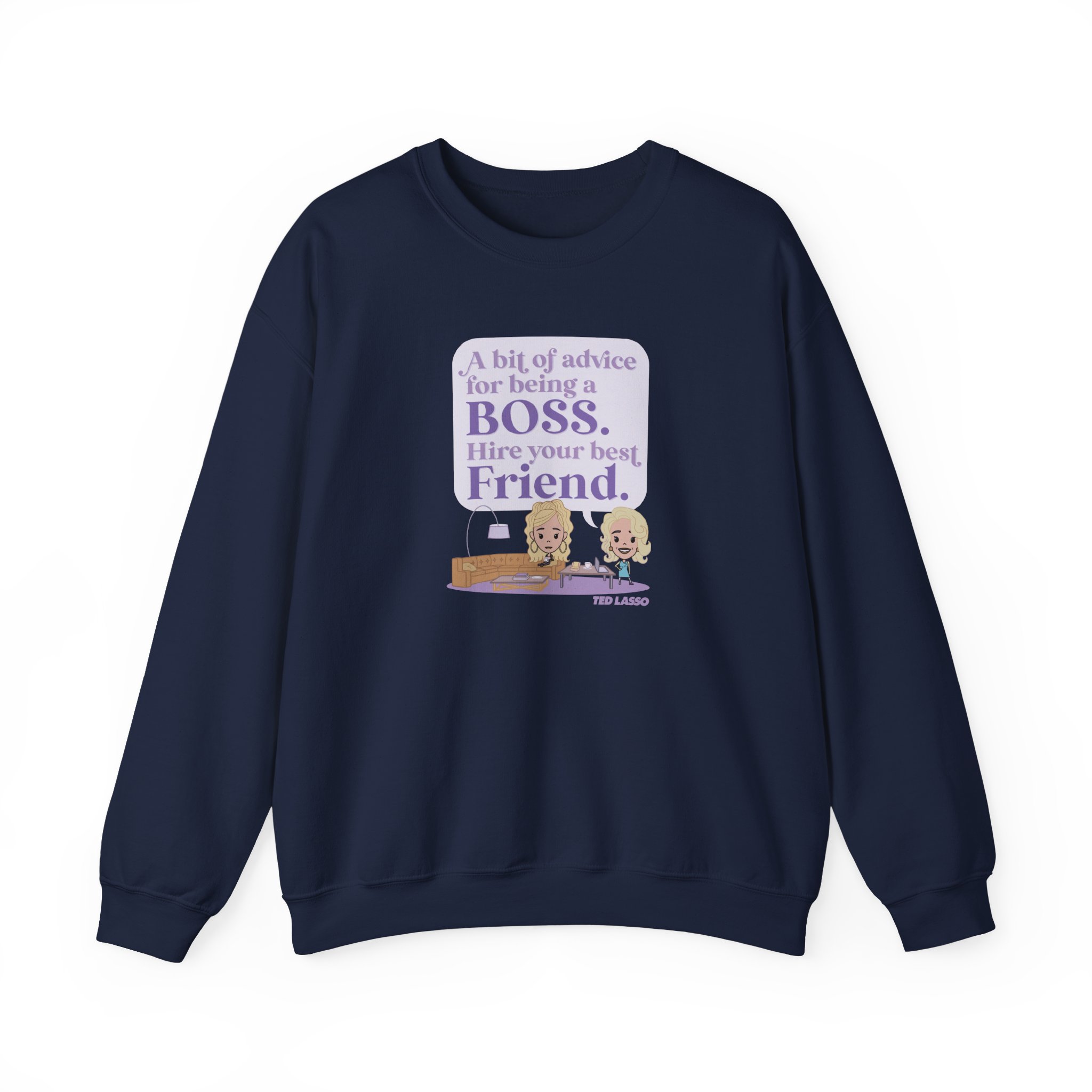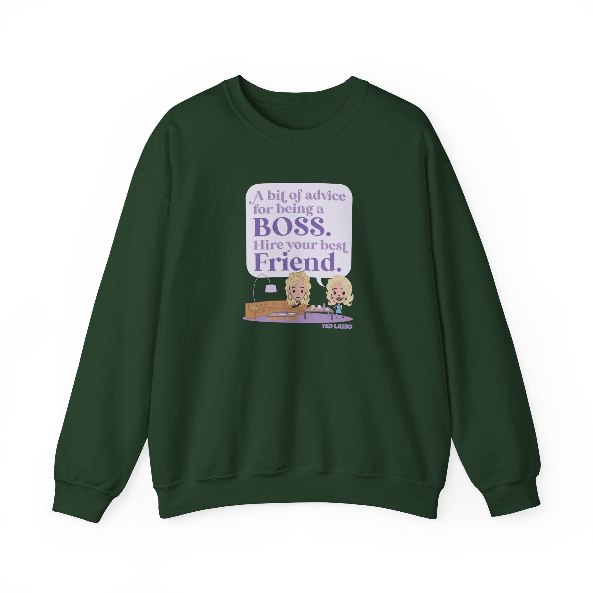 Ideal for any situation, a Ted Lasso Hire Your Best Friend unisex heavy blend crewneck sweatshirt is pure comfort. These garments are made from polyester and cotton. This combination helps designs come out looking fresh and beautiful. The collar is ribbed knit, so it retains its shape even after washing. There are no itchy side seams on these sweaters.