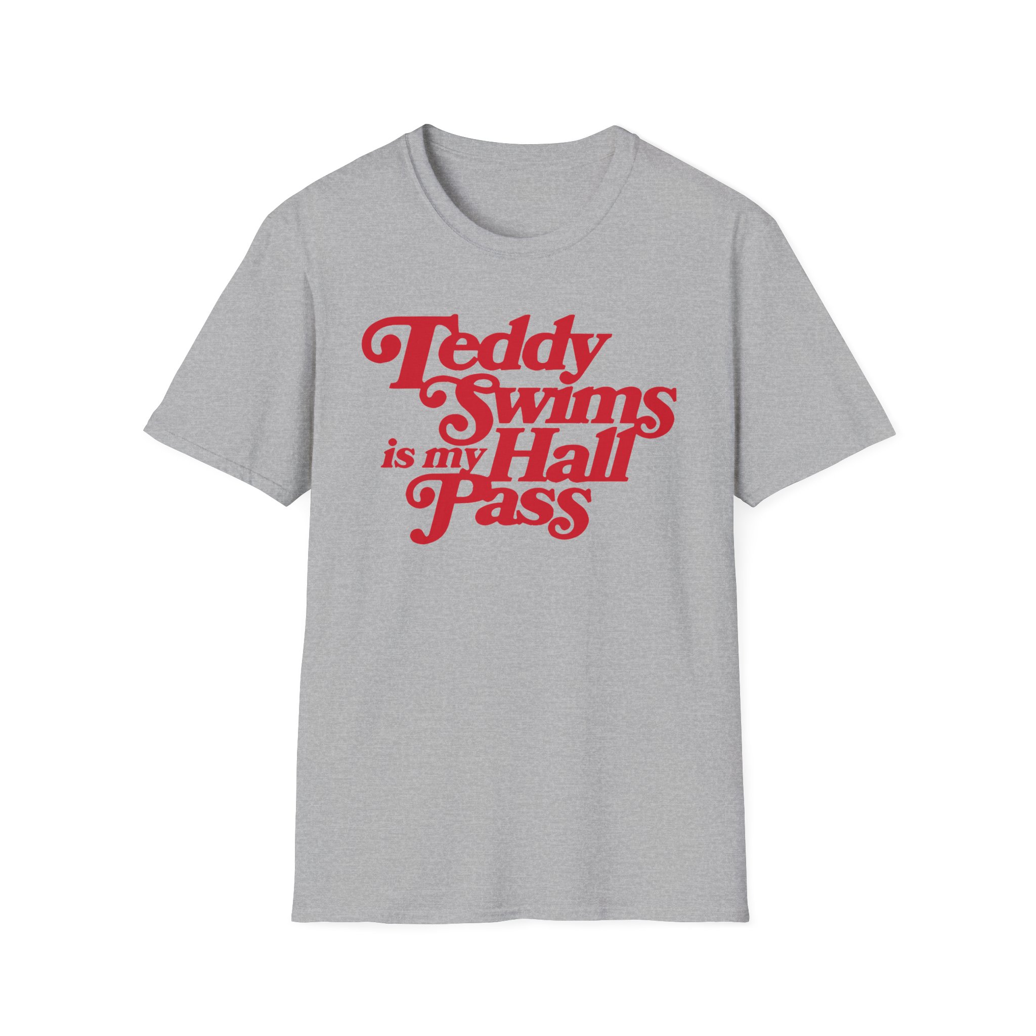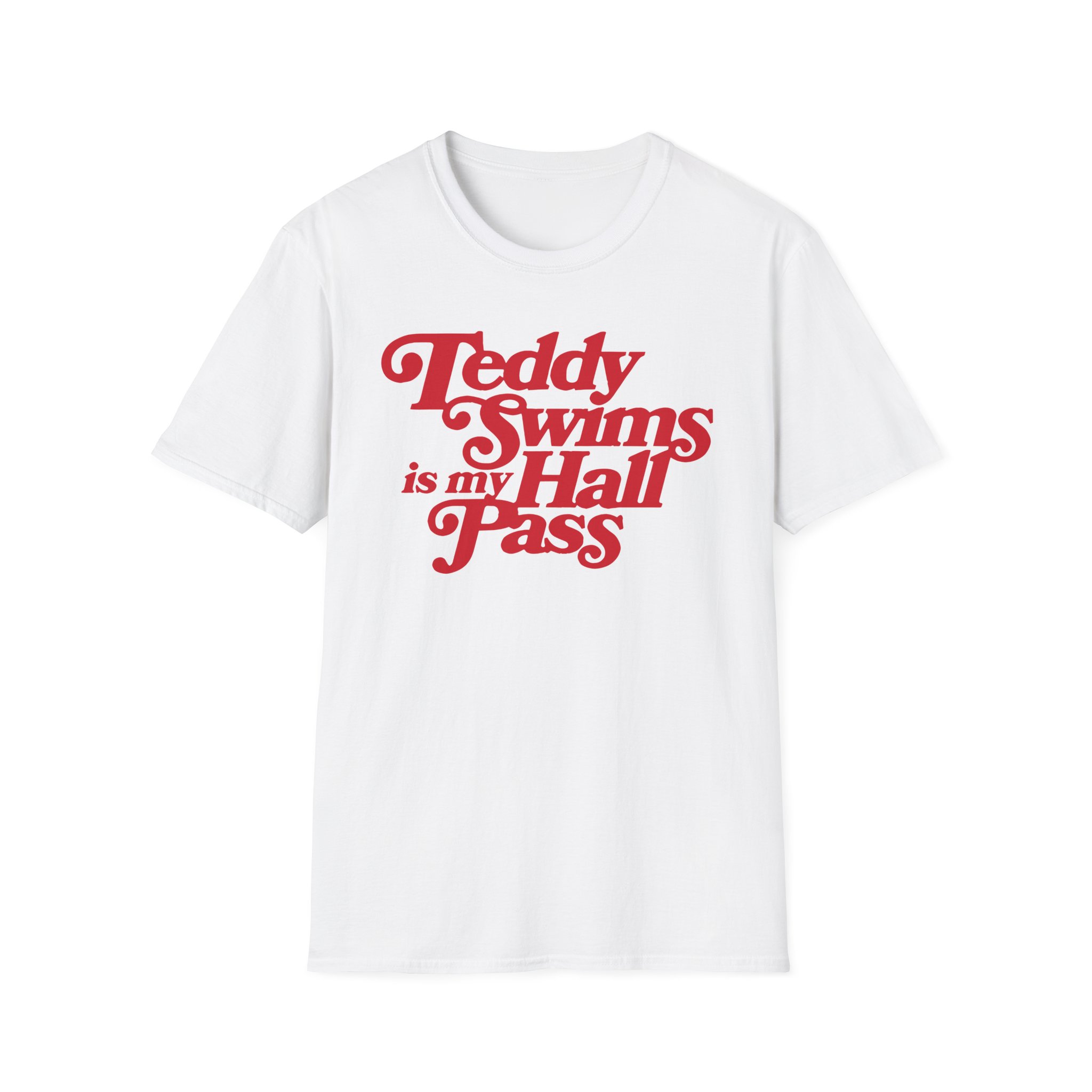The Teddy Swims is My Hall Pass unisex soft-style t-shirt puts a new spin on casual comfort. Made from very soft materials, this tee is 100% cotton for solid colors. Heather colors and sports grey include polyester. The shoulders have twill tape for improved durability. There are no side seams. The collar is made with ribbed knitting to prevent curling damage.