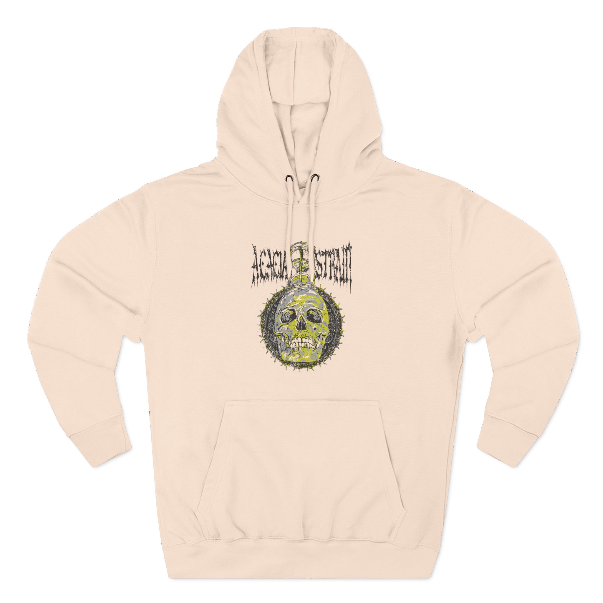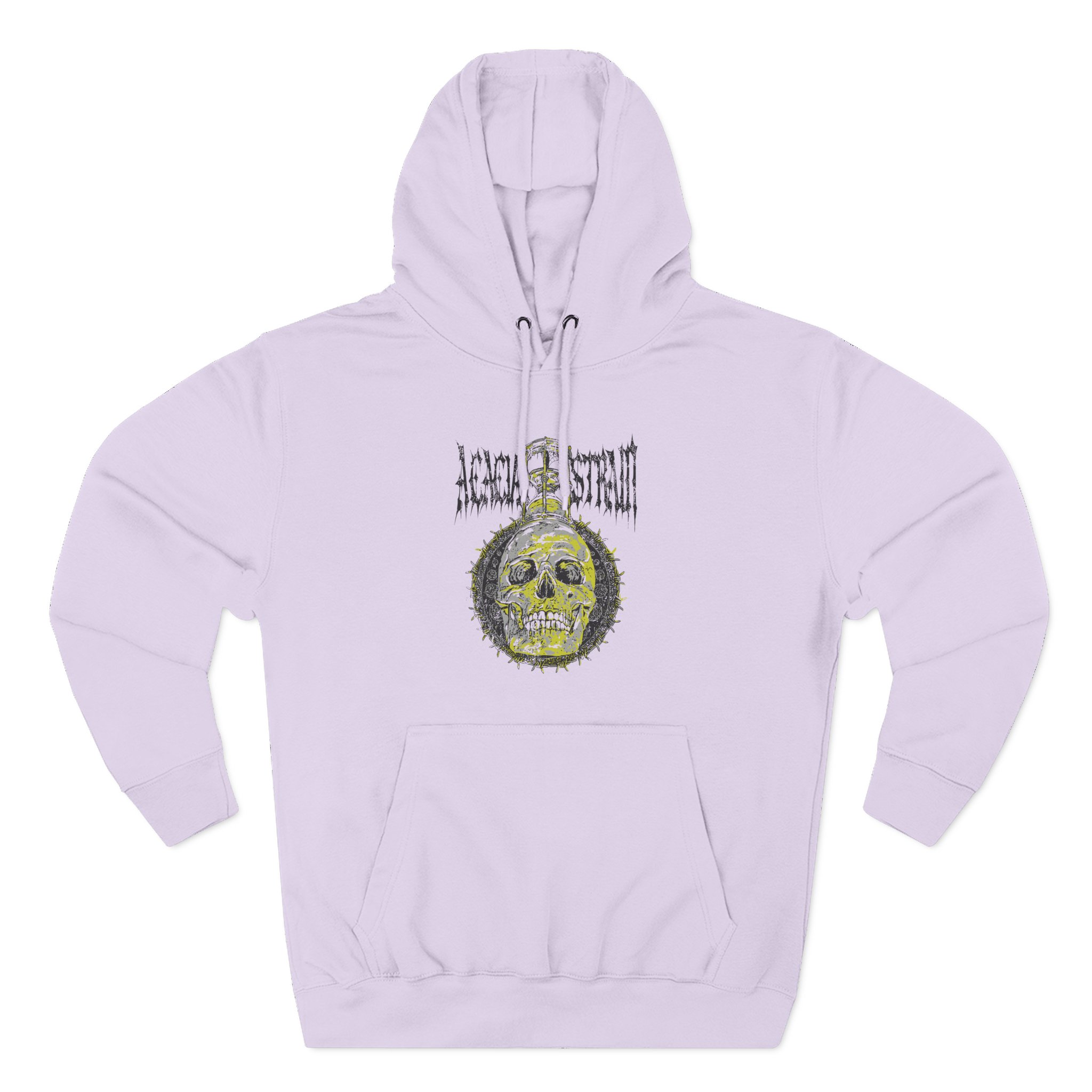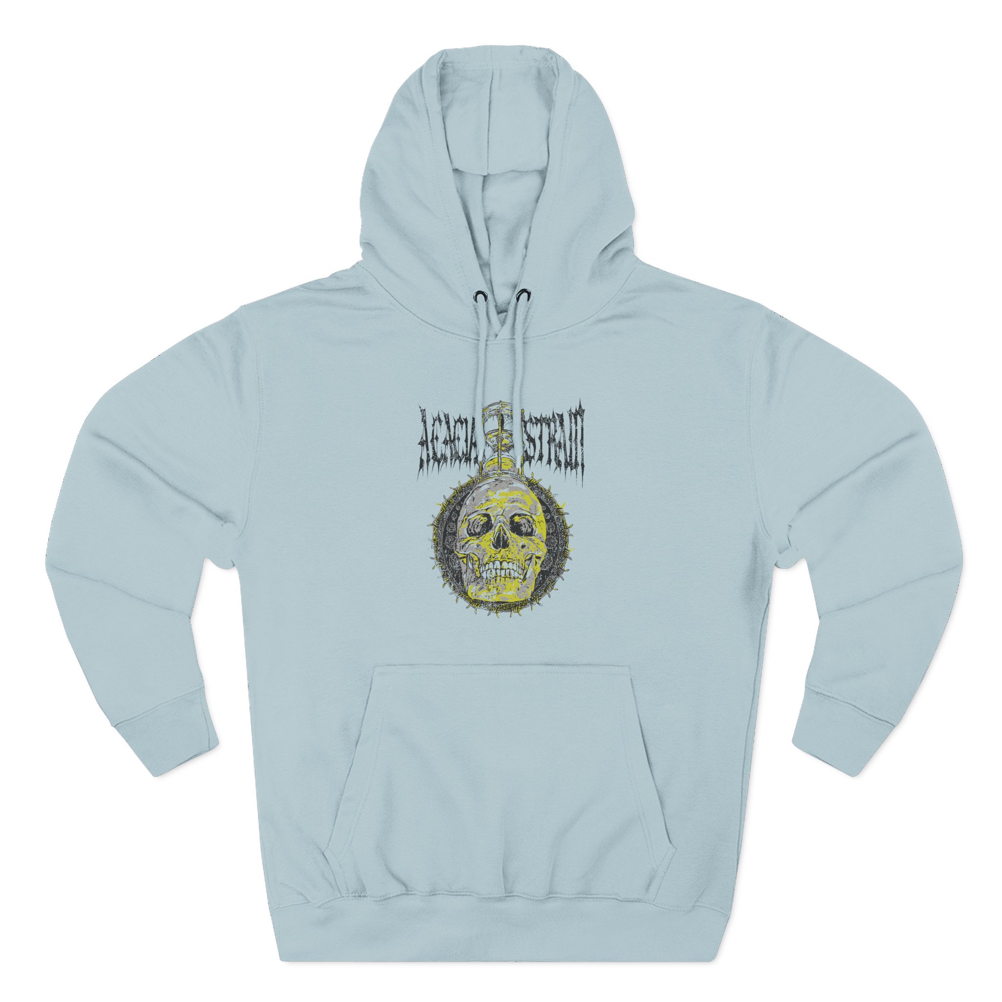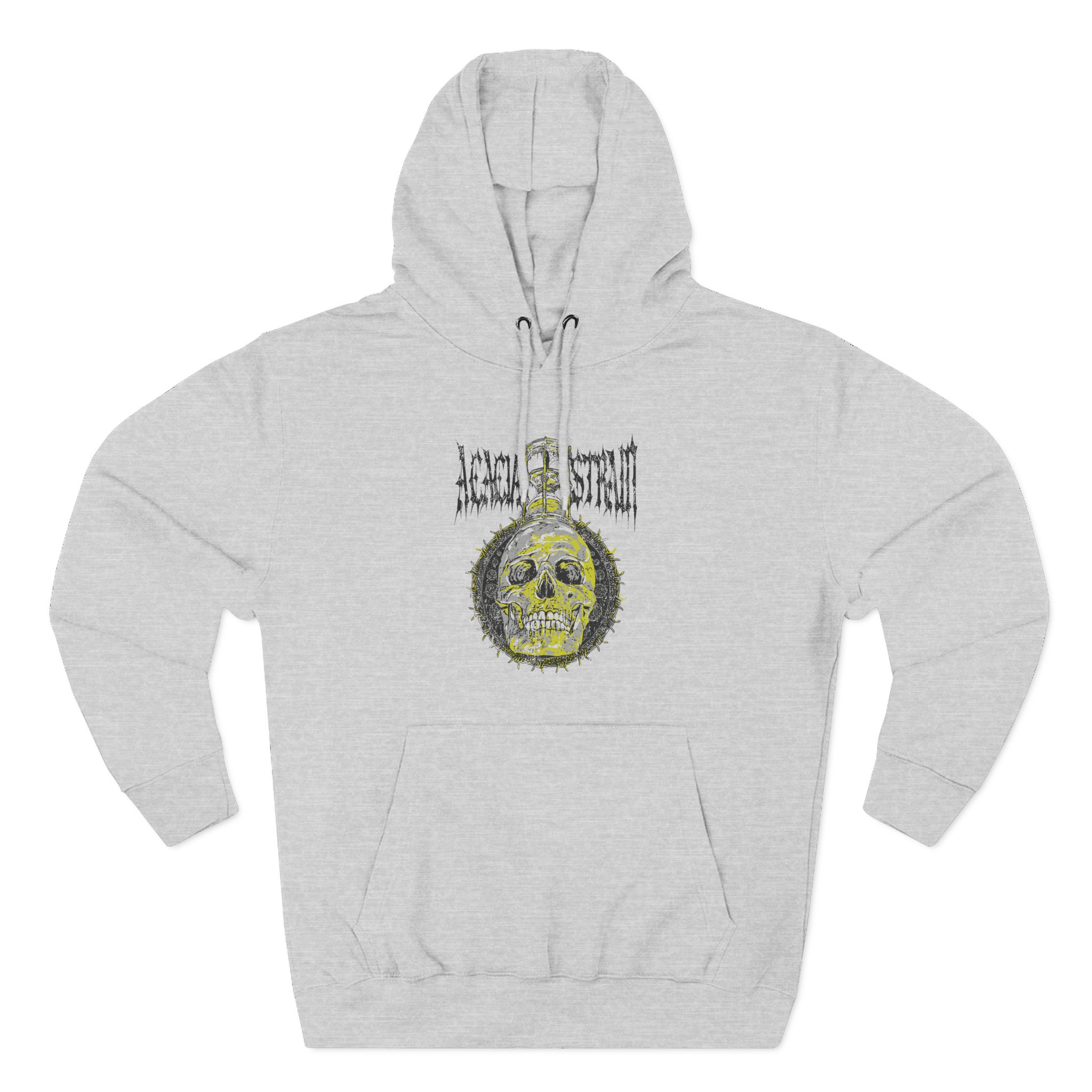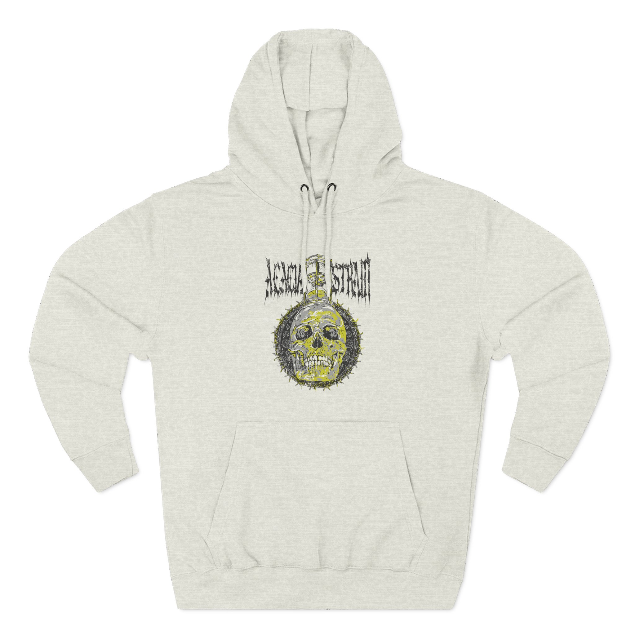Beat the cold with this The Acacia Strain Hourglass premium pullover hoodie that’s just the right layer of warm and cozy. Made with three-panel fleece lining, this pullover is double stitched for durability and roomy. Pick one in your favorite color to match your style.