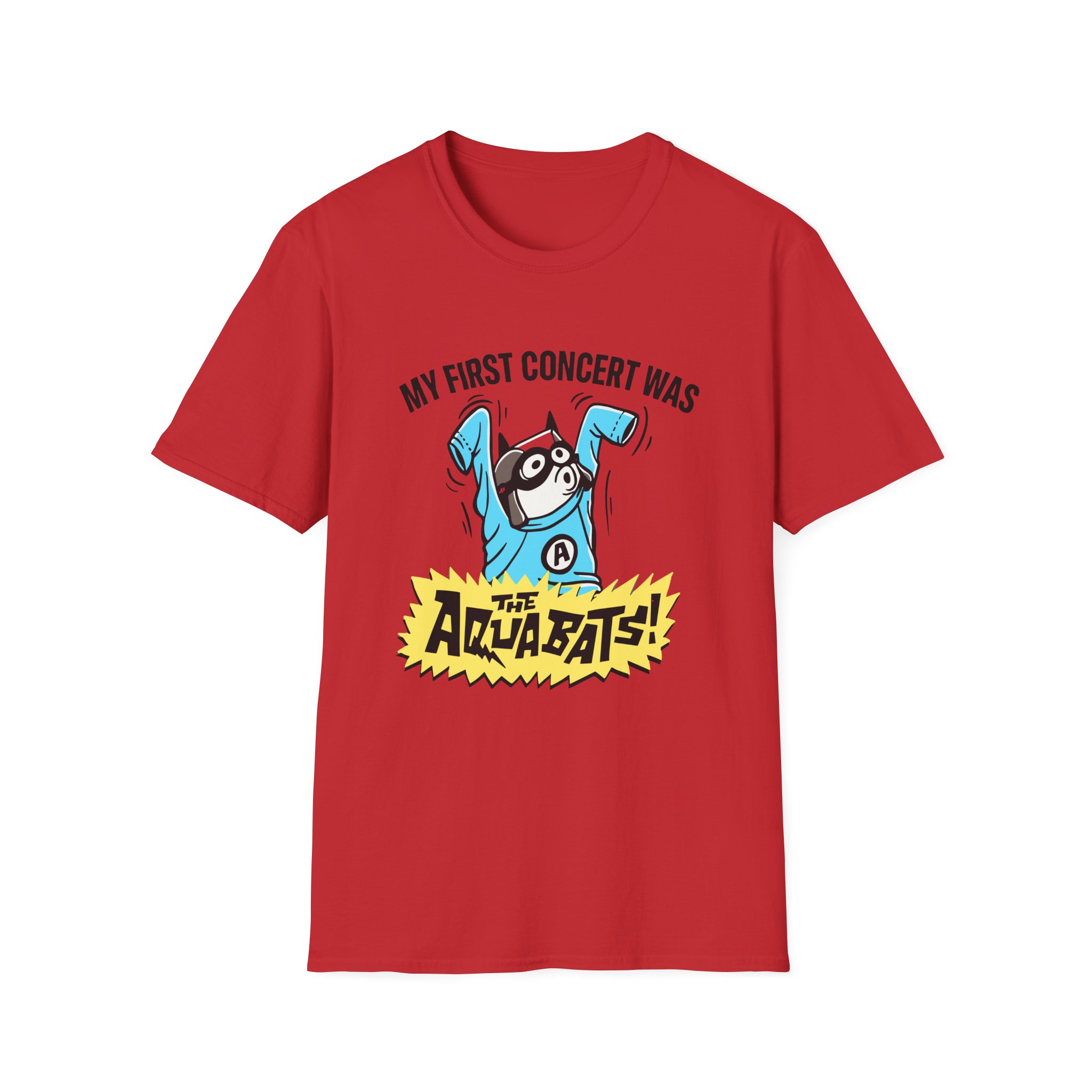 The The Aquabats My First Concert unisex soft-style t-shirt puts a new spin on casual comfort. Made from very soft materials, this tee is 100% cotton for solid colors. Heather colors and sports grey include polyester. The shoulders have twill tape for improved durability. There are no side seams. The collar is made with ribbed knitting to prevent curling damage.