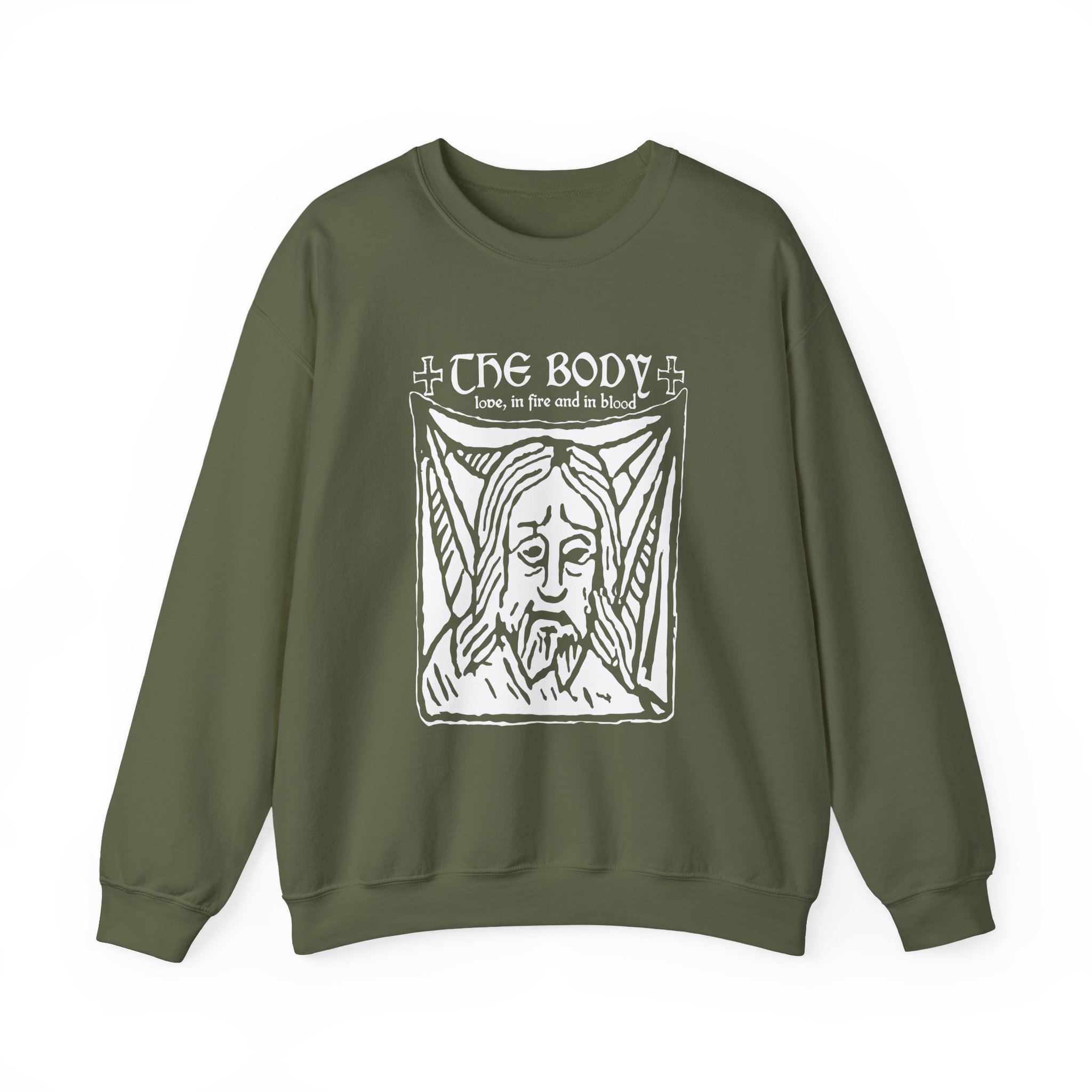 Ideal for any situation, The Body Fire and Blood unisex heavy blend crewneck sweatshirt is pure comfort. These garments are made from polyester and cotton. This combination helps designs come out looking fresh and beautiful. The collar is ribbed knit, so it retains its shape even after washing. There are no itchy side seams on these sweaters.