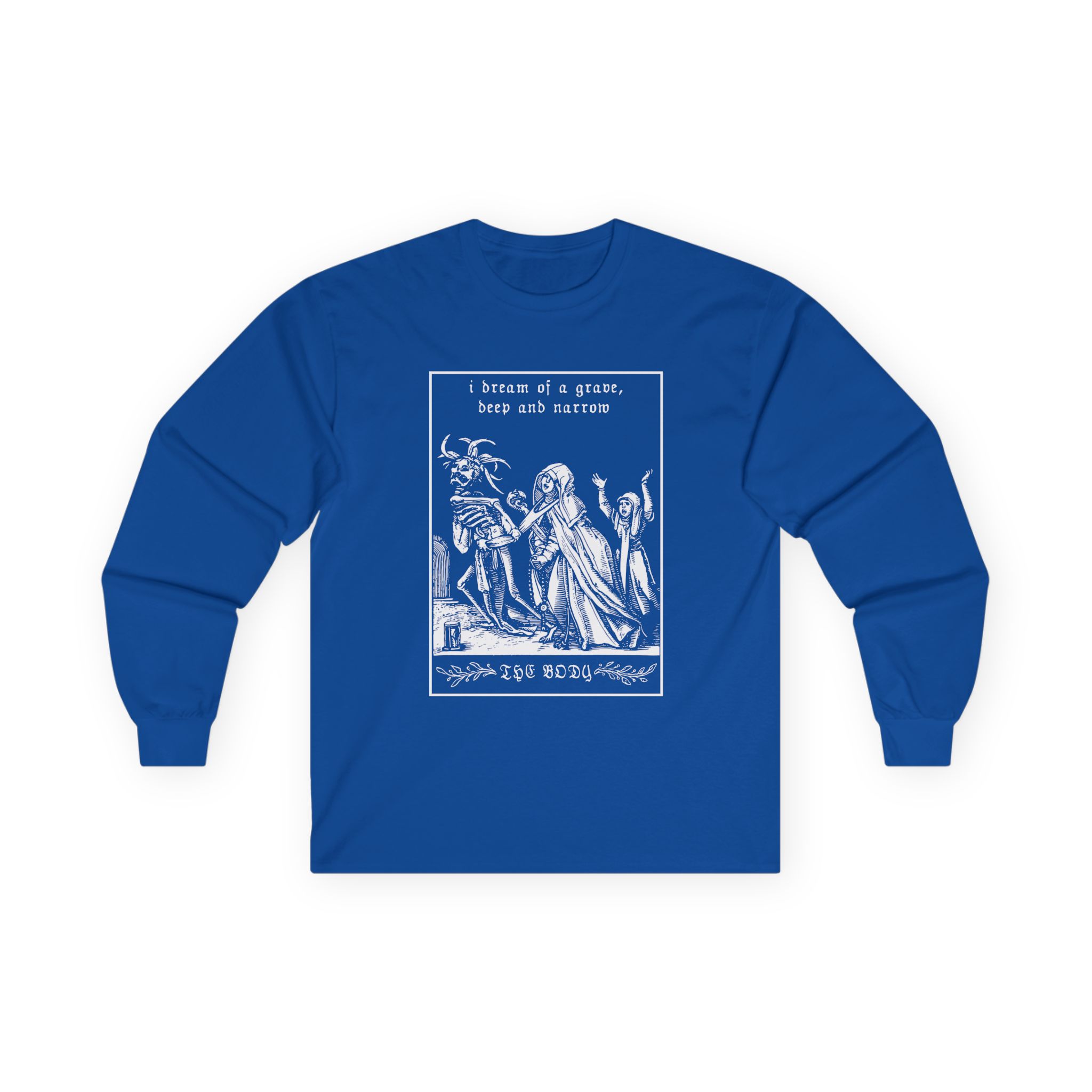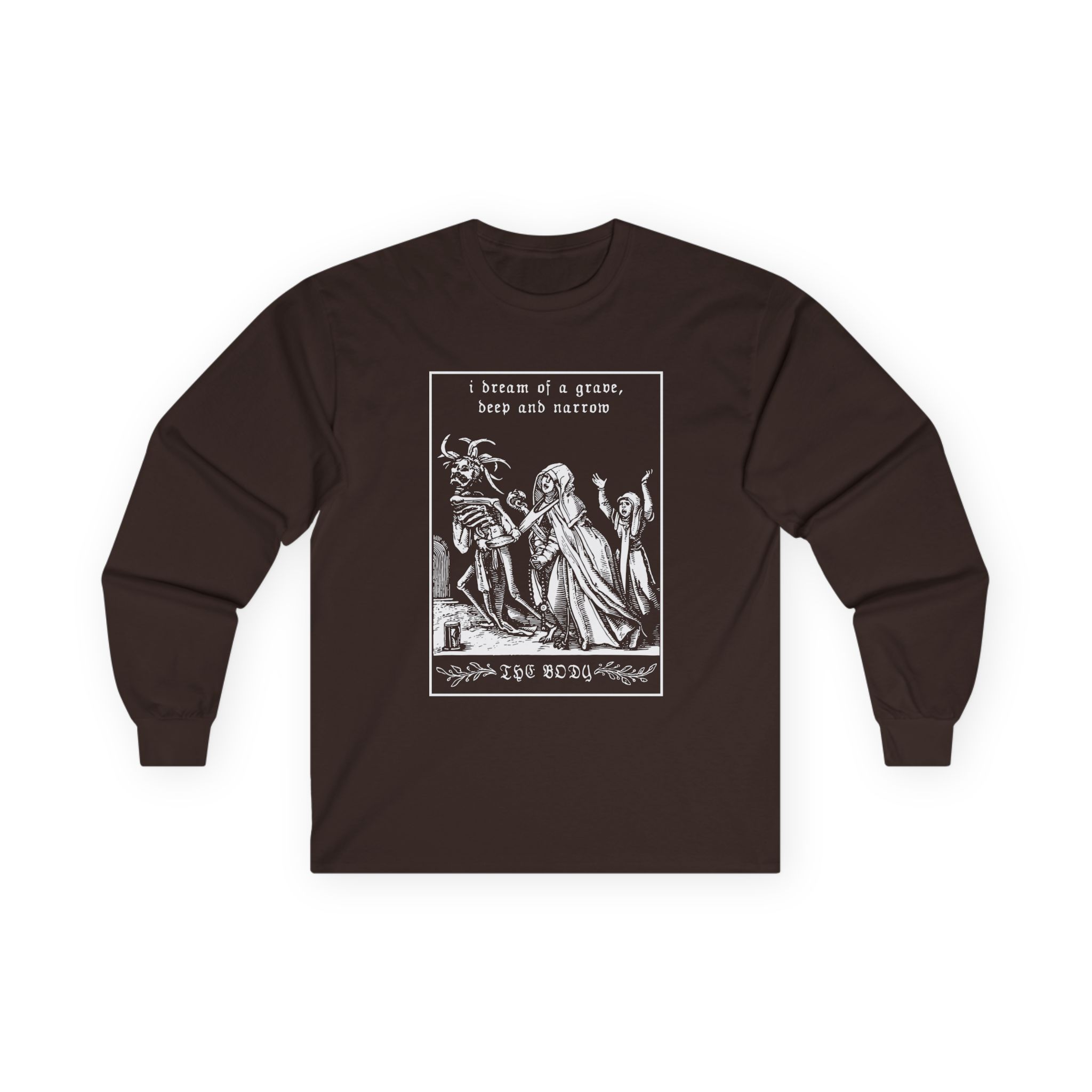 A bit more formal than a standard-issue t-shirt, The Body Grave ultra cotton long sleeve tee is a clear comfort winner. The sleeves also act as a nice frame. There are no side seams. The shoulders are taped for improved durability. This makes for a good fitting around the shoulders and neck. The cotton used for these shirts is environmentally friendly.