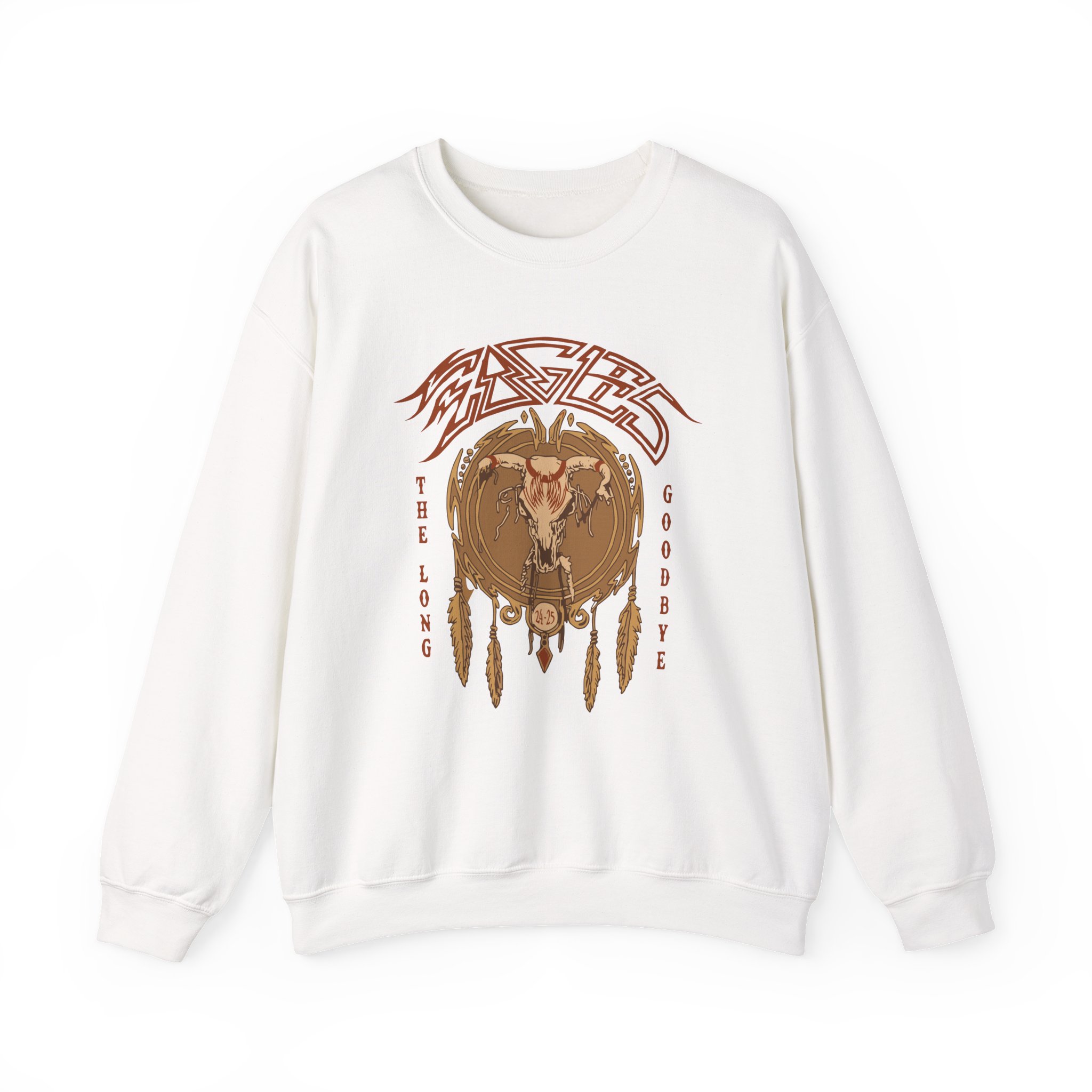 Ideal for any situation, The Eagles Sphere Dreamcatcher unisex heavy blend crewneck sweatshirt is pure comfort. These garments are made from polyester and cotton. This combination helps designs come out looking fresh and beautiful. The collar is ribbed knit, so it retains its shape even after washing. There are no itchy side seams on these sweaters.