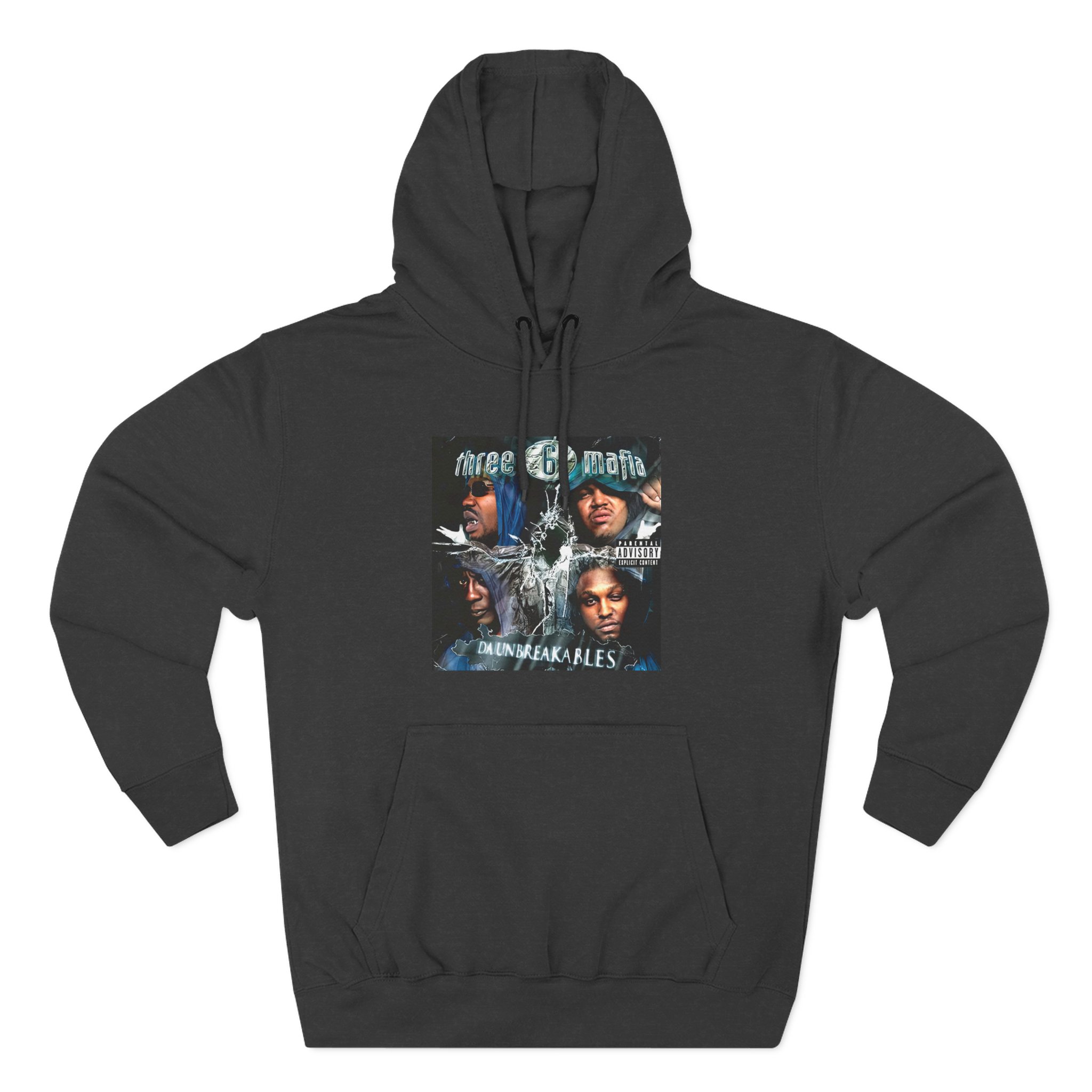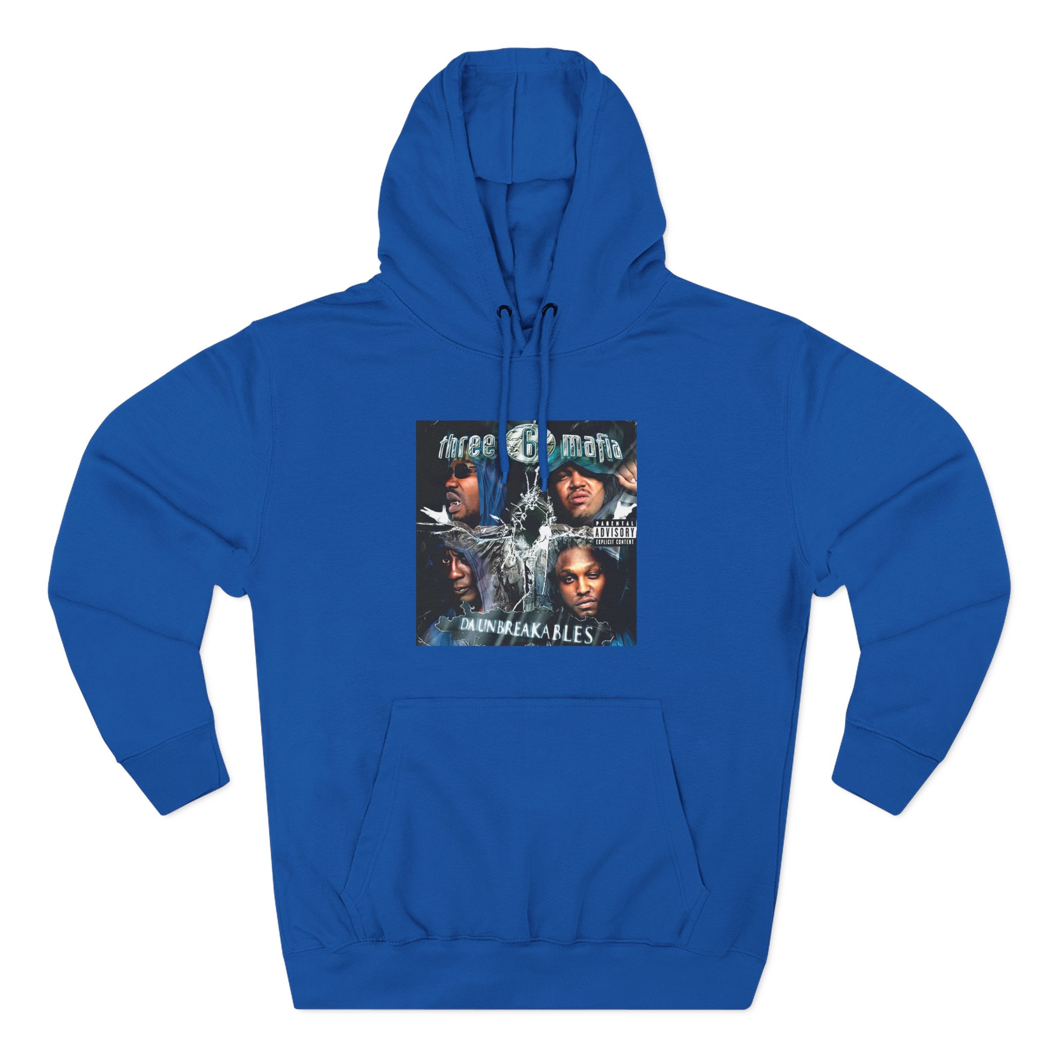 Beat the cold with this Three 6 Mafia Unbreakables premium pullover hoodie that’s just the right layer of warm and cozy. Made with three-panel fleece lining, this pullover is double stitched for durability and roomy. Pick one in your favorite color to match your style.