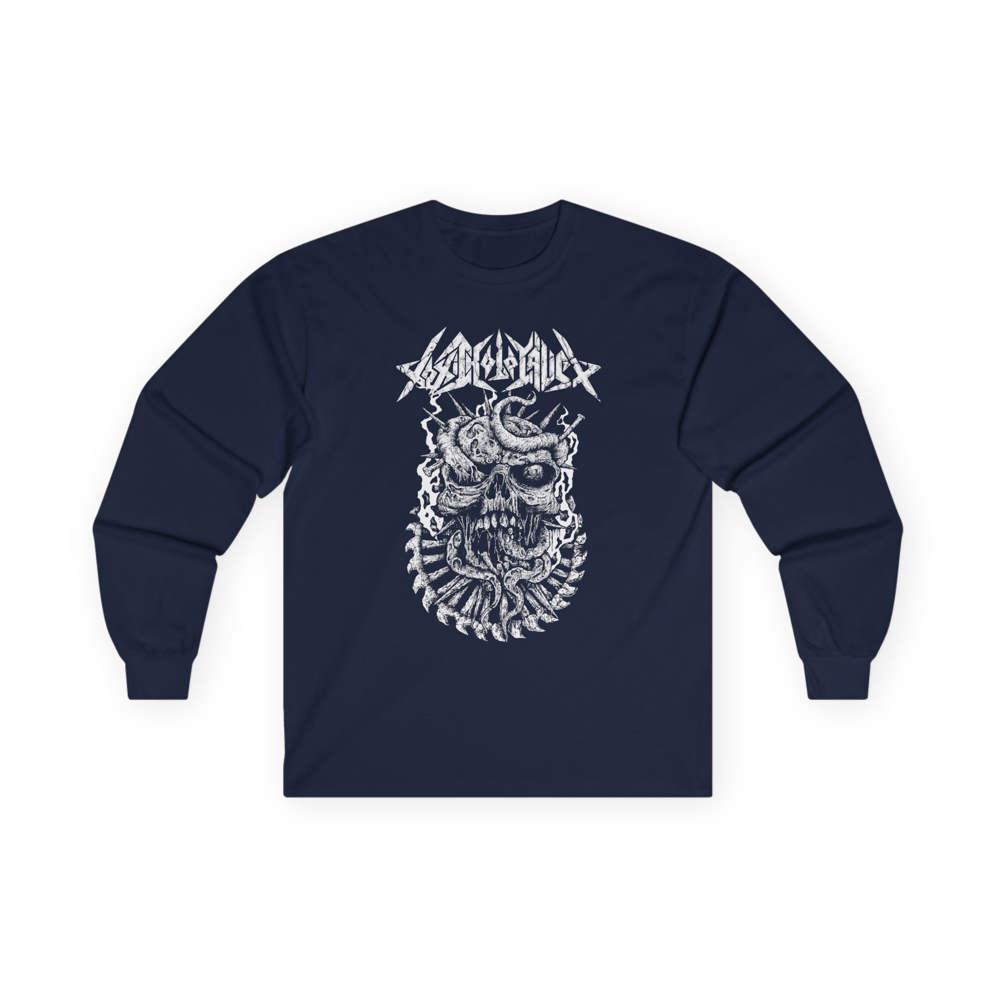 A bit more formal than a standard-issue t-shirt, the Toxic Holocaust Skull ultra cotton long sleeve tee is a clear comfort winner. The sleeves also act as a nice frame. There are no side seams. The shoulders are taped for improved durability. This makes for a good fitting around the shoulders and neck. The cotton used for these shirts is environmentally friendly.
