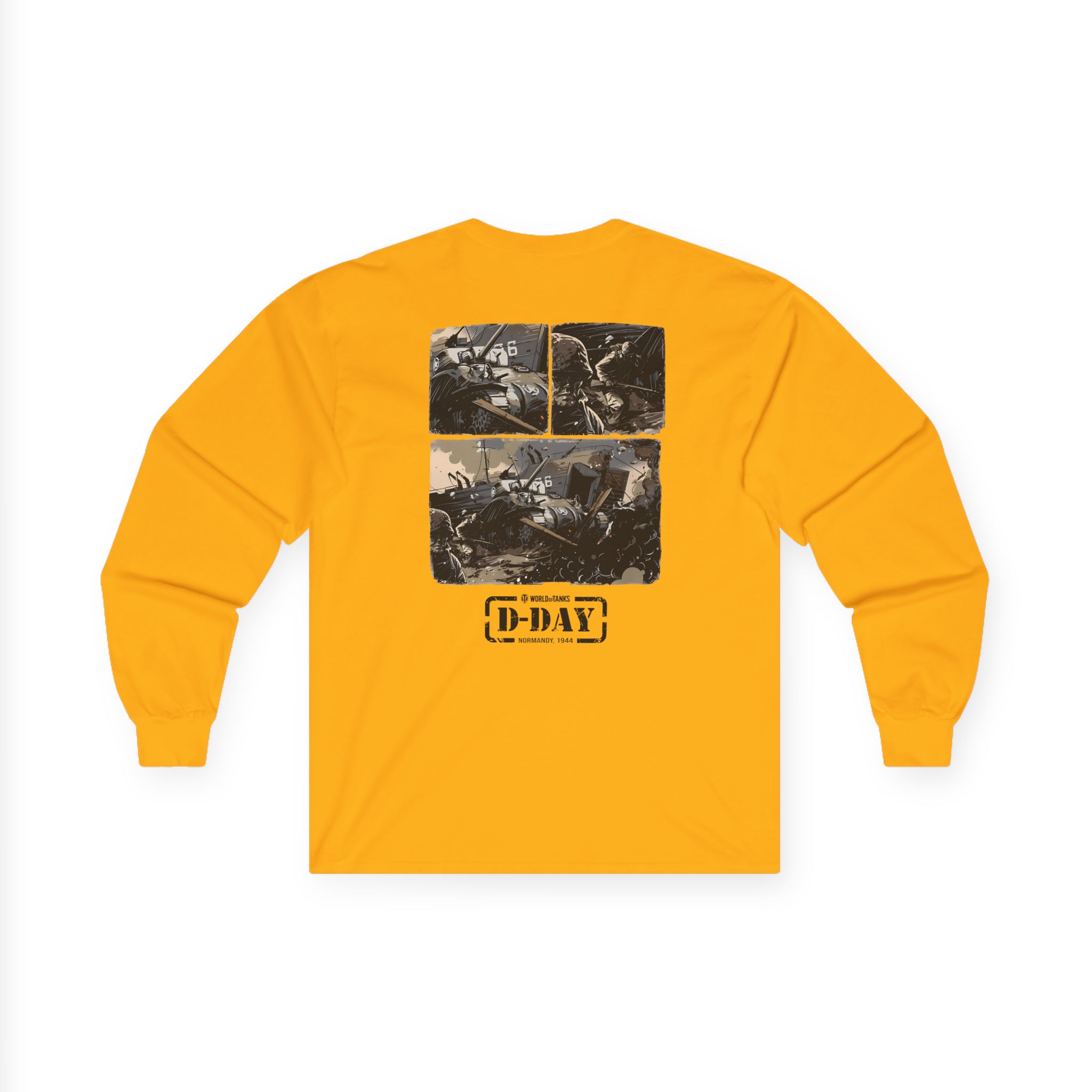A bit more formal than a standard-issue t-shirt, the World of Tank Wot D-day Fury Storm ultra cotton long sleeve tee is a clear comfort winner. The sleeves also act as a nice frame. There are no side seams. The shoulders are taped for improved durability. This makes for a good fitting around the shoulders and neck. The cotton used for these shirts is environmentally friendly.