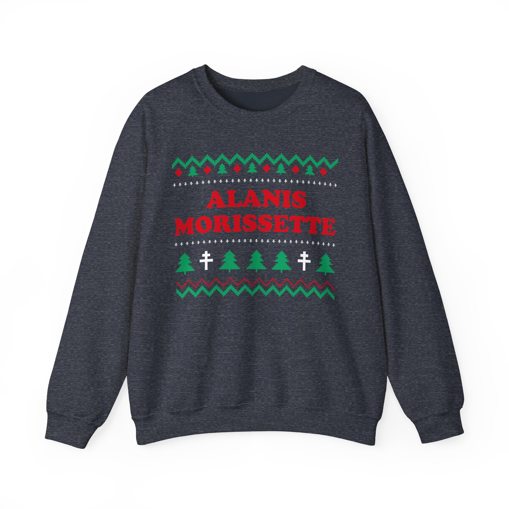 Ideal for any situation, a Alanis Morissette unisex heavy blend crewneck sweatshirt is pure comfort. These garments are made from polyester and cotton. This combination helps designs come out looking fresh and beautiful. The collar is ribbed knit, so it retains its shape even after washing. There are no itchy side seams on these sweaters.